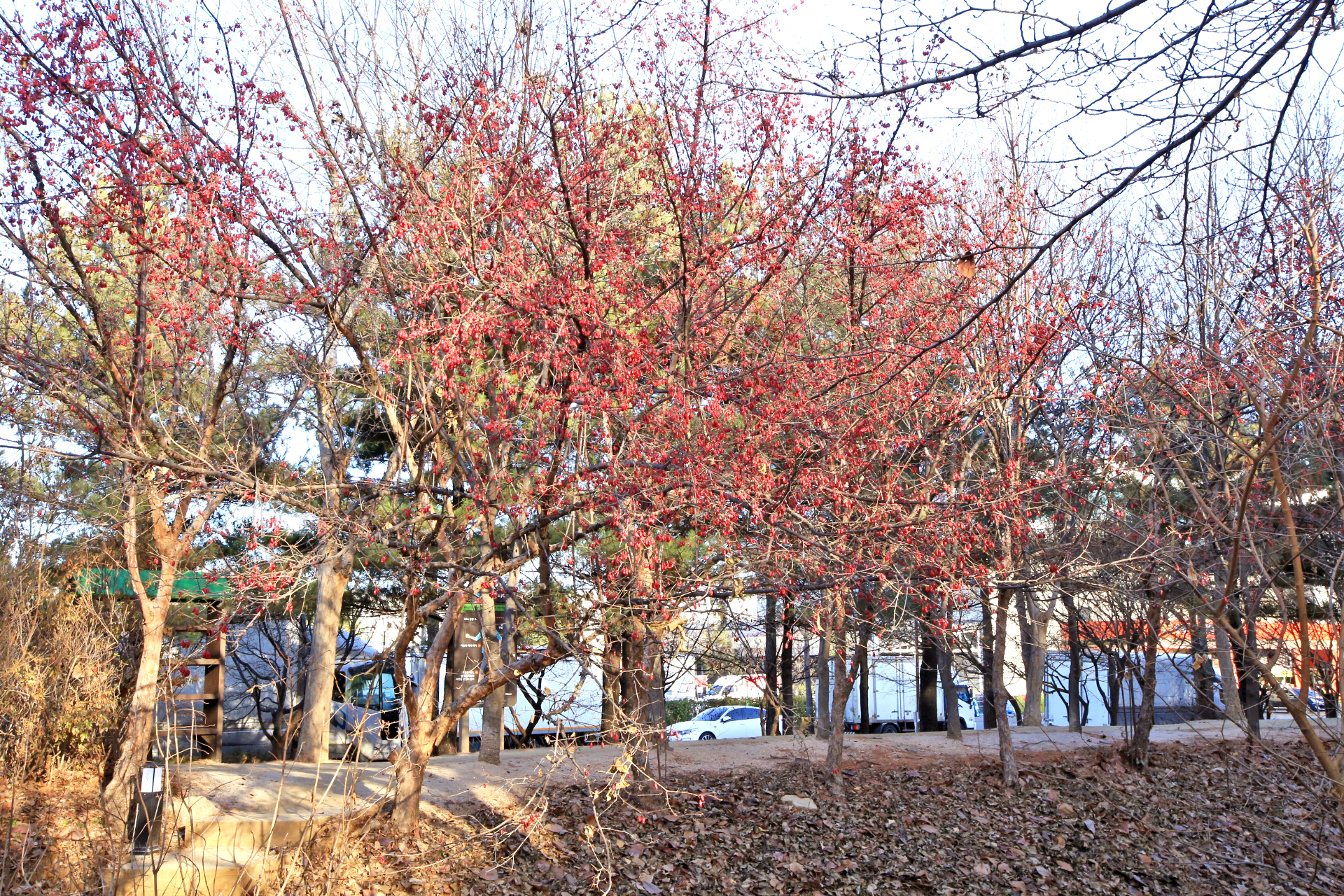 이른 아침이지만 나온 김에 하루 5,000보를 걷기 위하여 강서농산물도매시장으로 갔다. 운동 삼아 자주 가는 곳이기는 하지만 모처럼 카메라를 가지고 갔기에 통로 옆에 있는 산수유 열매를 촬영하였다. 스마트폰으로는 몇 번 시도하였으나 여의치 않았는데 오늘도 촬영하기 좋은 조건은 아니다.