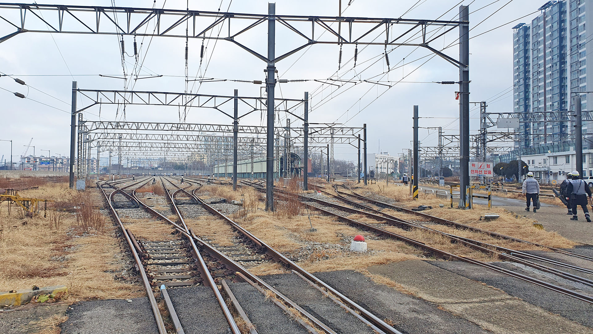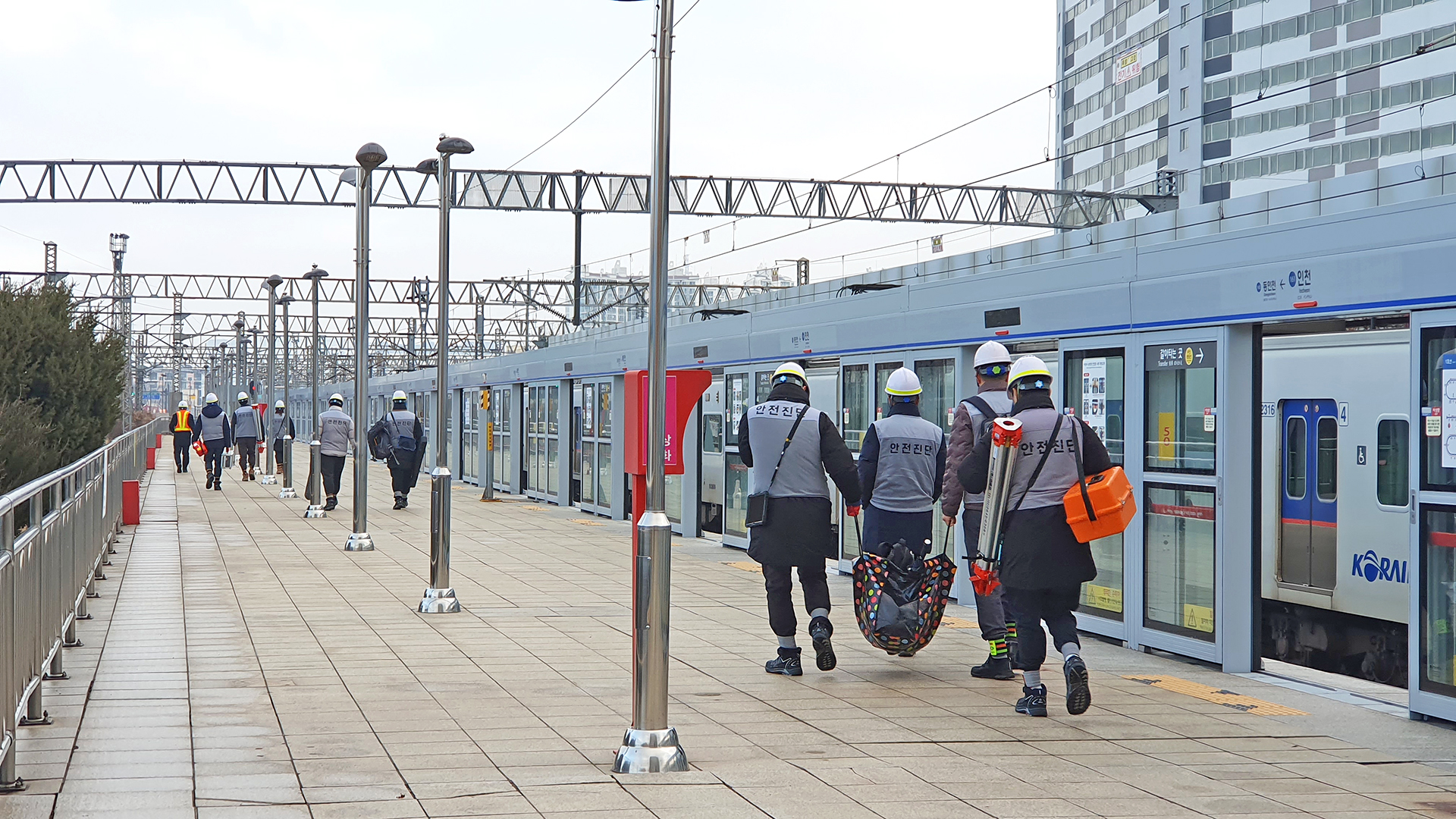 올해의 마지막 현장조사 업무를 위하여 안전관리자의 인솔을 받아서 인천역 차량일상검수고?로 이동하고 있다.