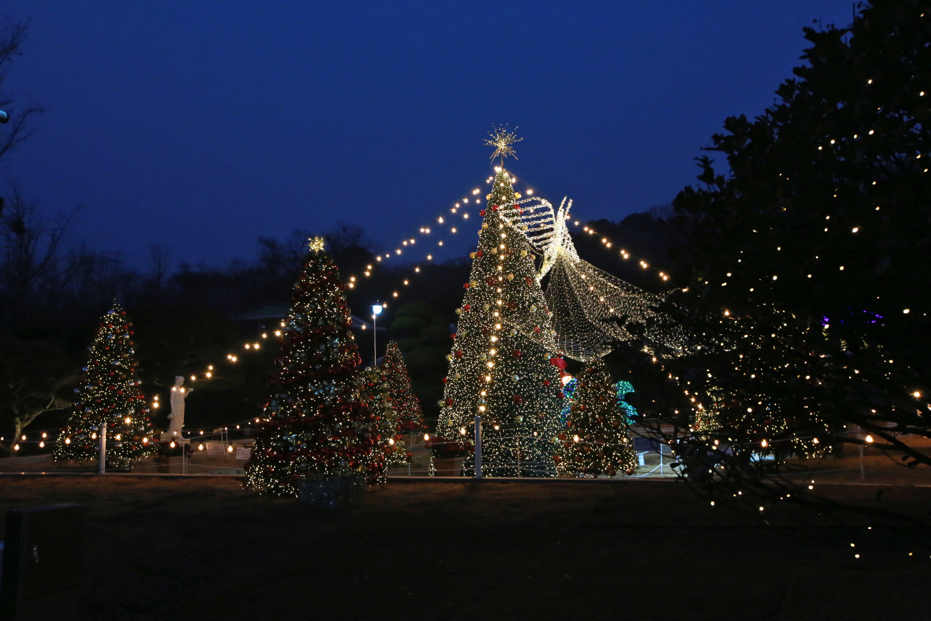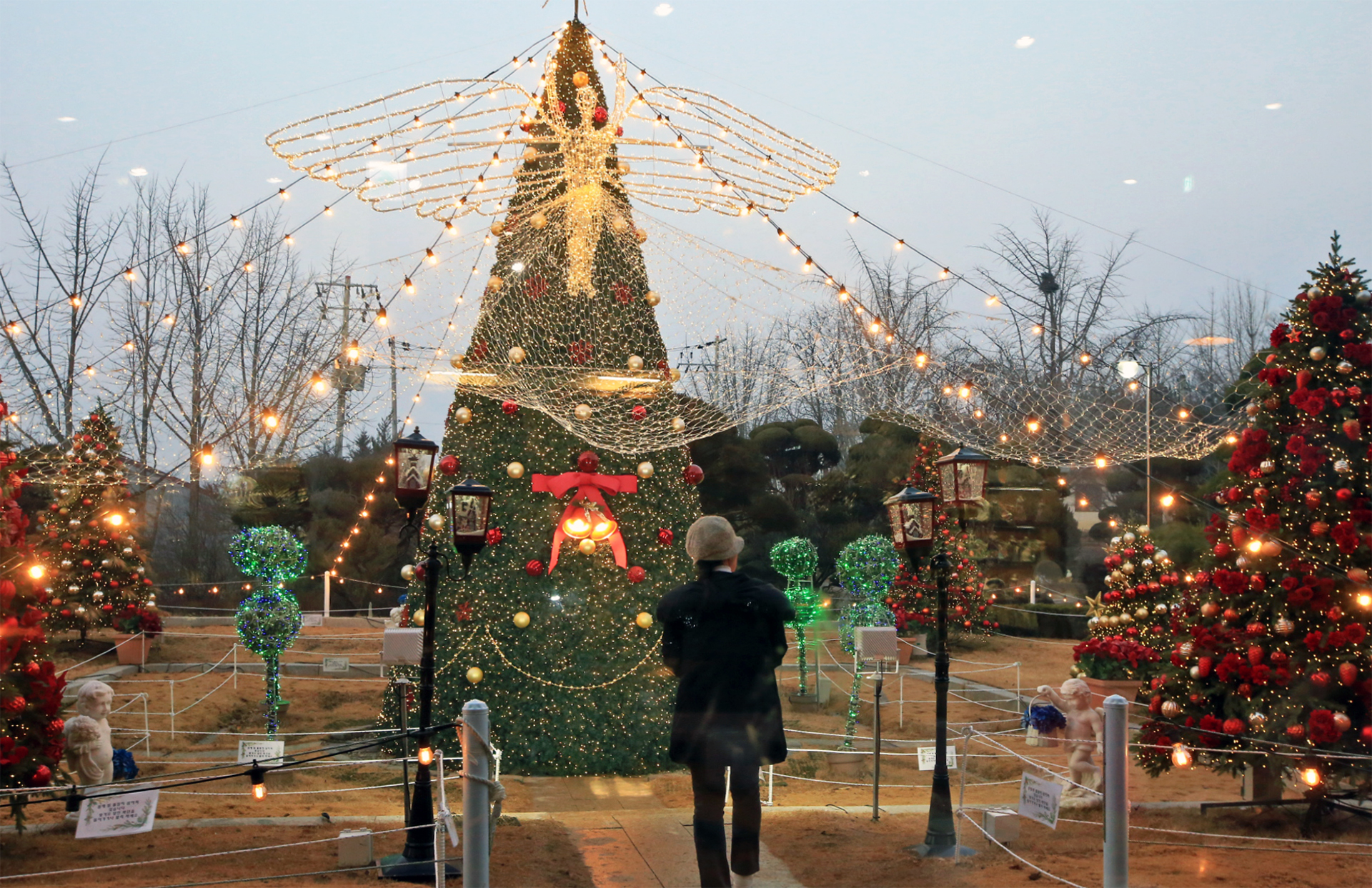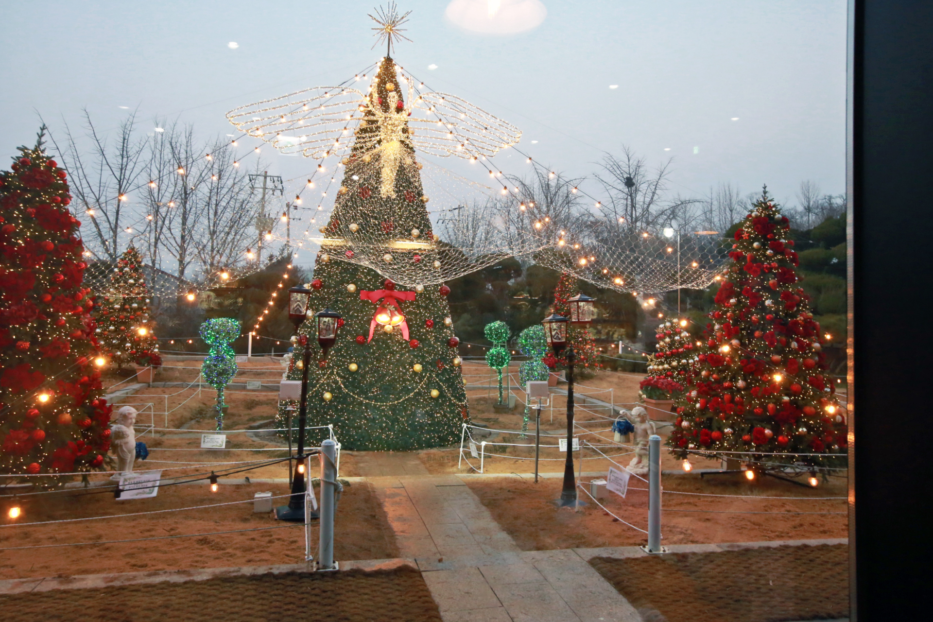 앉은 자리에서 밖을 내다보면 커다란 크리스마스트리가 정면으로 보인다. 도착하였을 때에는 한낮이라 장신전구의 불빛이 희미하였다. 트리 상부에 날개 달린 것이 나비 같지는 않고 나방인가? 하였다. 어두워지기 시작하며 윤곽이 뚜렷해졌기에 궁금해서 아내에게 물어보았다. 천사란다. 나의 감성이 들통 난 순간이다.