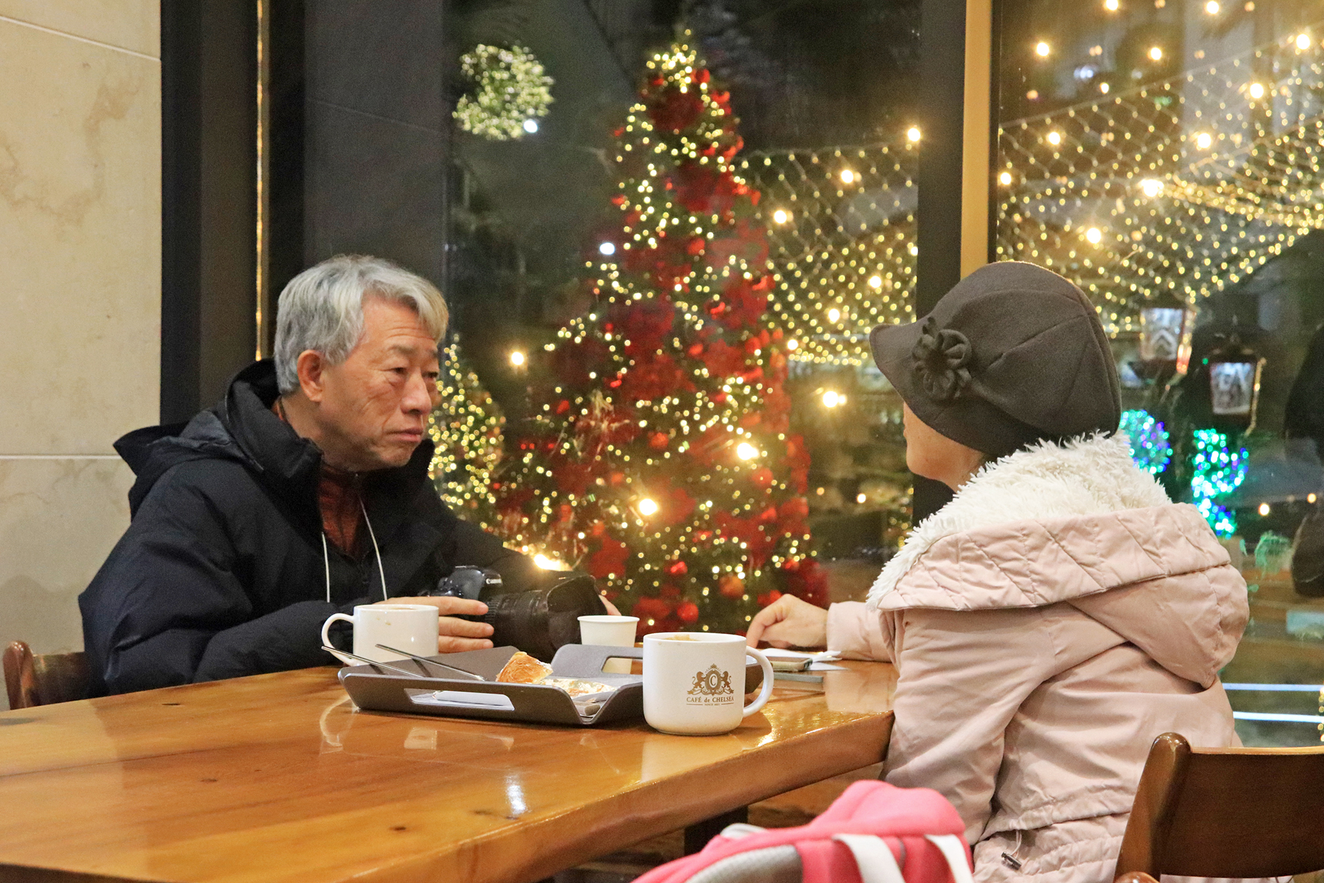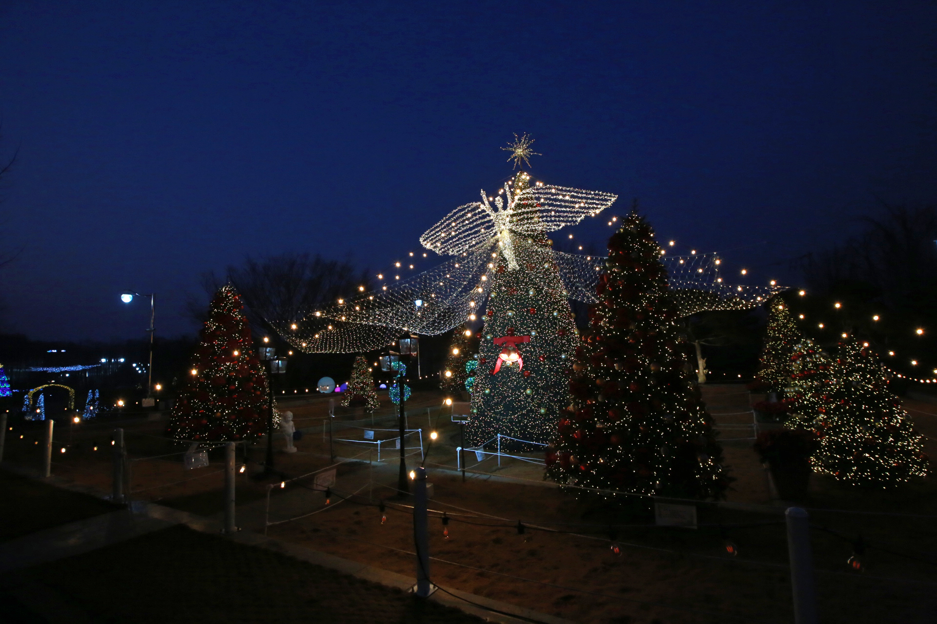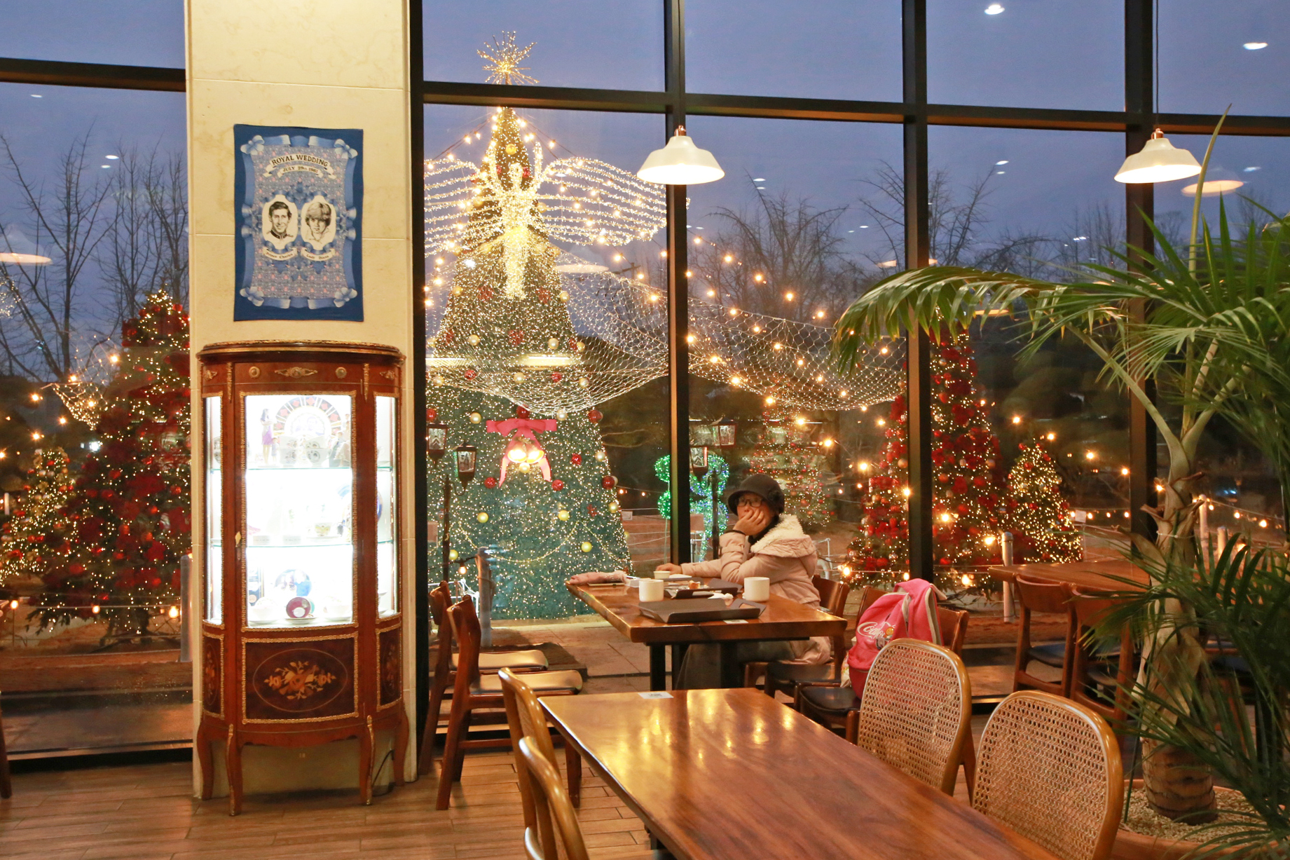 앉은 자리에서 밖을 내다보면 커다란 크리스마스트리가 정면으로 보인다. 도착하였을 때에는 한낮이라 장신전구의 불빛이 희미하였다. 트리 상부에 날개 달린 것이 나비 같지는 않고 나방인가? 하였다. 어두워지기 시작하며 윤곽이 뚜렷해졌기에 궁금해서 아내에게 물어보았다. 천사란다. 나의 감성이 들통 난 순간이다.