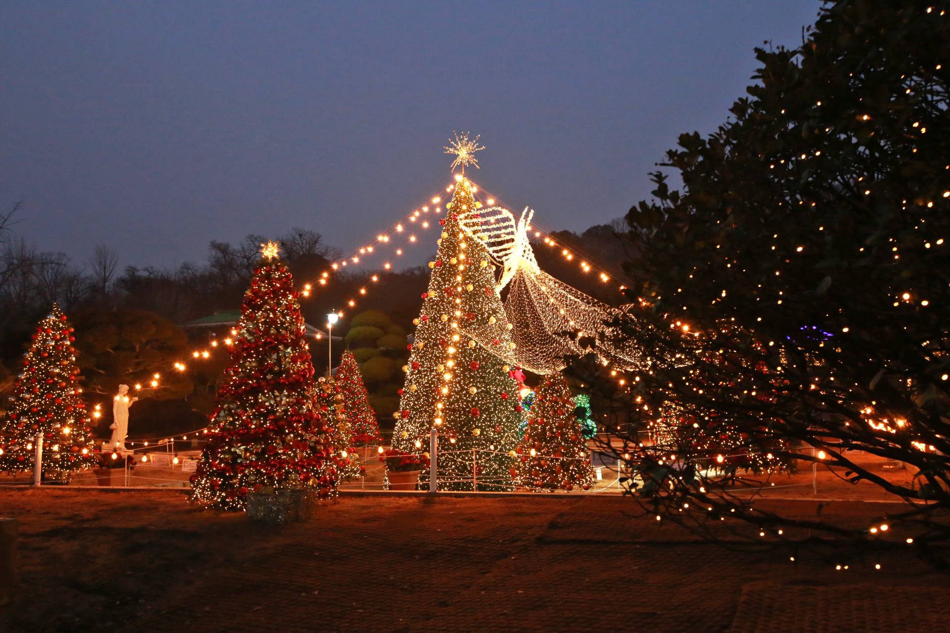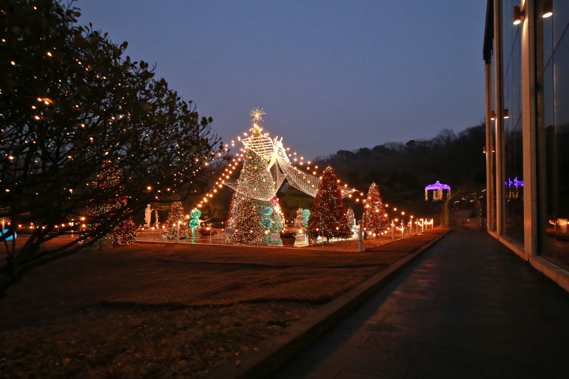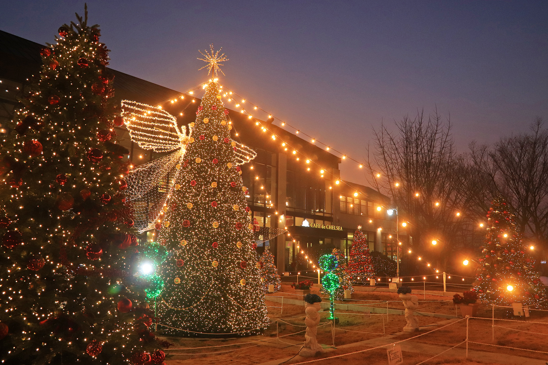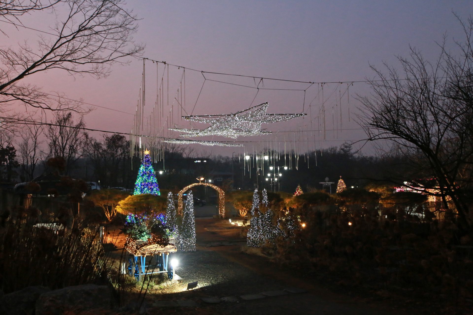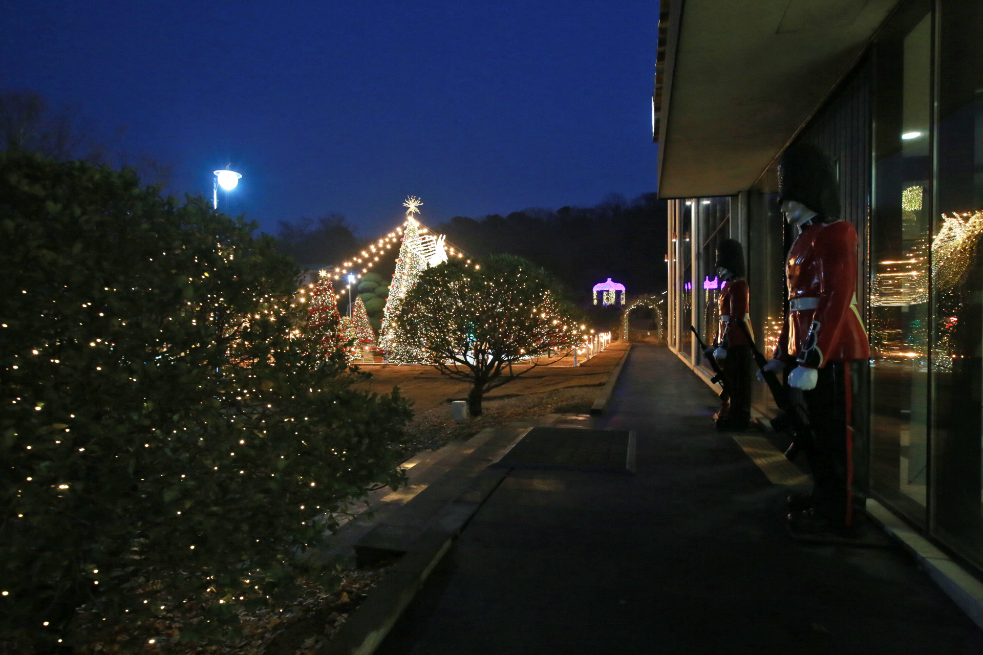 해가 지고 어두워지기 시작하니 장식전구의 불빛이 화려해진다.