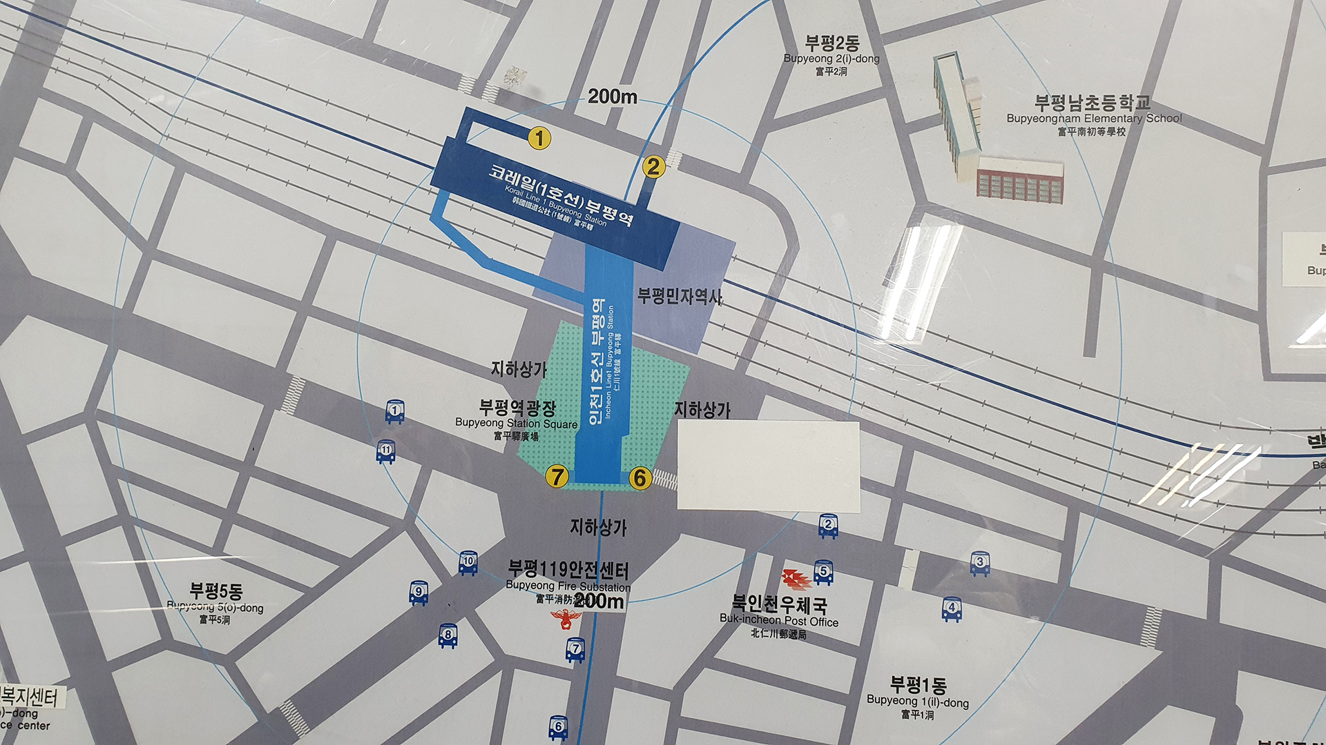롯데마트 방향의 출구로 나오면 부평역북부광장이다. 지하에 인천 1호선의 부평역 관할 3번 출구~7번 출구가 있다.