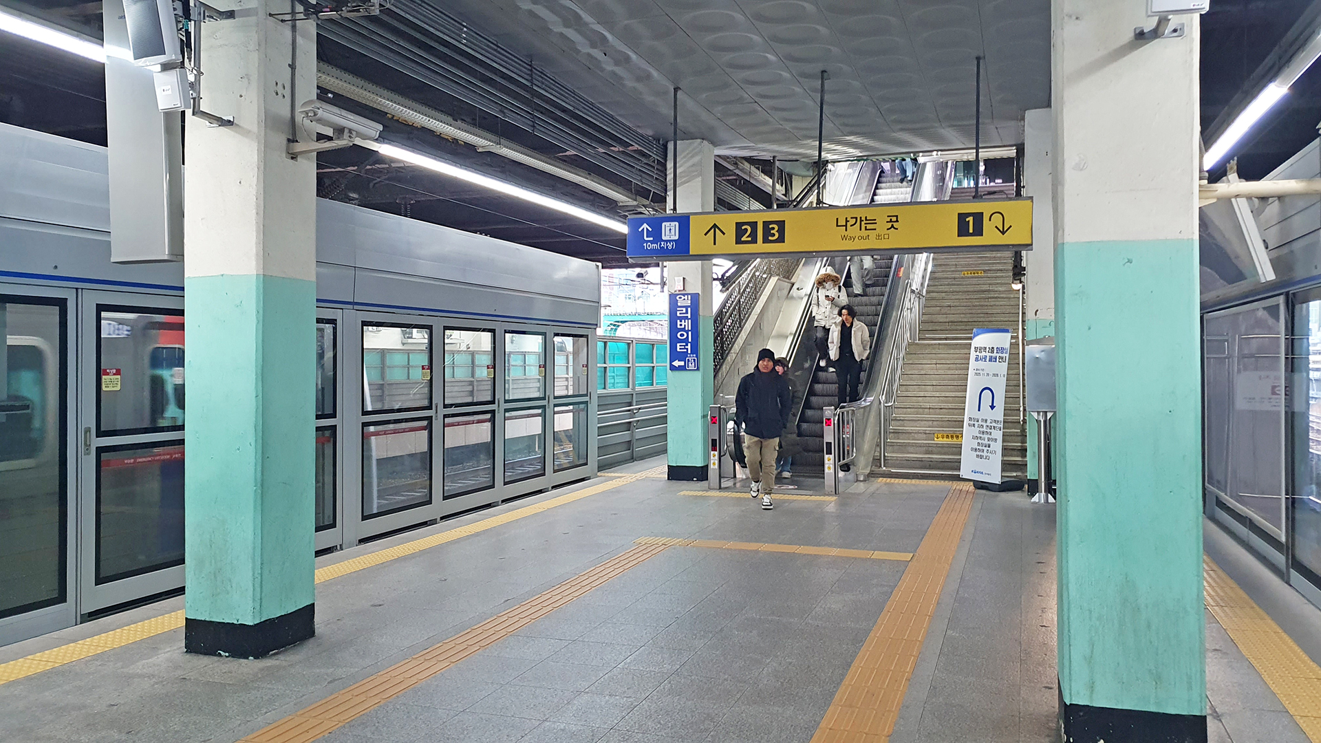 1번 출구가 지상 1층이라면 부평민자역사 대합실(2층)로 들어가는 2번 출구는 2.5층쯤 되어 계단을 내려가야 한다.