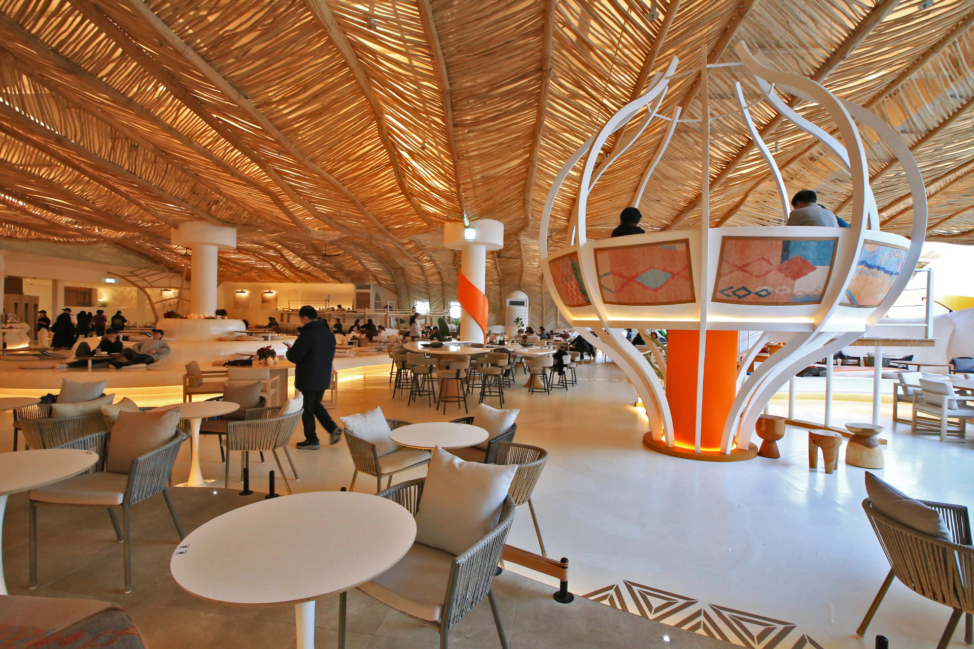 앉을 수 있는 각종 의자가 대부분이지만 등을 기대거나 누울 수 있는 곳도 있다.