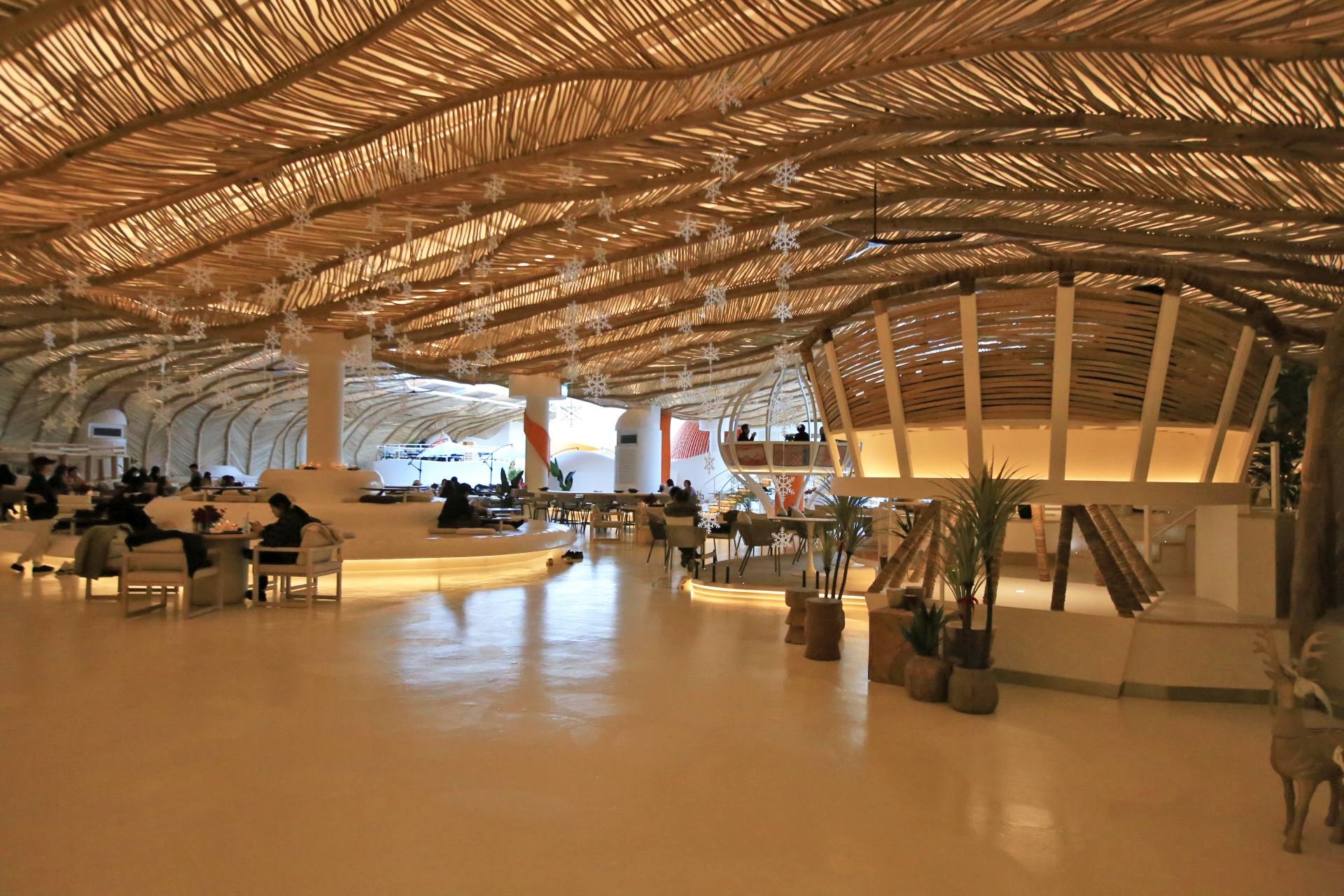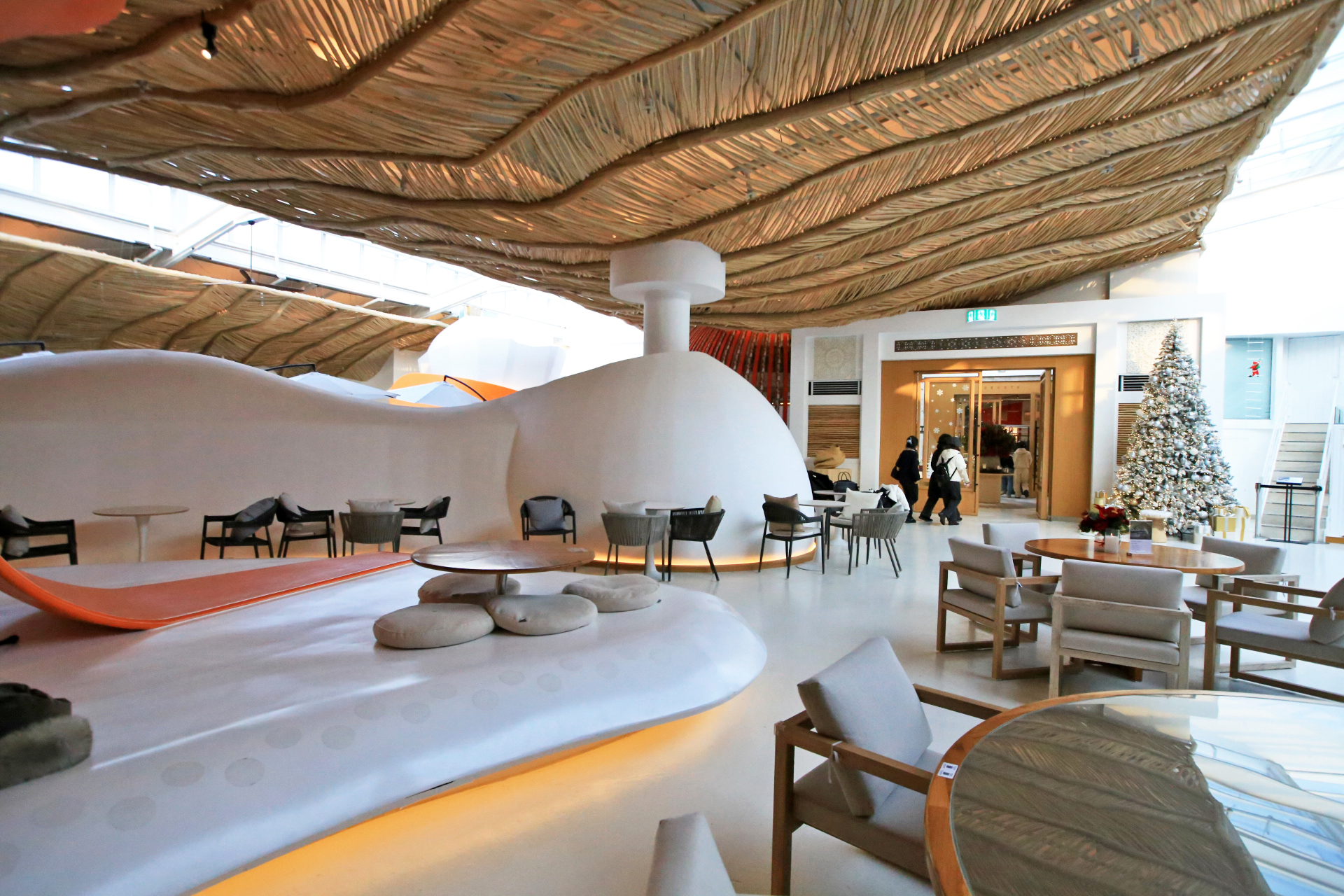 문 세 개를 열고 들어가서 나무로 장식한 터널을 지나니 별천지 같은 카페 내부가 보인다.