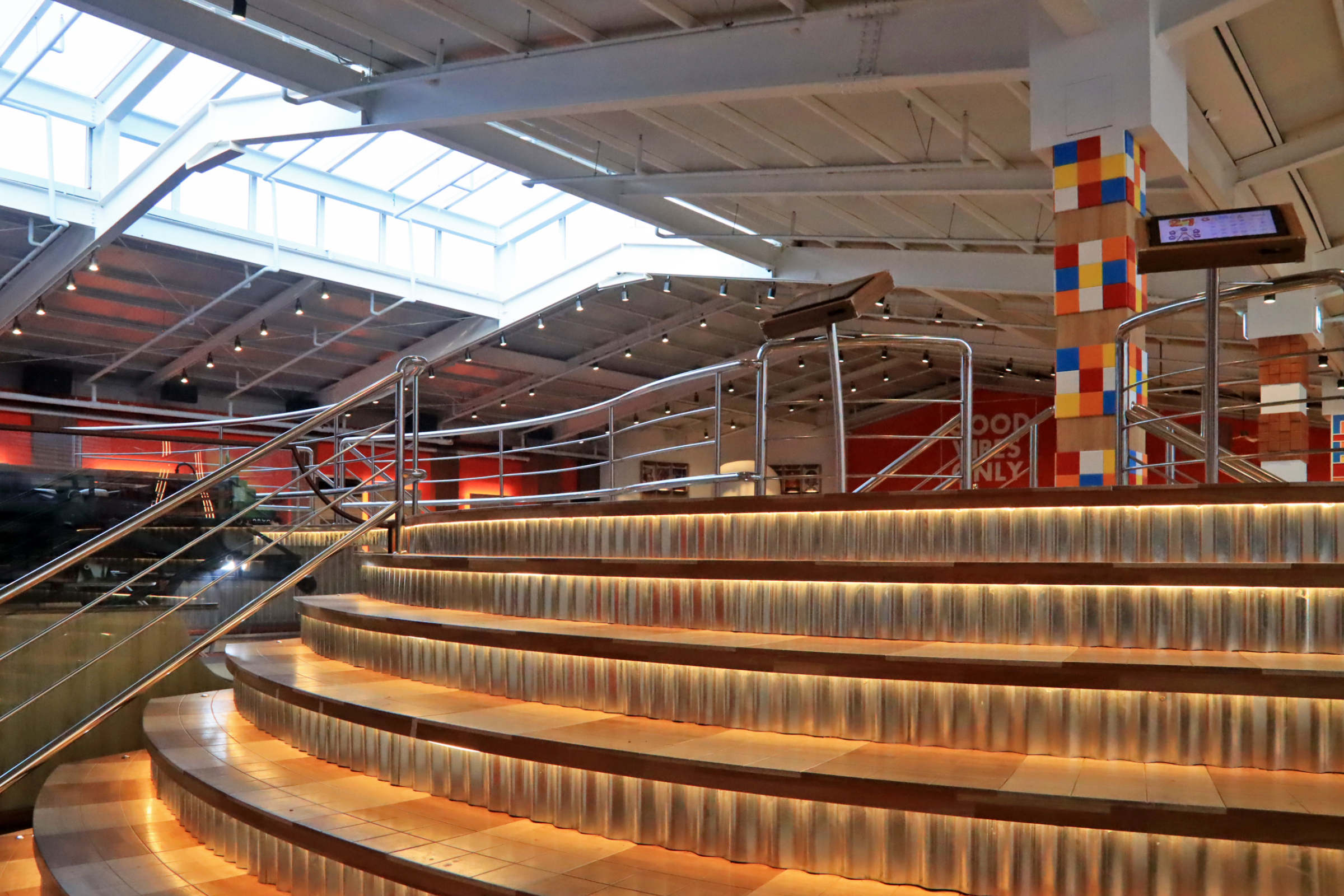 자리를 잡기 위하여 한 바퀴 돌았는데 열린공간이 아닌 몇 계단을 오르면 여러 명이 들어갈 수 있도록 구획 된 원탁이 있는 공간도 있다. 이런 자리 중에서 가장 높은 곳에 자리를 잡았다.