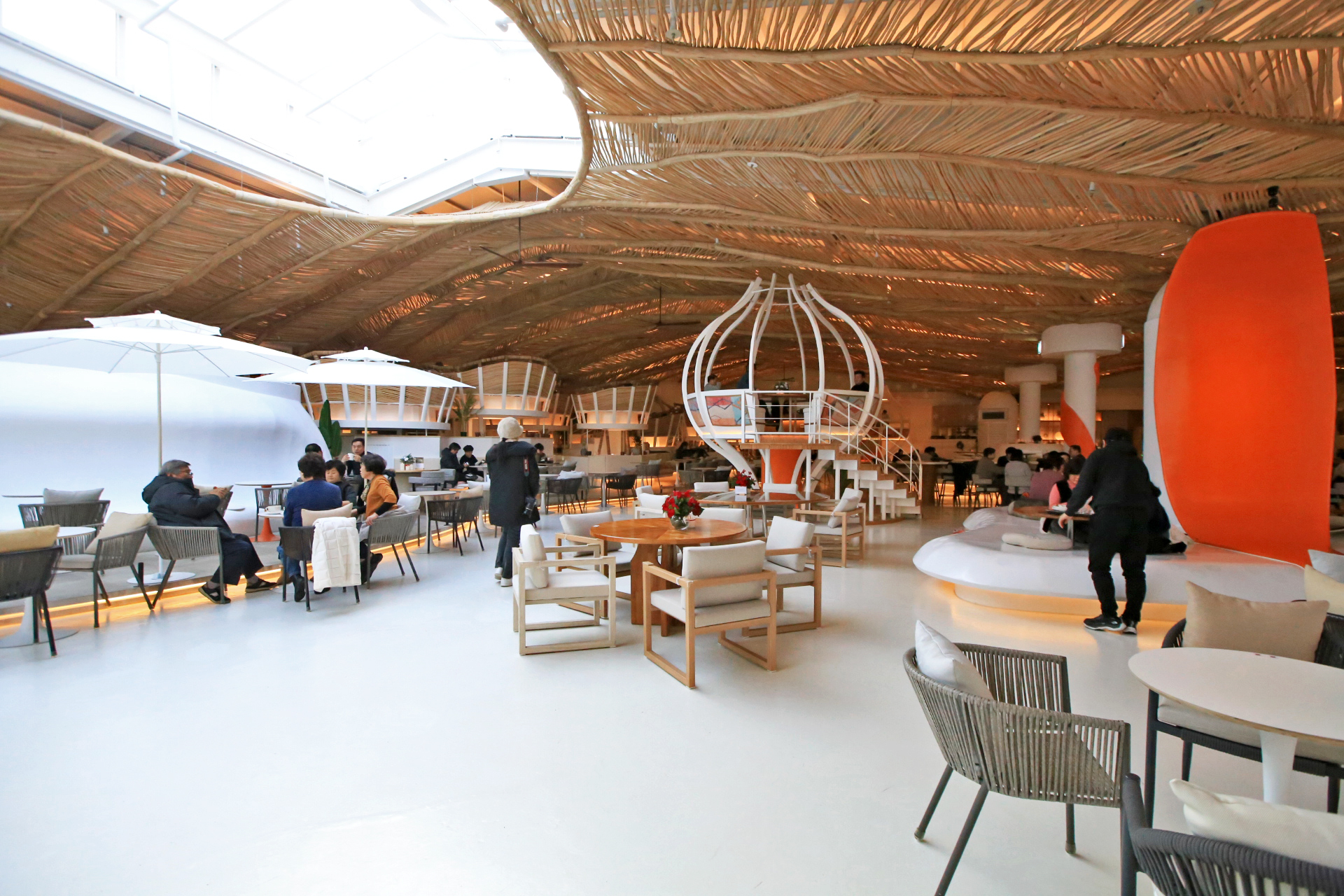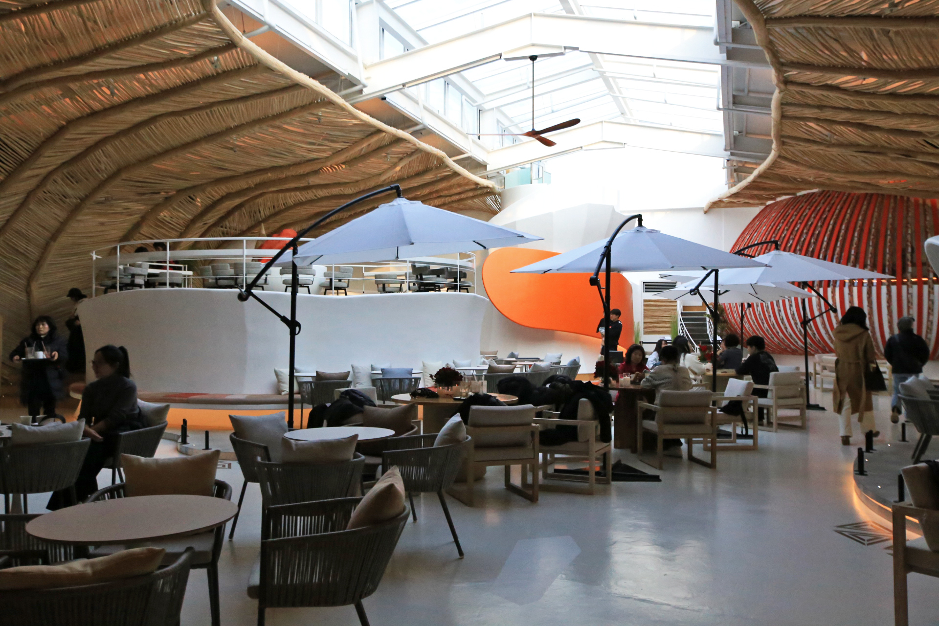 벽에는 창문이 없고 지붕 일부에 있는 천창을 통해서 빛이 들어온다. 카페에 들어오기 전에는 두 시간 정도 있다가 오자고 하였는데, 카페에 들어와 보니 해가 진 후 천창으로 빛이 들어오지 않고 어두워지면 어떤 모습일까 궁금해진다.