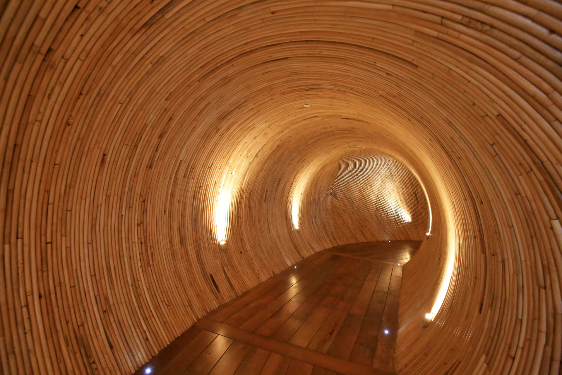 세 번째 문을 열고 들어가니 나무로 장식한 터널 통로가 나온다.
