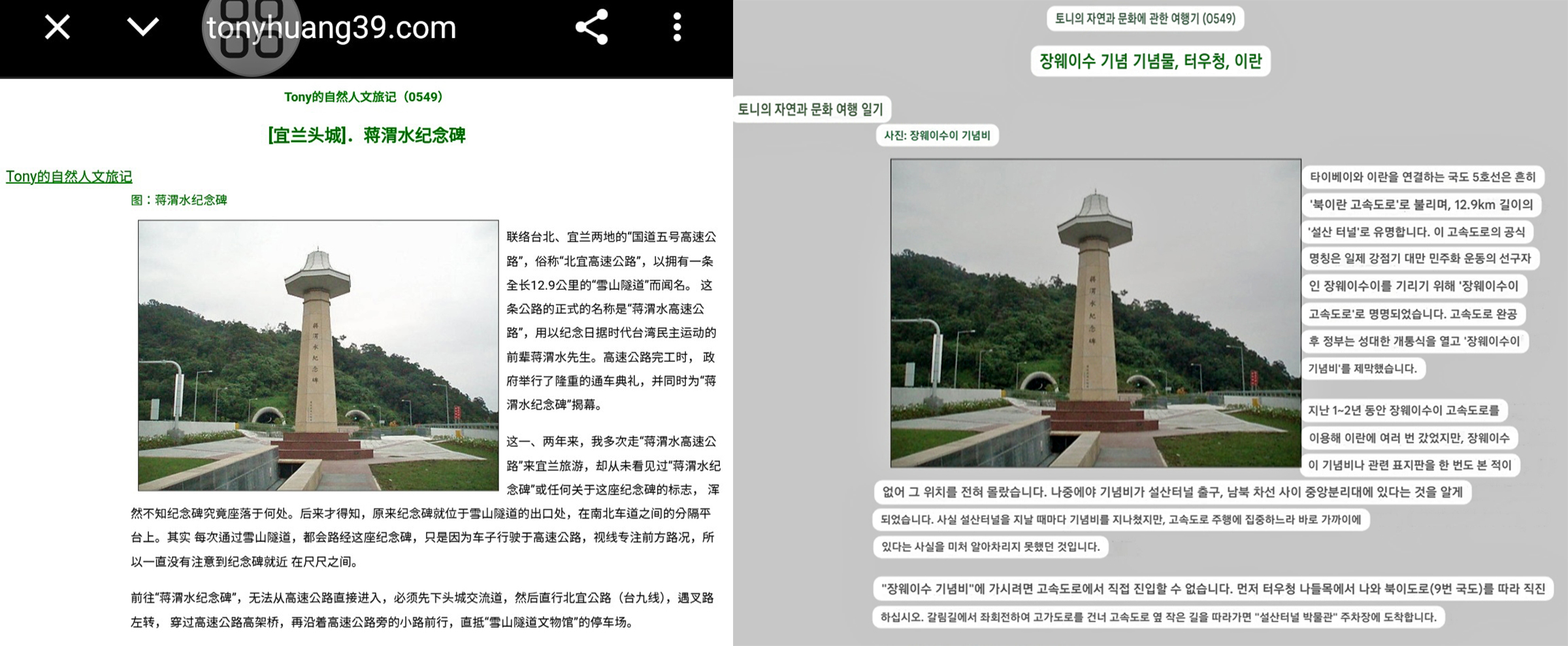 [출처] Tony의 자연과 문화에 관한 여행기(tonyhuang39.com) : 우측은 구글번역기로 번역한 내용임.