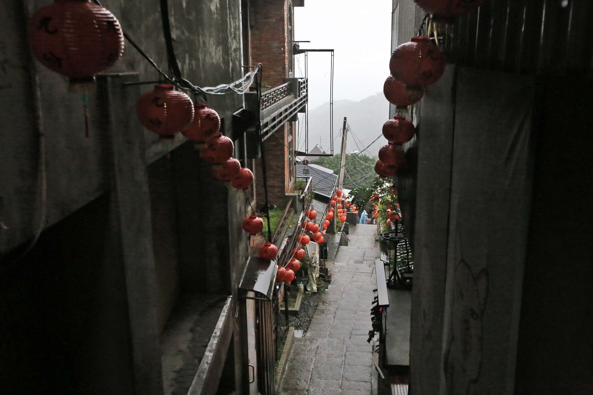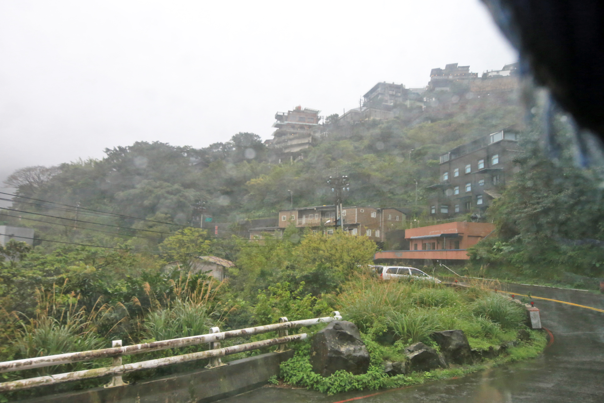 스펀에서 지우펀으로 가는 동안 비가 계속 내린다.