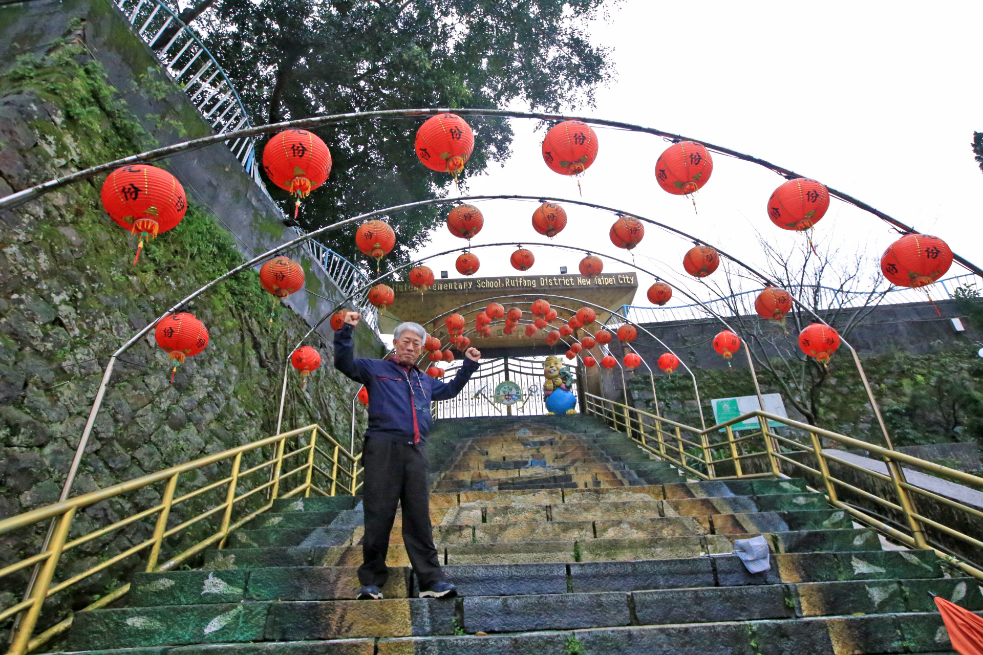 계단을 끝까지 올라갔다. 도교사원 쯤으로 생각하였는데 지우펀초등학교 교문이다. 중간에 사진을 촬영한다며 주춤댔더니 일행 중 뒤에 쳐진 상태였다. 조금 지나니 일행 중 가장 연세가 많으신 권ㅇ영님과 몇 분이 도착하셨다.
