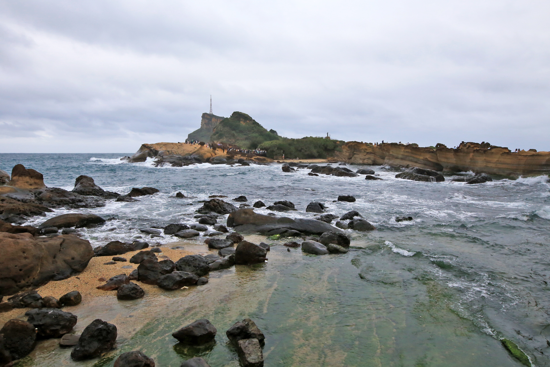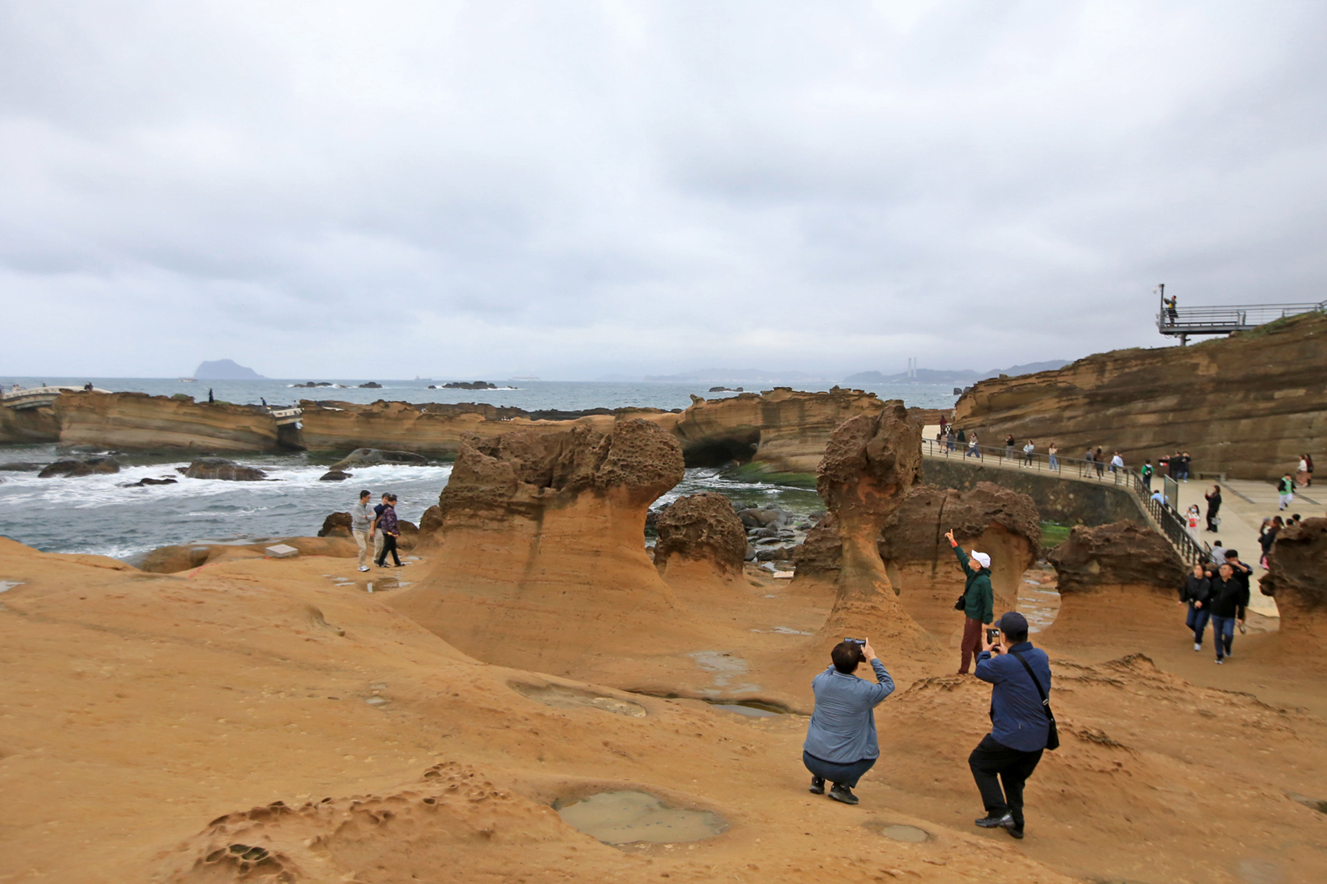 지우펀에서는 비가 내렸는데 예류에 오니 비가 그쳤다. 가이드의 설명으로 지형적인 이유가 크다고 한다. 대만에 와서 가까이에서 바다를 보기는 처음이다.