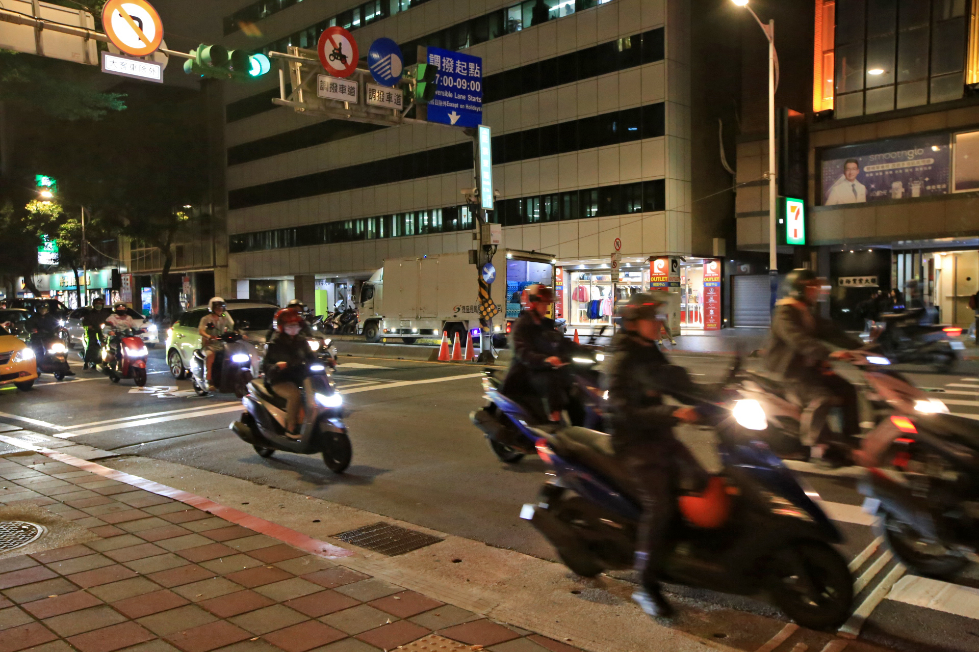 식당 앞 교차로에서 신호대기 중인 오토바이들....