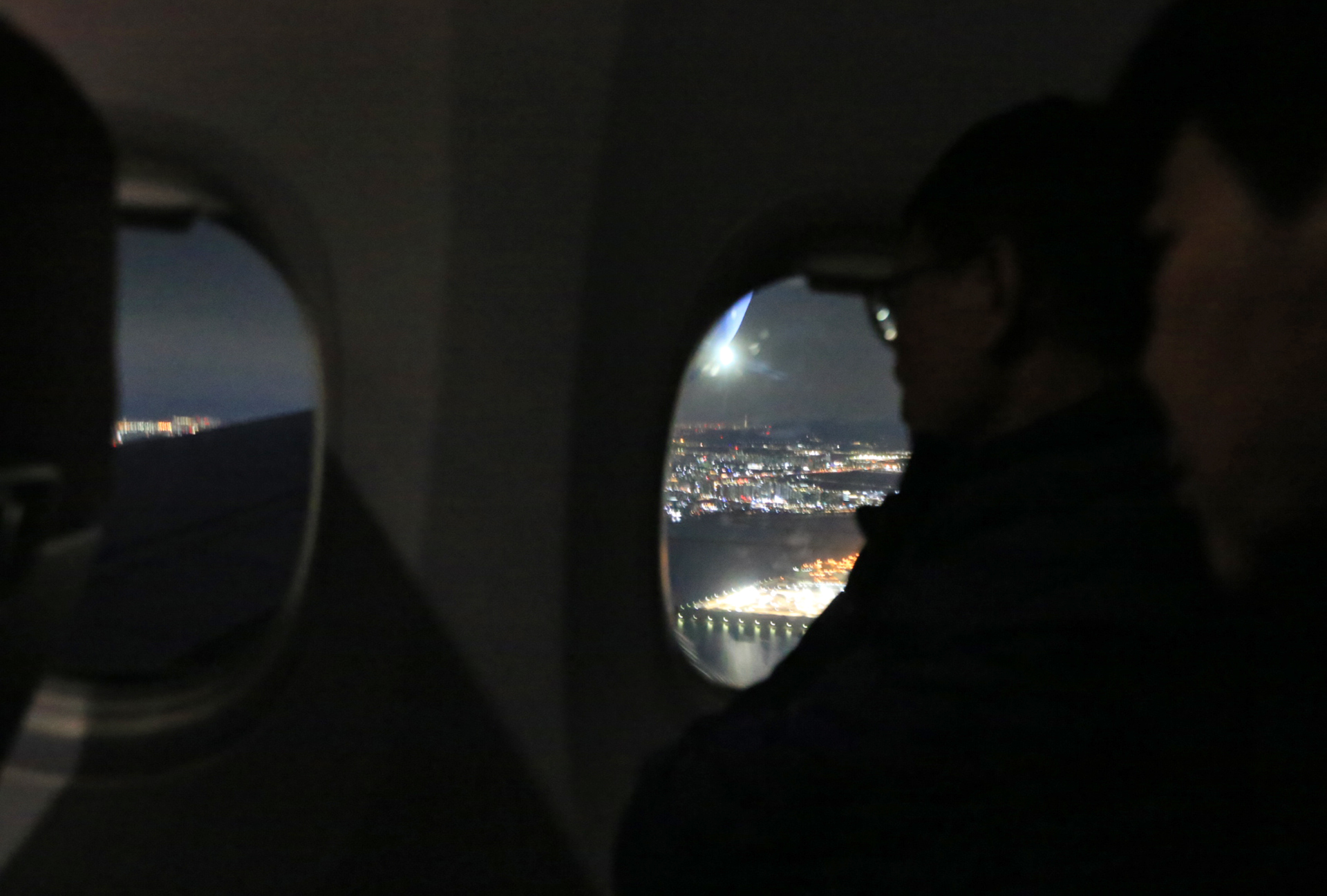 인천국제공항이 가까워졌는지 주변 불빛이 보이기 시작한다.