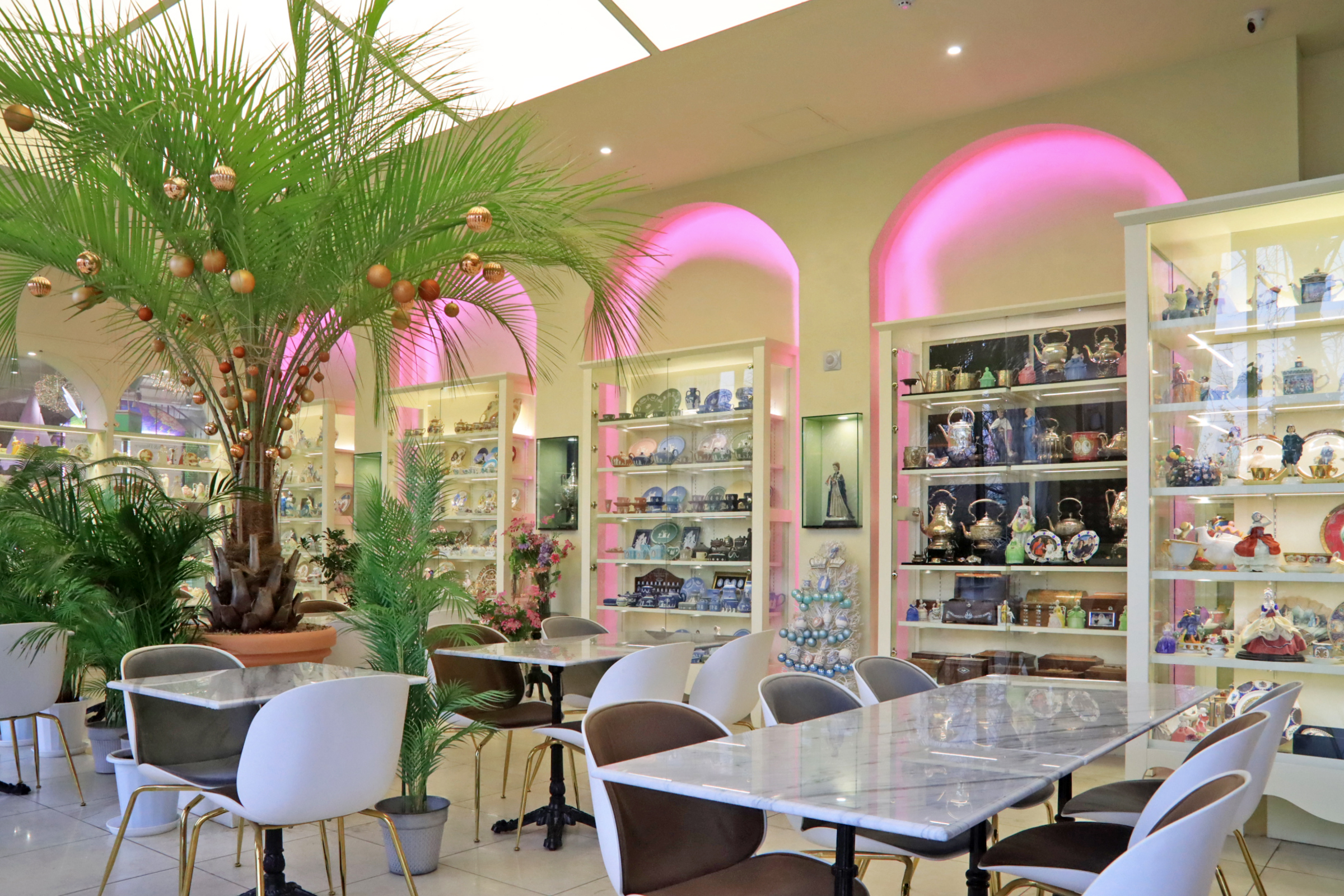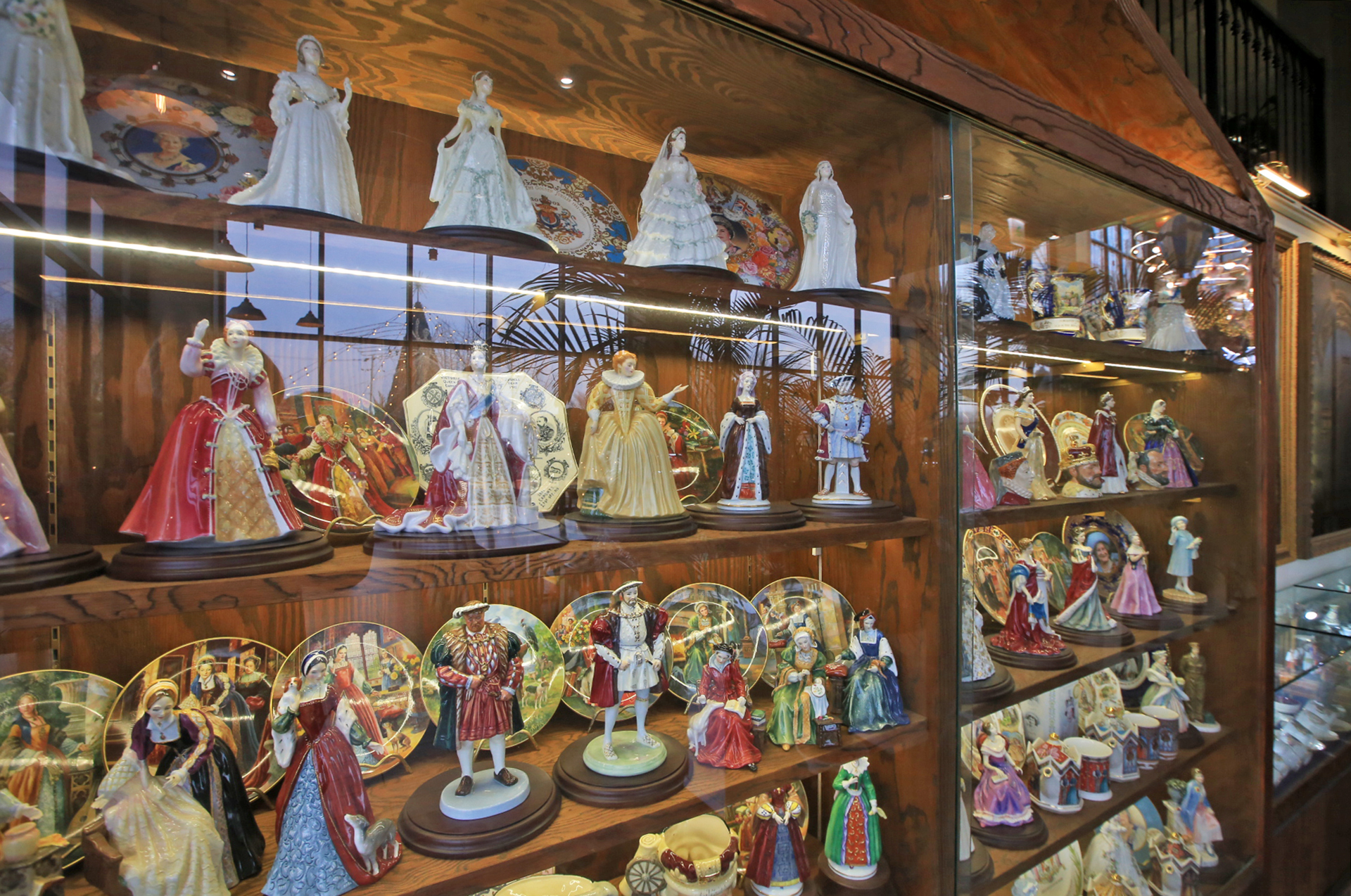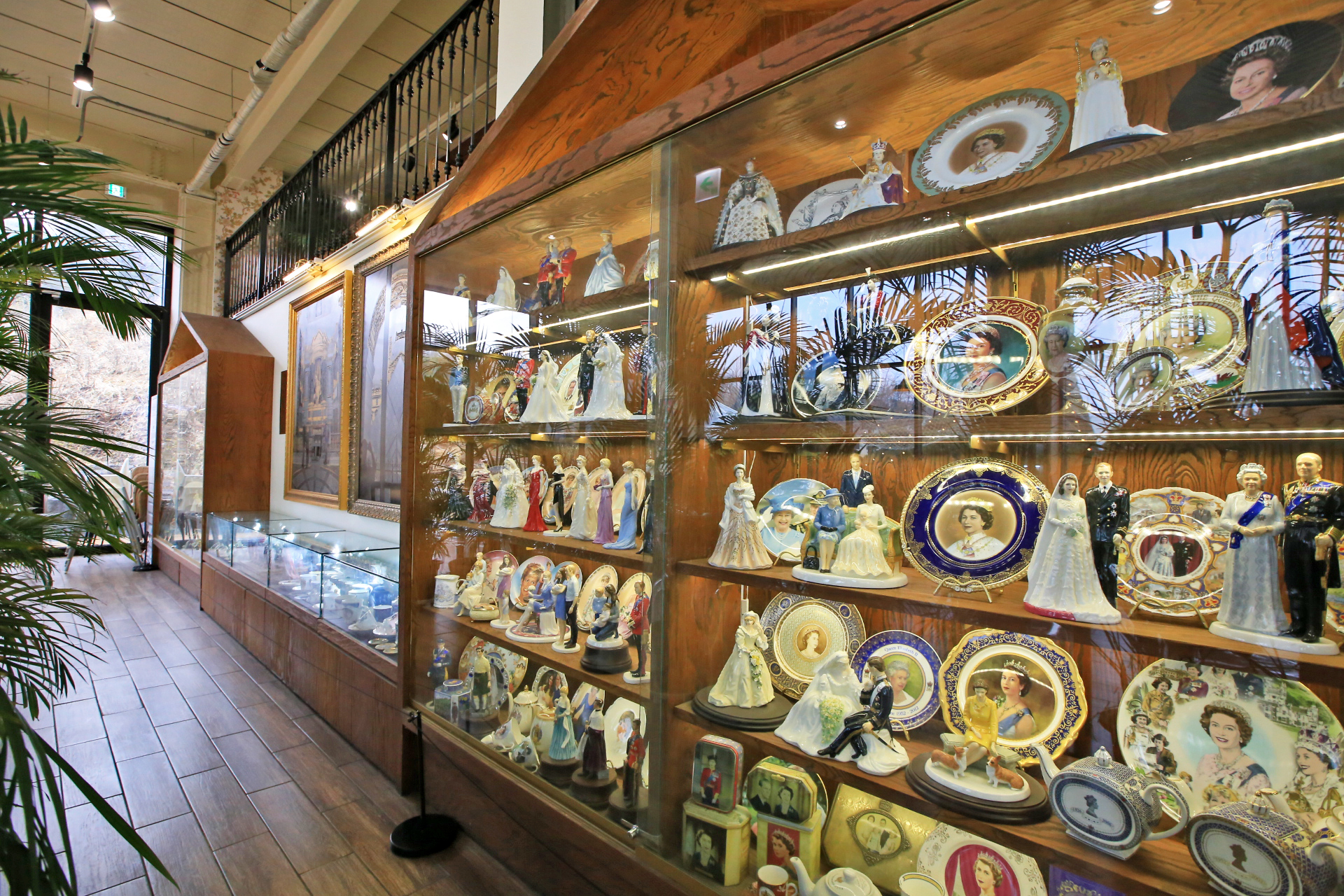 카페드첼시의 장식장에는 영국풍도자기 장식품이 주를 이룬다. 이 정도 모으기가 만만치 않았으리라.
