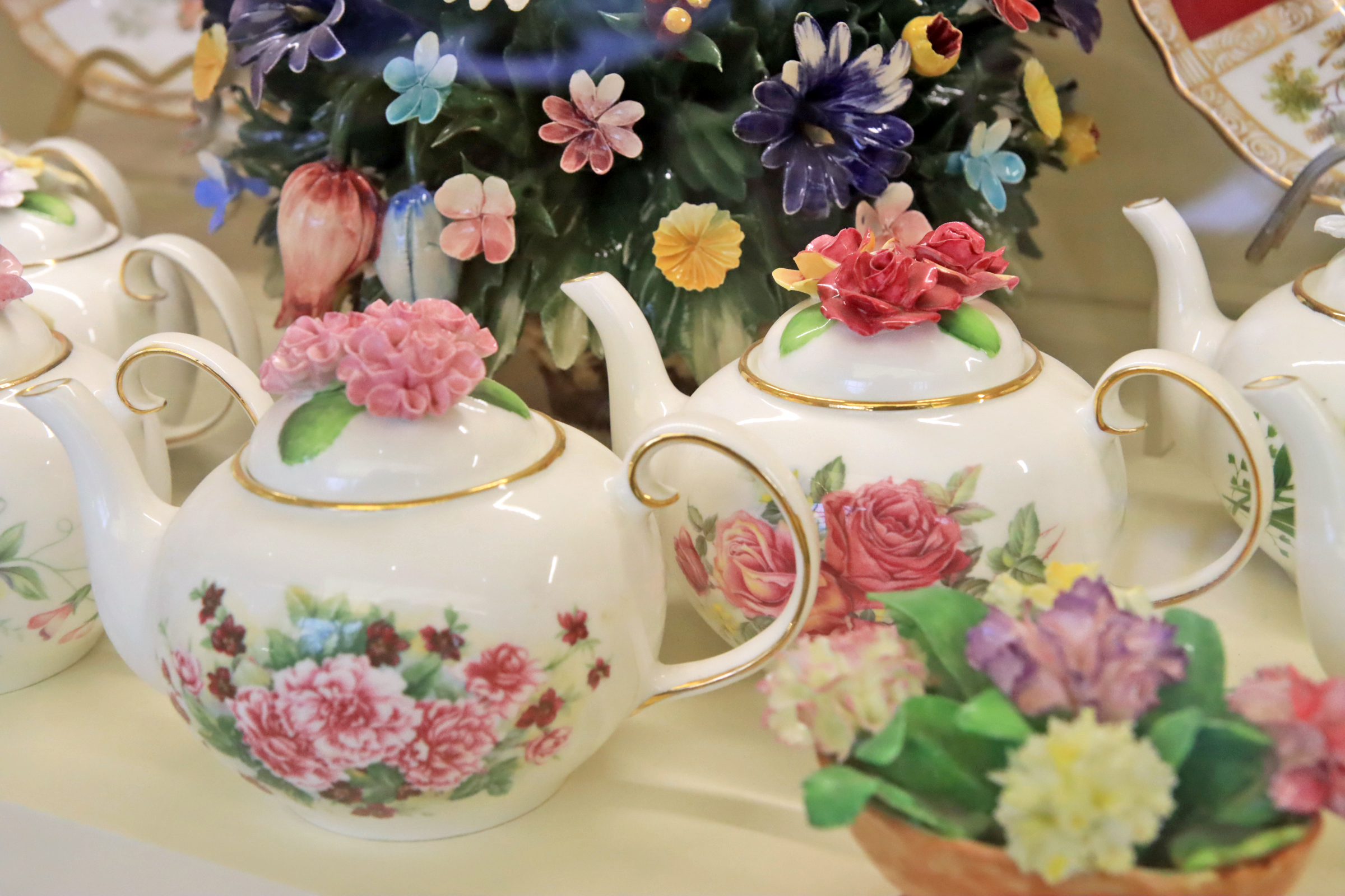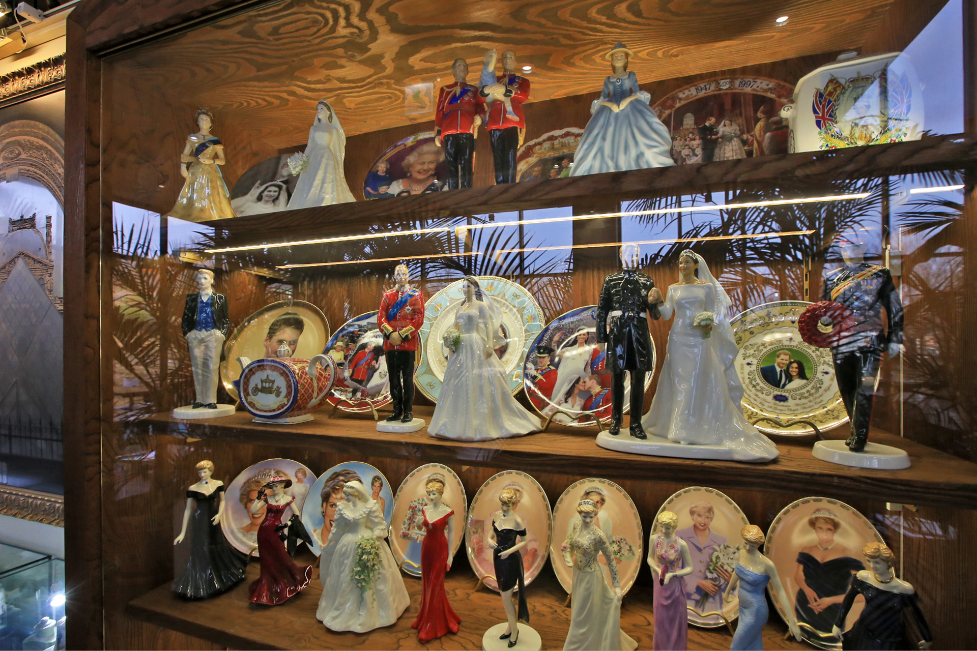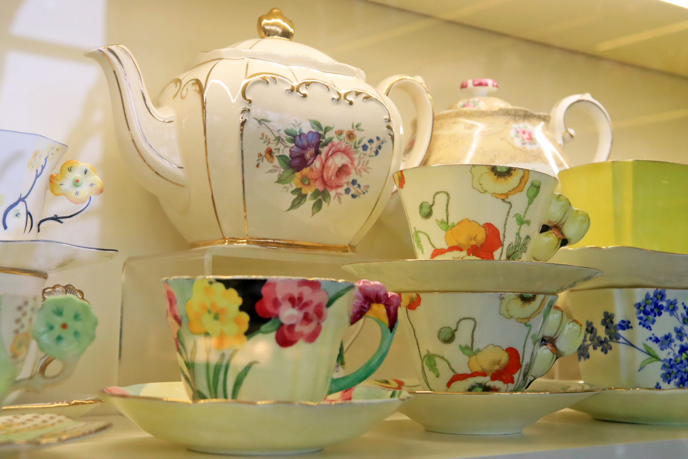 카페드첼시의 장식장에는 영국풍도자기 장식품이 주를 이룬다. 이 정도 모으기가 만만치 않았으리라.