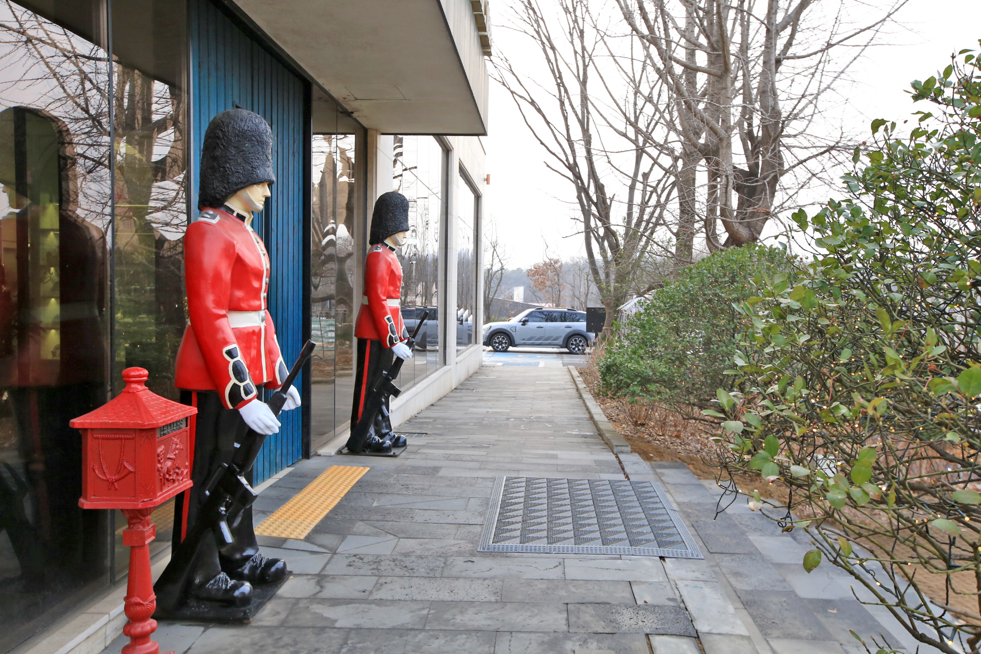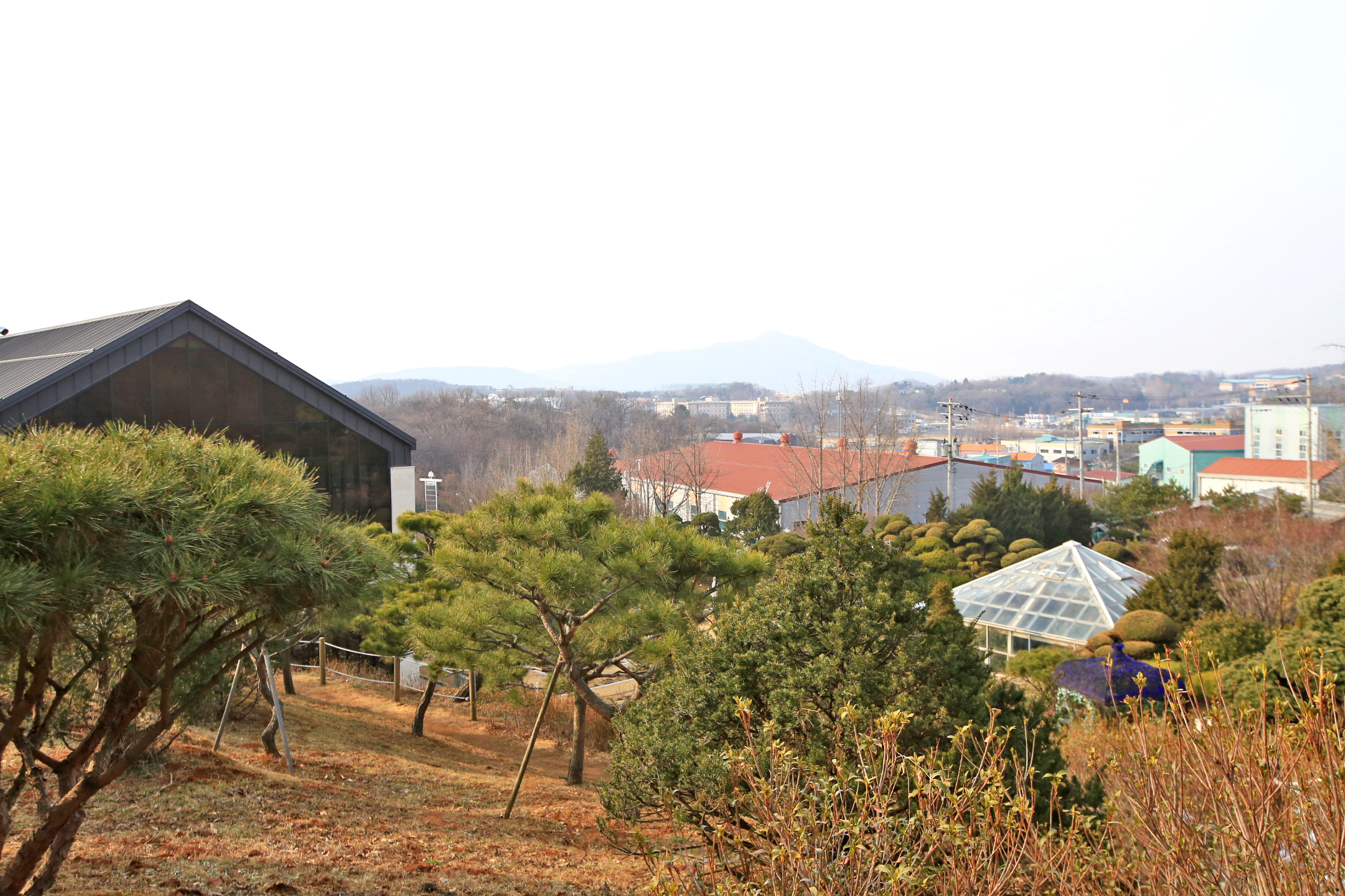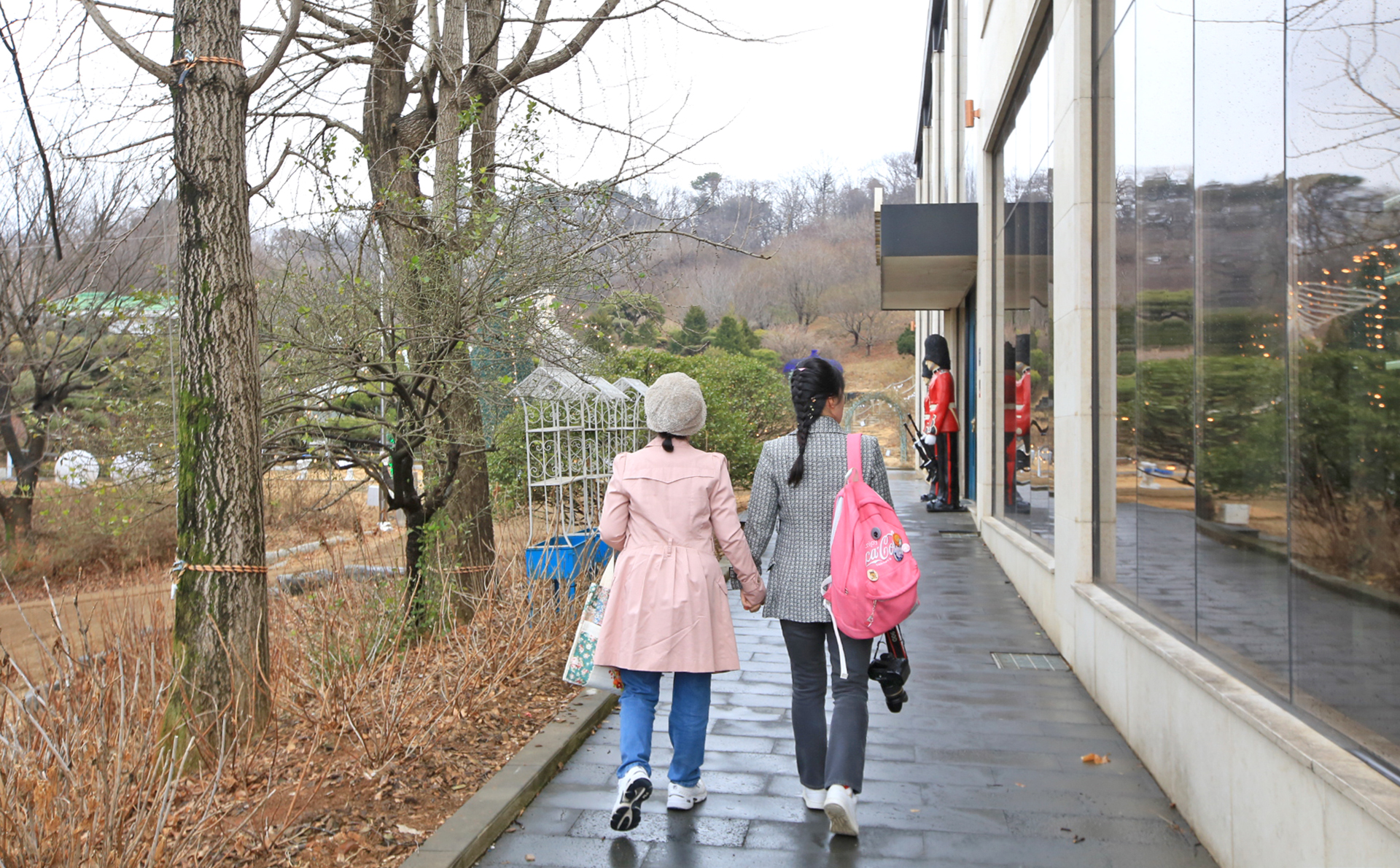 2층에서 외부로 나가는 출입구가 있다. 비가 막 그쳐서인지 바람이 차다. 아직은 썰렁한 겨울 풍경이다.