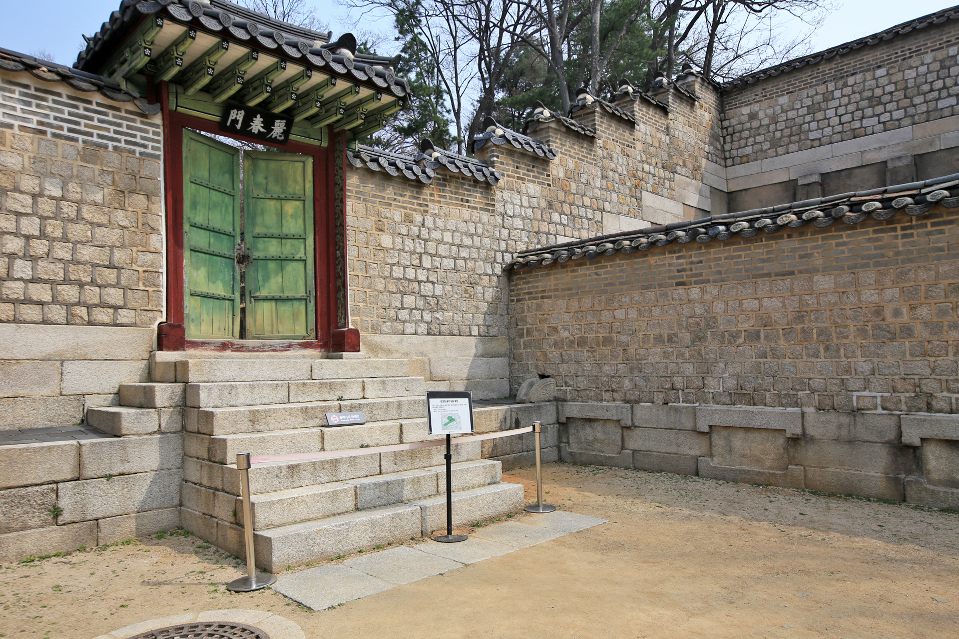 대조전 북측의 화계로 가는 문인데 수라간 쪽과 마찬가지로 차단되어 있다. 성정각 쪽 통로를 이용하여 희정당 신관의 남측으로 갔다.