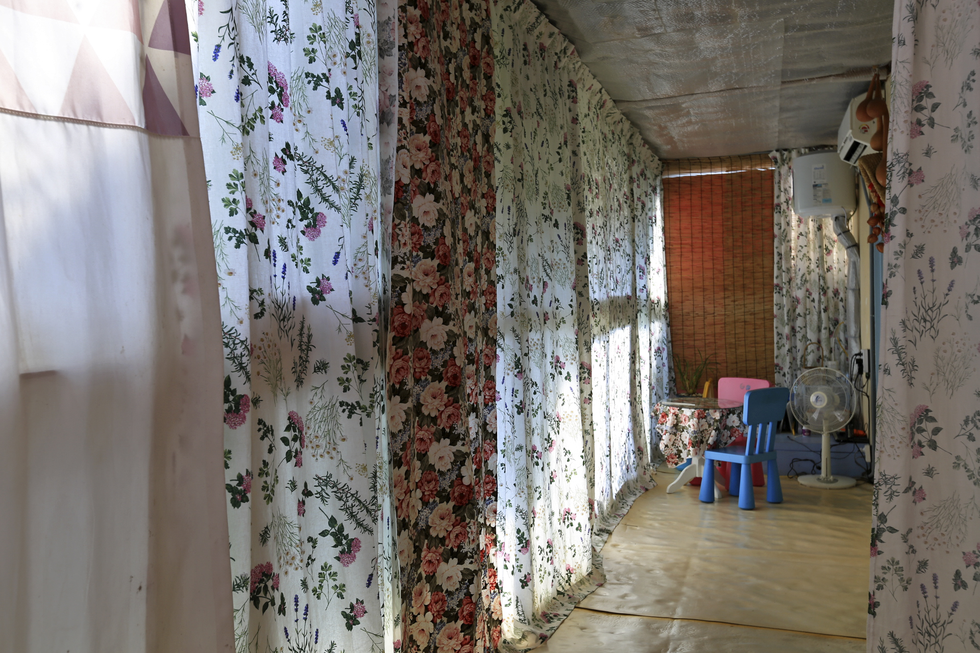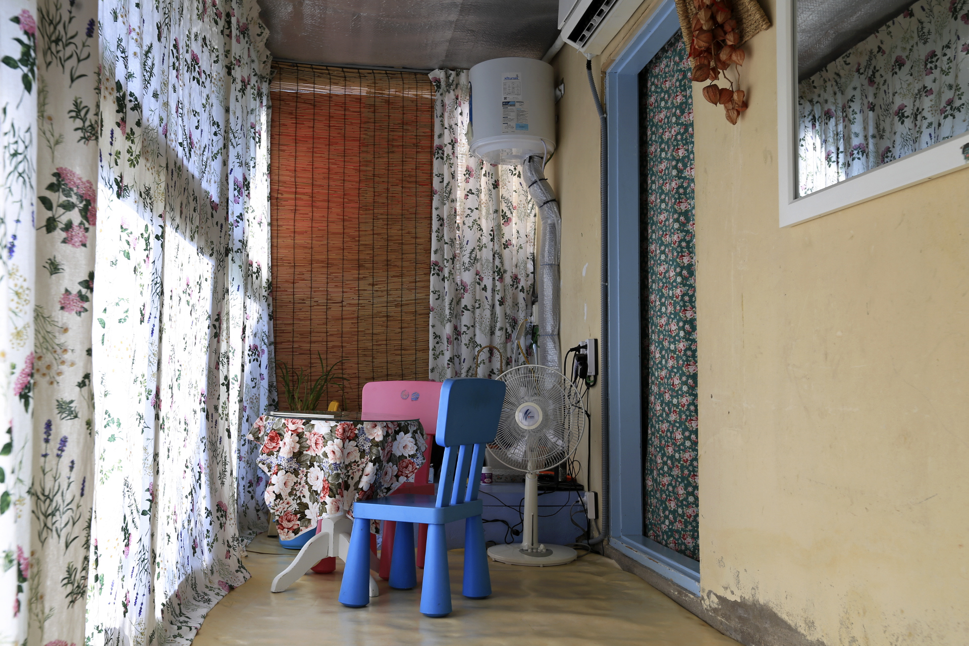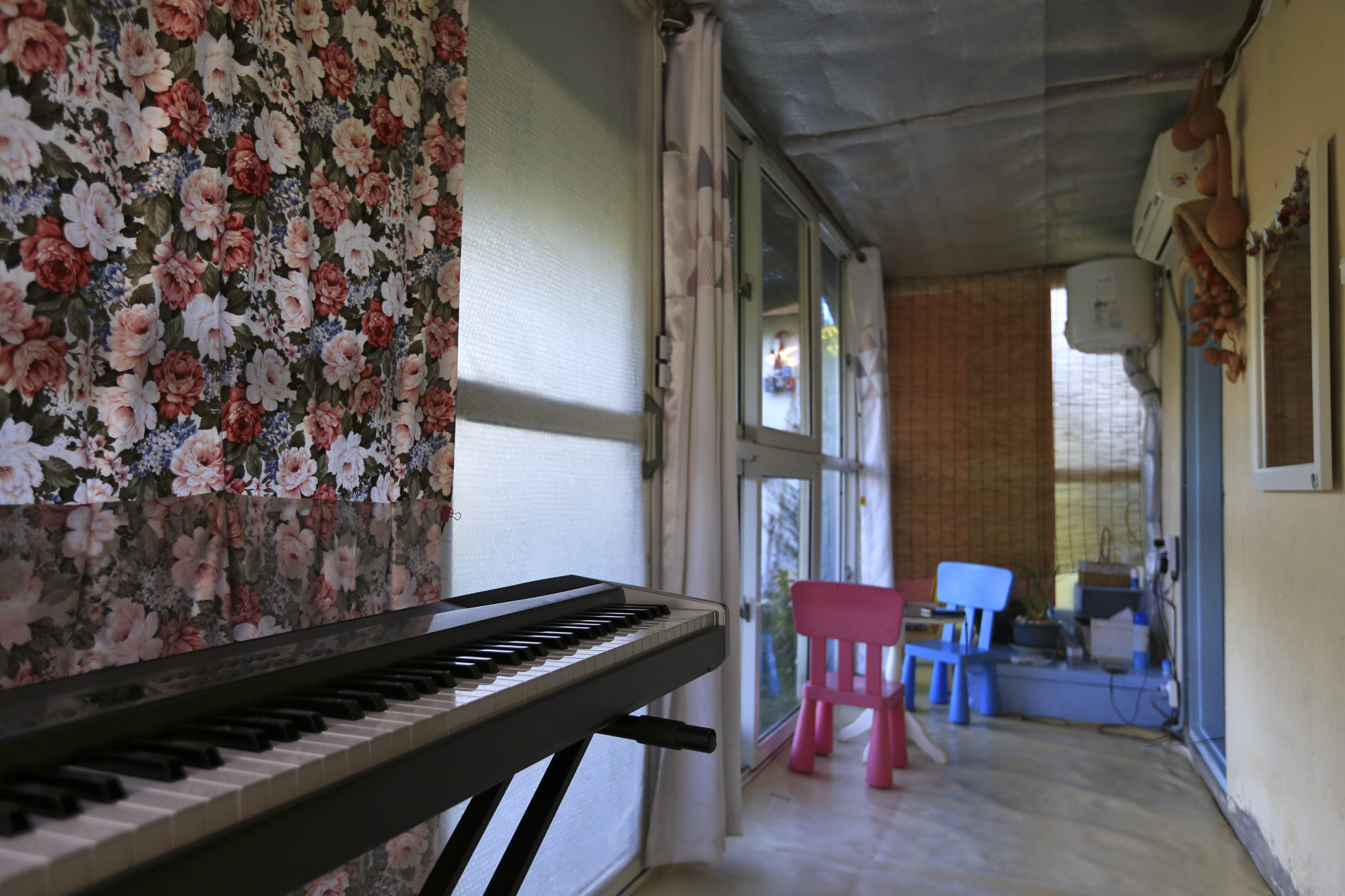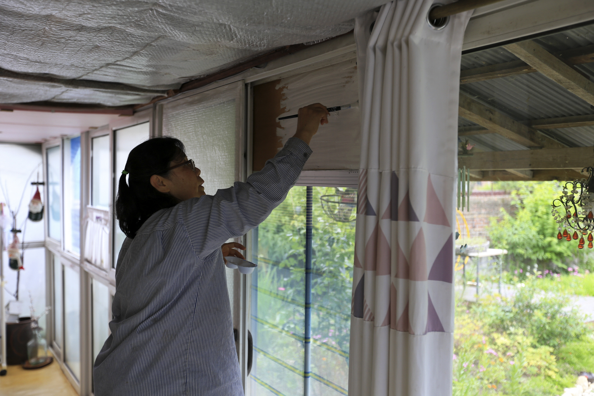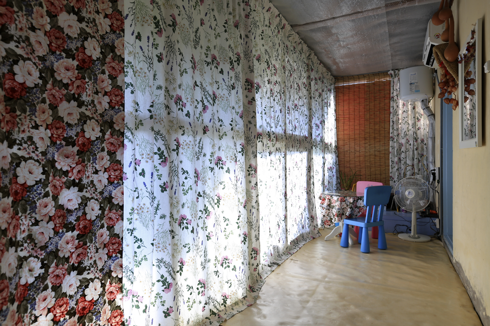 에어컨을 설치하며 구 온실문 부분의 중간 칸막이 커튼으로 사용하기 위하여 주방문 커튼을 떼어다 사용했던 것을 원래의 위치인 주방문에 다시 설치하였다. 커튼이 에어컨을 가동할 때 불필요한 공간까지 냉방을 해야 하는 낭비를 막아주는 효과가 있다.