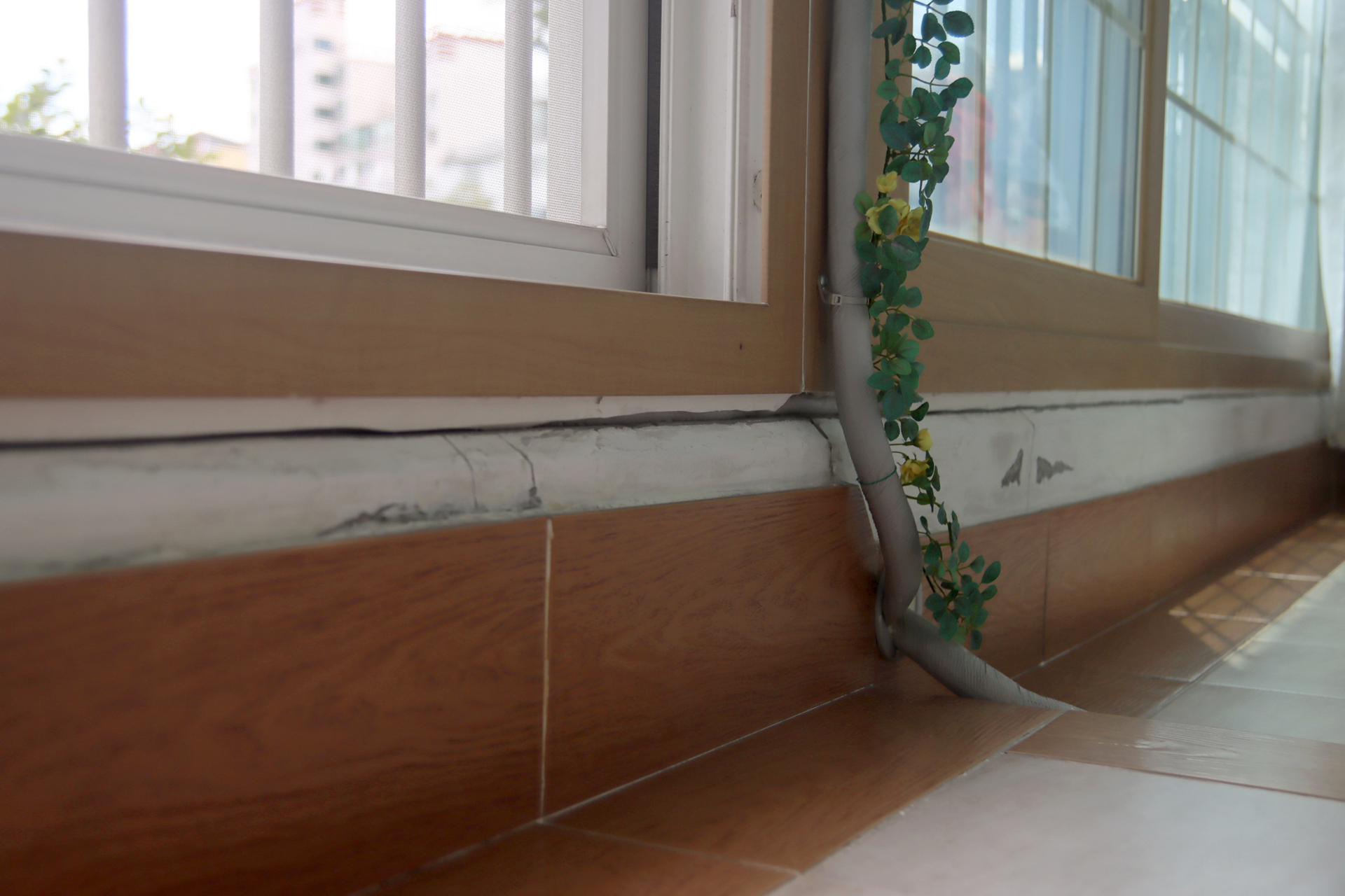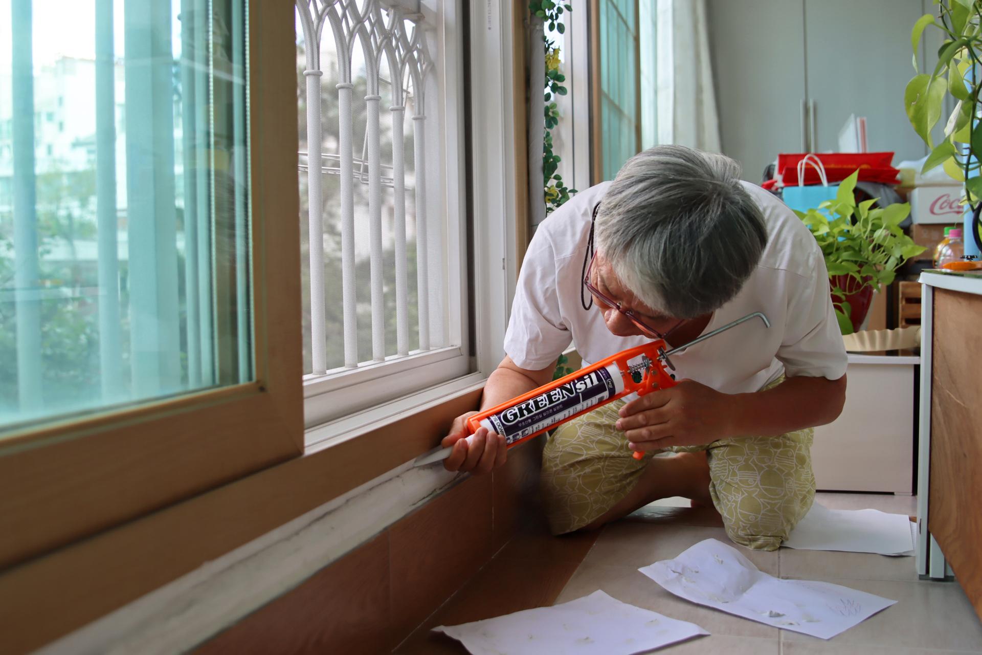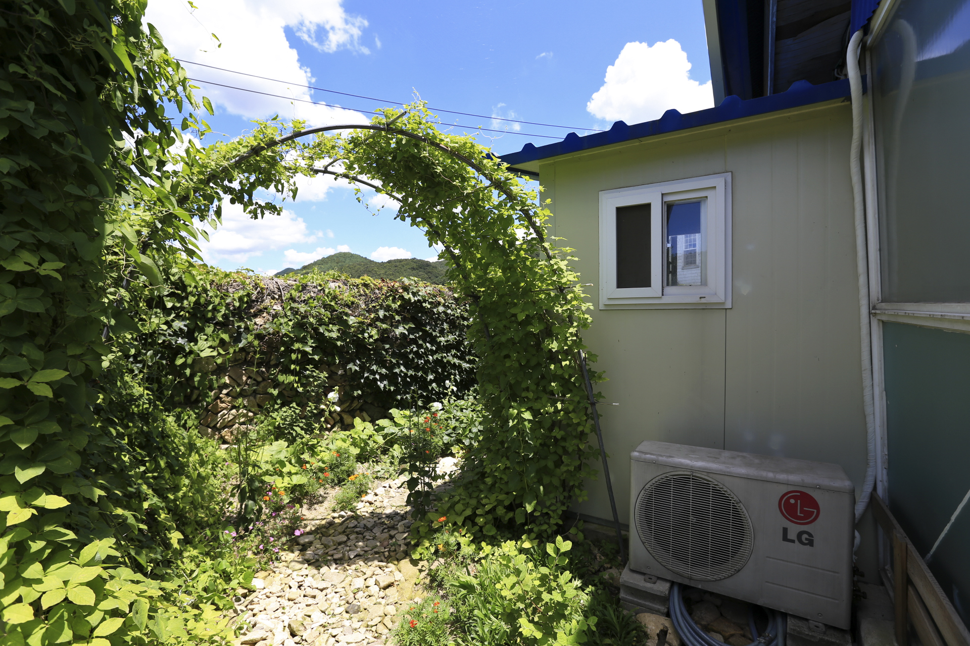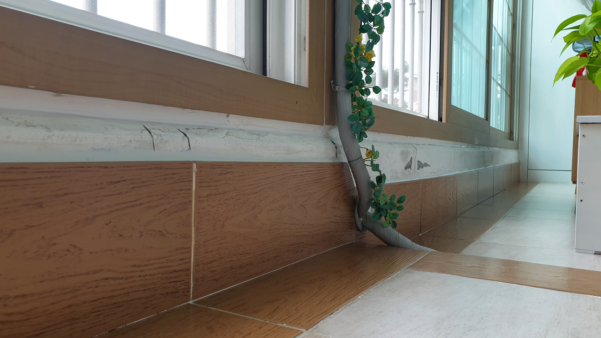 에어컨을 설치하며 구 온실문 부분의 중간 칸막이 커튼으로 사용하기 위하여 주방문 커튼을 떼어다 사용했던 것을 원래의 위치인 주방문에 다시 설치하였다. 커튼이 에어컨을 가동할 때 불필요한 공간까지 냉방을 해야 하는 낭비를 막아주는 효과가 있다.