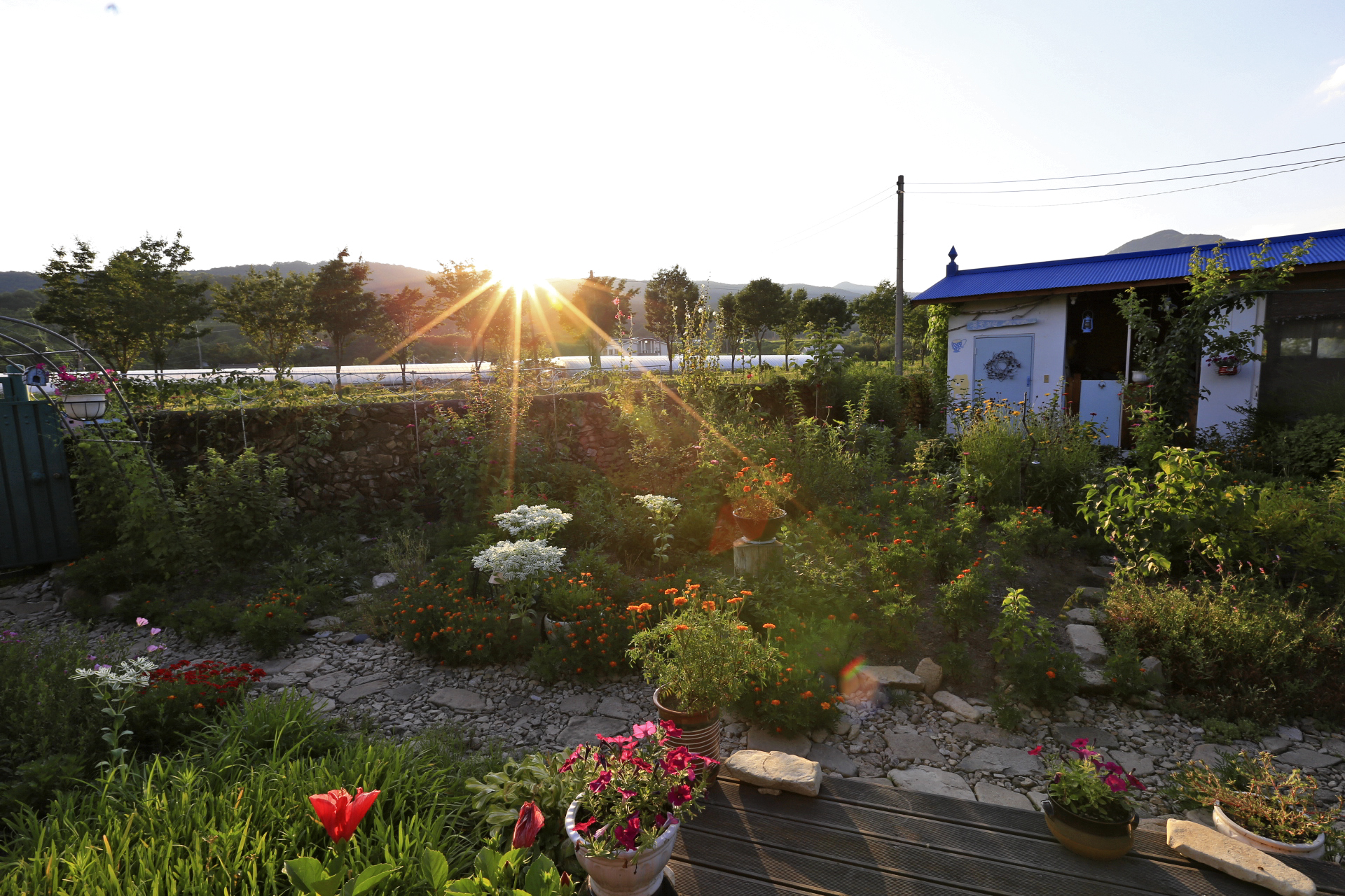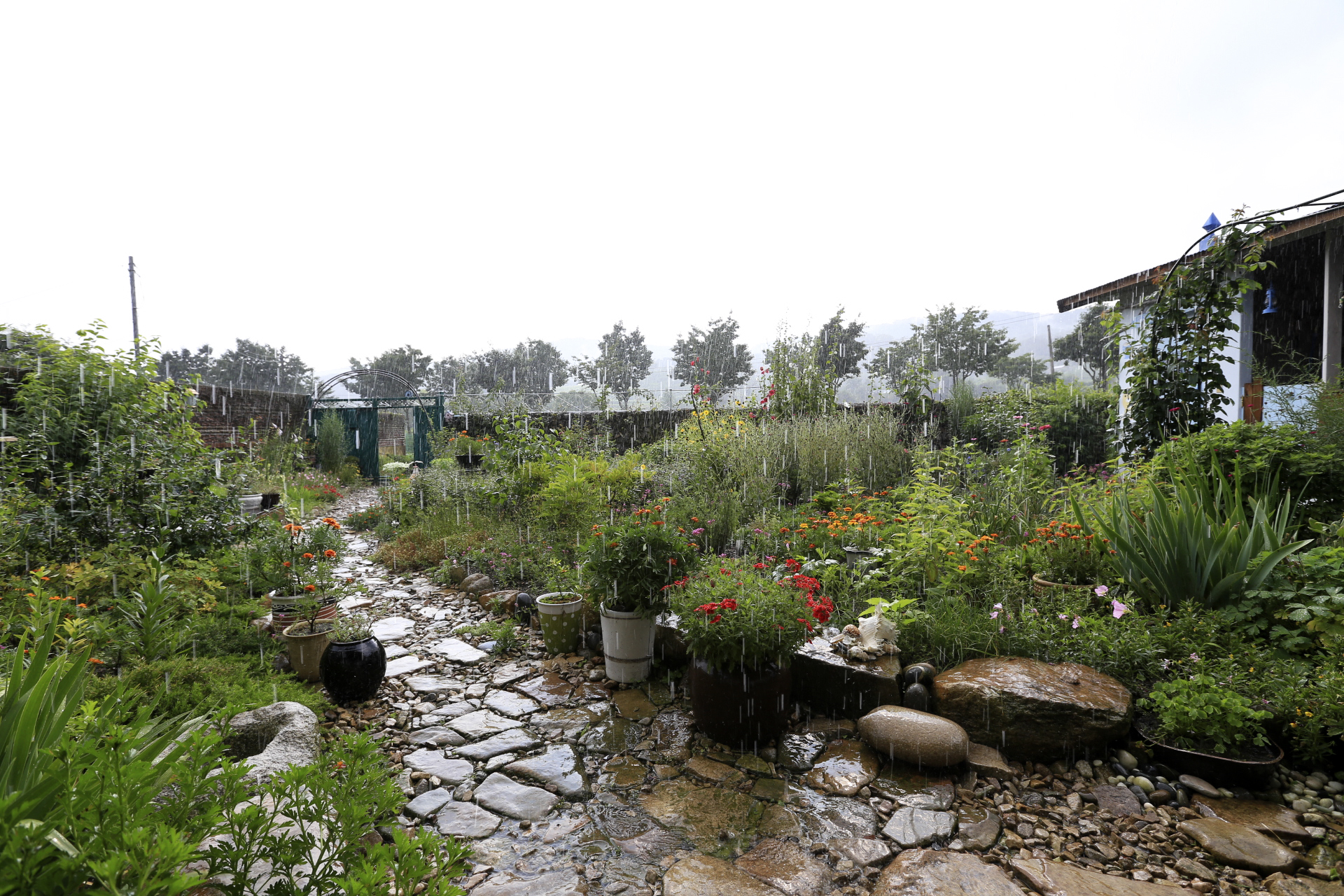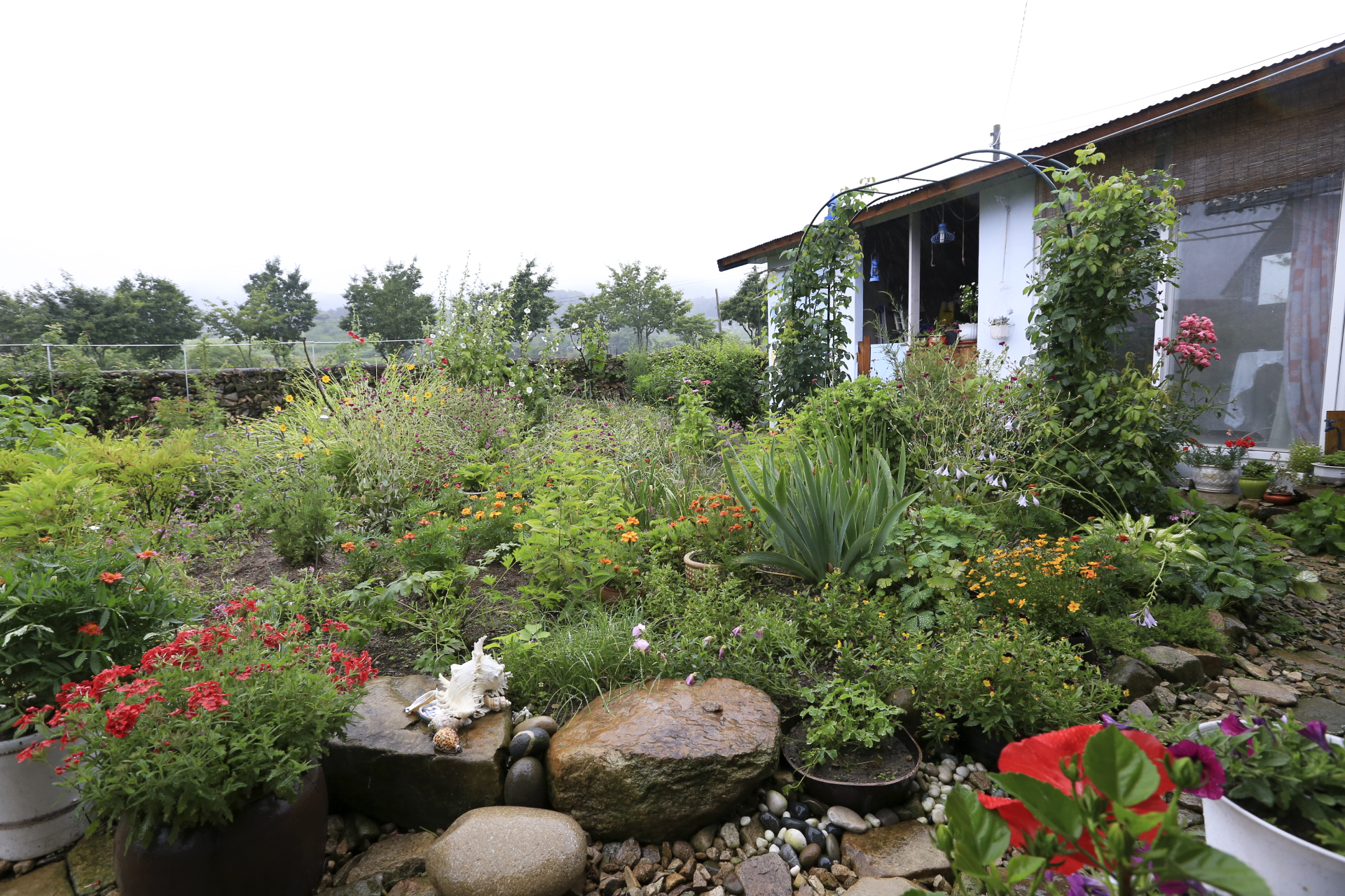엊저녁에 소나기가 좀 내려서 꽃밭에 물을 뿌려 주는 작업은 생략하였다.