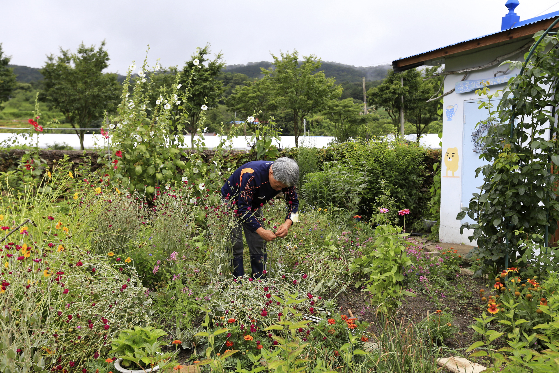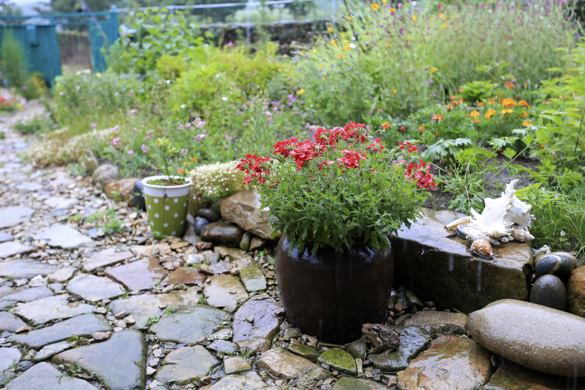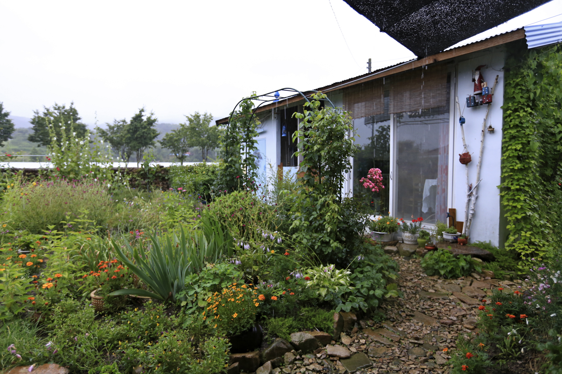 엊저녁에 소나기가 좀 내려서 꽃밭에 물을 뿌려 주는 작업은 생략하였다.