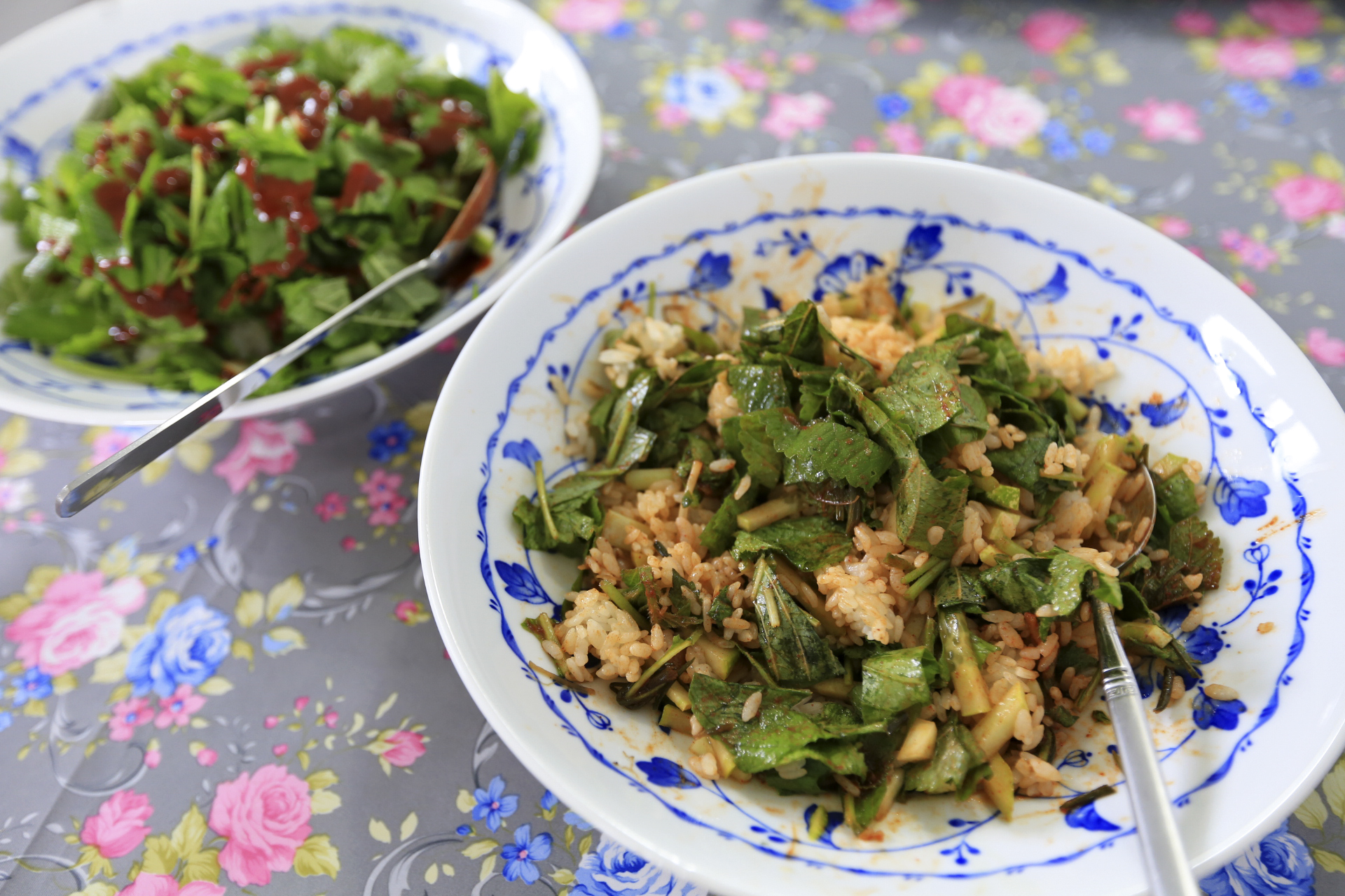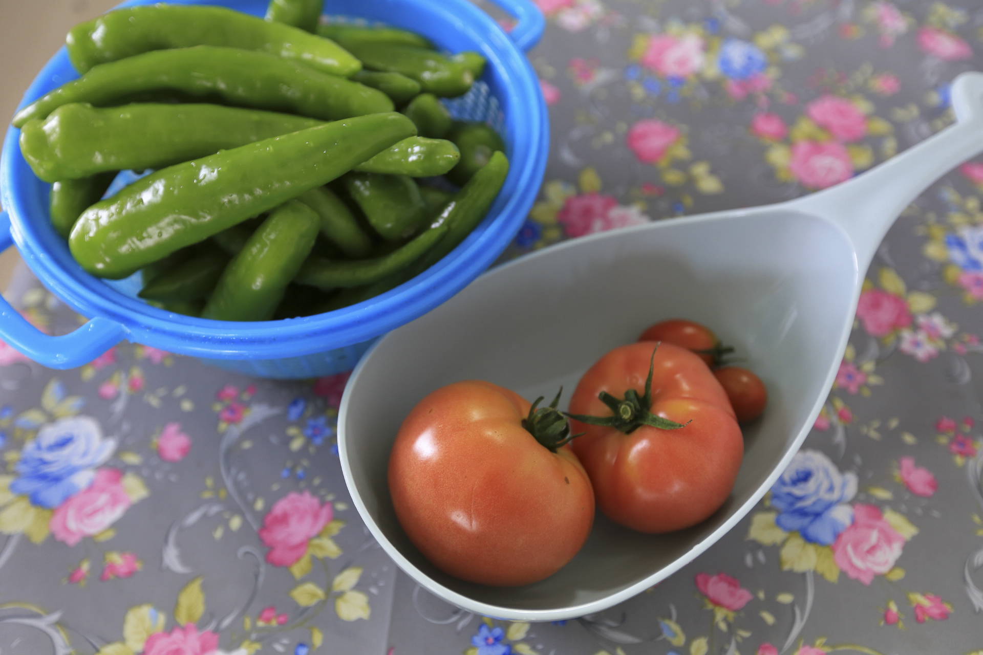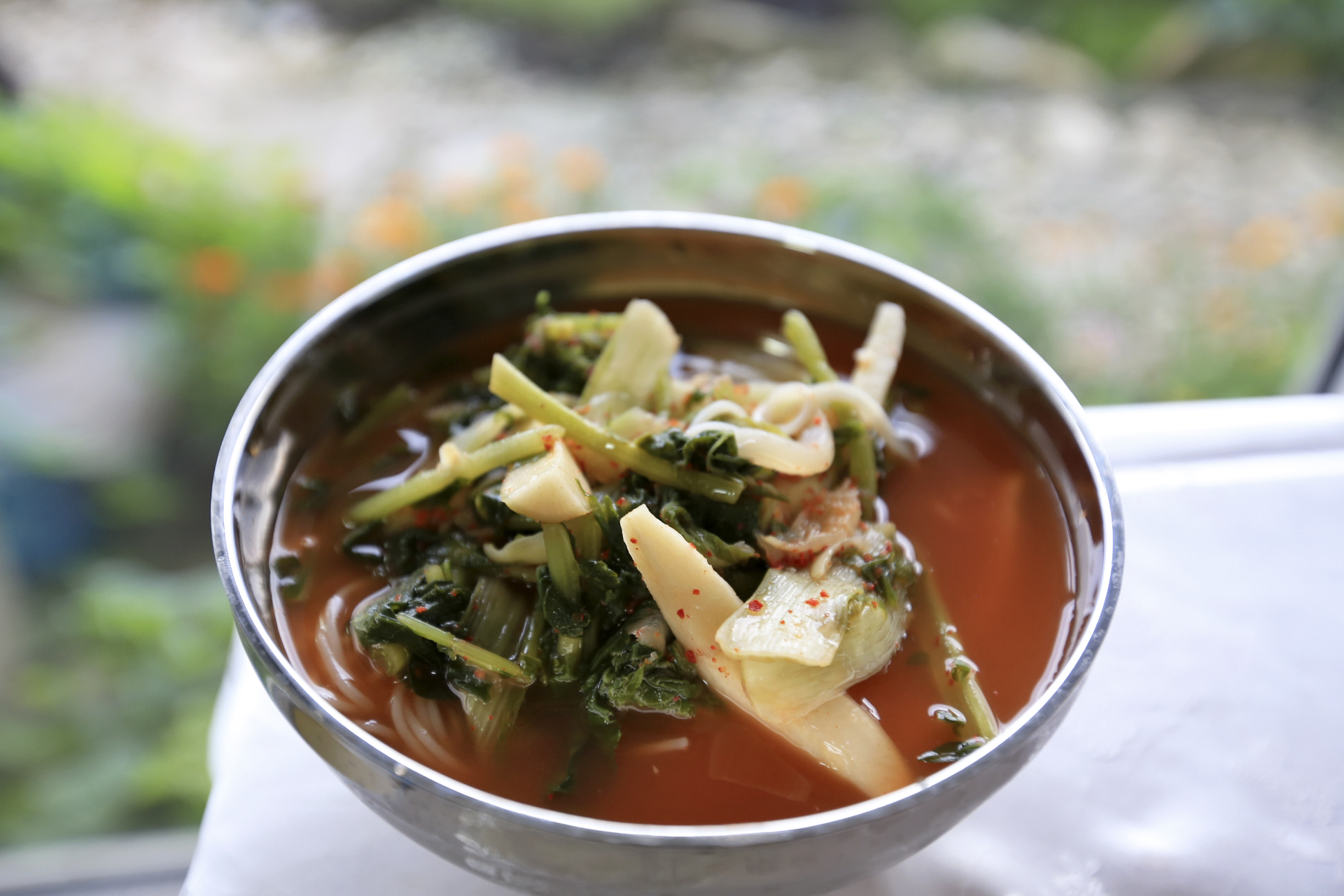 점심으로 텃밭에서 키운 토마토와 오이가 고명으로 얹은 견과류국수를 먹었다.