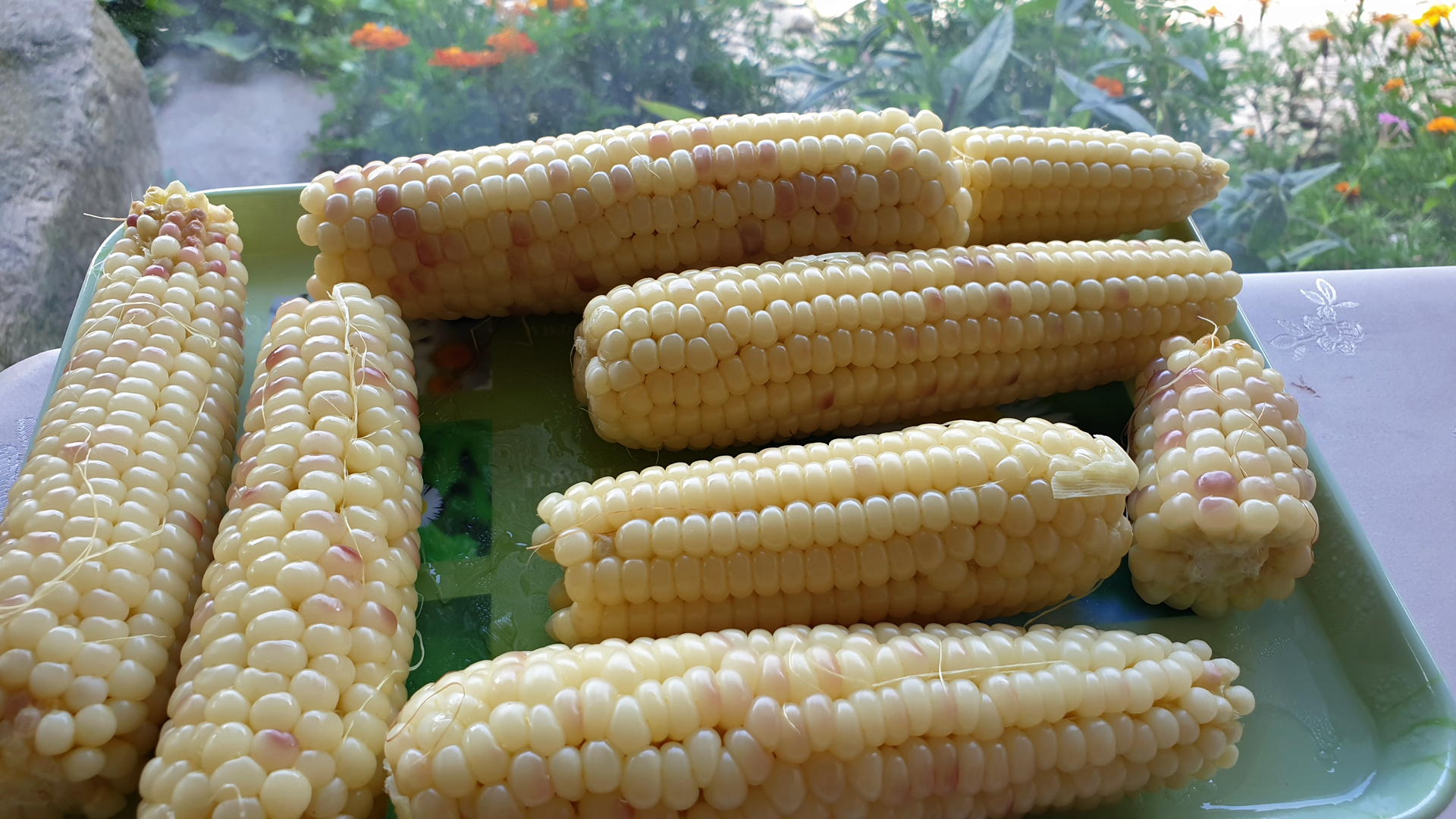 ● 오후에 먹을 만한 것이 없을까 생각하다가 옥수수가 떠올랐다. 몇 개 따서 쪄먹자며 바구니를 들고 텃밭에 갔더니 대부분의 옥수수가 너무 영글었다. 한꺼번에 심으면 옥수수가 한꺼번에 익을까 보아서 아내는 7일과 10일 간격으로 세 차례 옥수수를 파종하였단다. 자랄 때에는 확연하게 차이가 있어 보이던데 같이 익어 버렸다. 아마도 20여일 차이를 두고 심어야 하자 않을까? 지난번에는 너무 익지 않은 상태에서 옥수수를 땄더니 뭔가 부족하기에 더 익기를 기다렸는데 깜박 수확 시기를 놓친 것이다. 얼마 전에 아내와 김포 약암리에 있는 선생님 댁을 방문하였을 때 농사를 지으면 수확하기가 가장 힘들더라고 하시던데 그 때는 뻥 했는데 이제야 이해가 된다. 어쩔 수 없이 거의 대부분을 수확하여 껍질을 벗겨냈다. 덜 익어서 쩌 먹기 좋은 것과 중간정도 익어서 밥에 넣어 먹을 것과 완전히 익어서 뻥튀기 해 먹을 것을 구분하여 일부는 WS에게 보내고 뻥튀기 할 것 이외에는 모두 쪄서 냉장고에 넣기로 하였다. 찐 것 몇 자루는 이웃에 사시는 누님 댁에 손녀들 맛이나 뵈라고 가져다 드렸다. 오후에 찐 옥수수 몇 자루를 먹었더니 저녁밥 생각은 나지도 않는다.