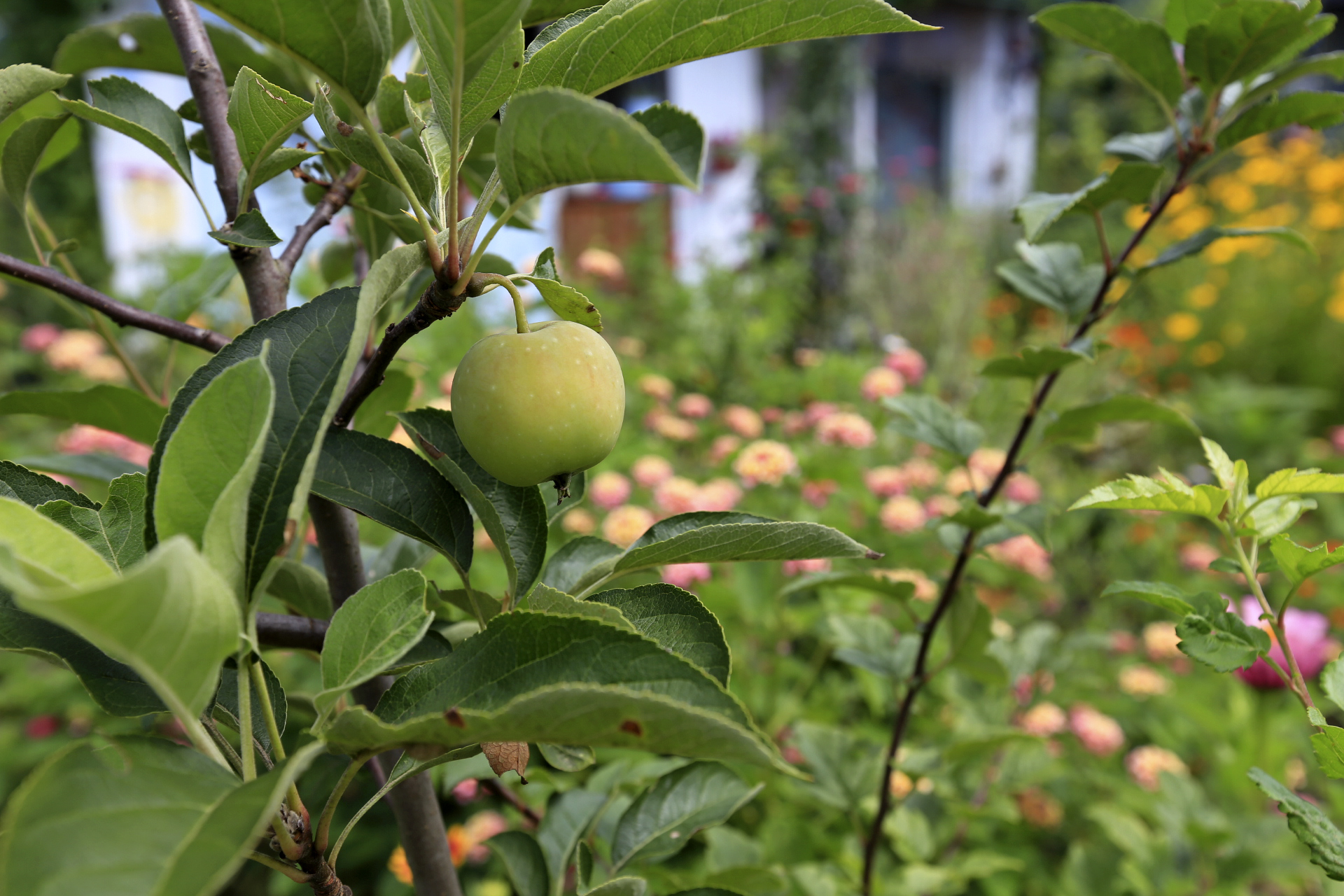 한 개가 열린 꽃사과.