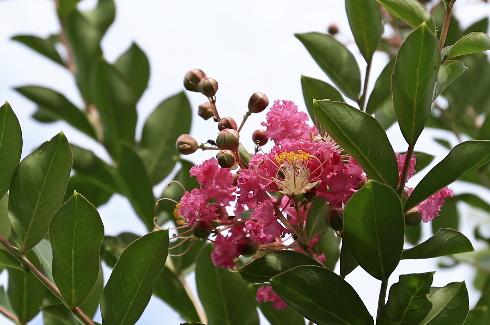 지난겨울에 본채 앞에 있던 배롱나무가 동해를 입어서 본줄기의 일부가 죽었는데 그래도 새싹이 돋아났다. 수형을 논할 처지는 아니지만 죽지 않은 것만으로도 다행이라 생각하였는데 기대하지 않았던 꽃이 피었다. 담장 부근에 심은 배롱나무는 본줄기까지 동해를 입었는데 부리가 살아 있었는지 새싹이 돋아났다. 이 배롱나무도 꽃망울이 생겼으니 머지않아 꽃을 피우리라.