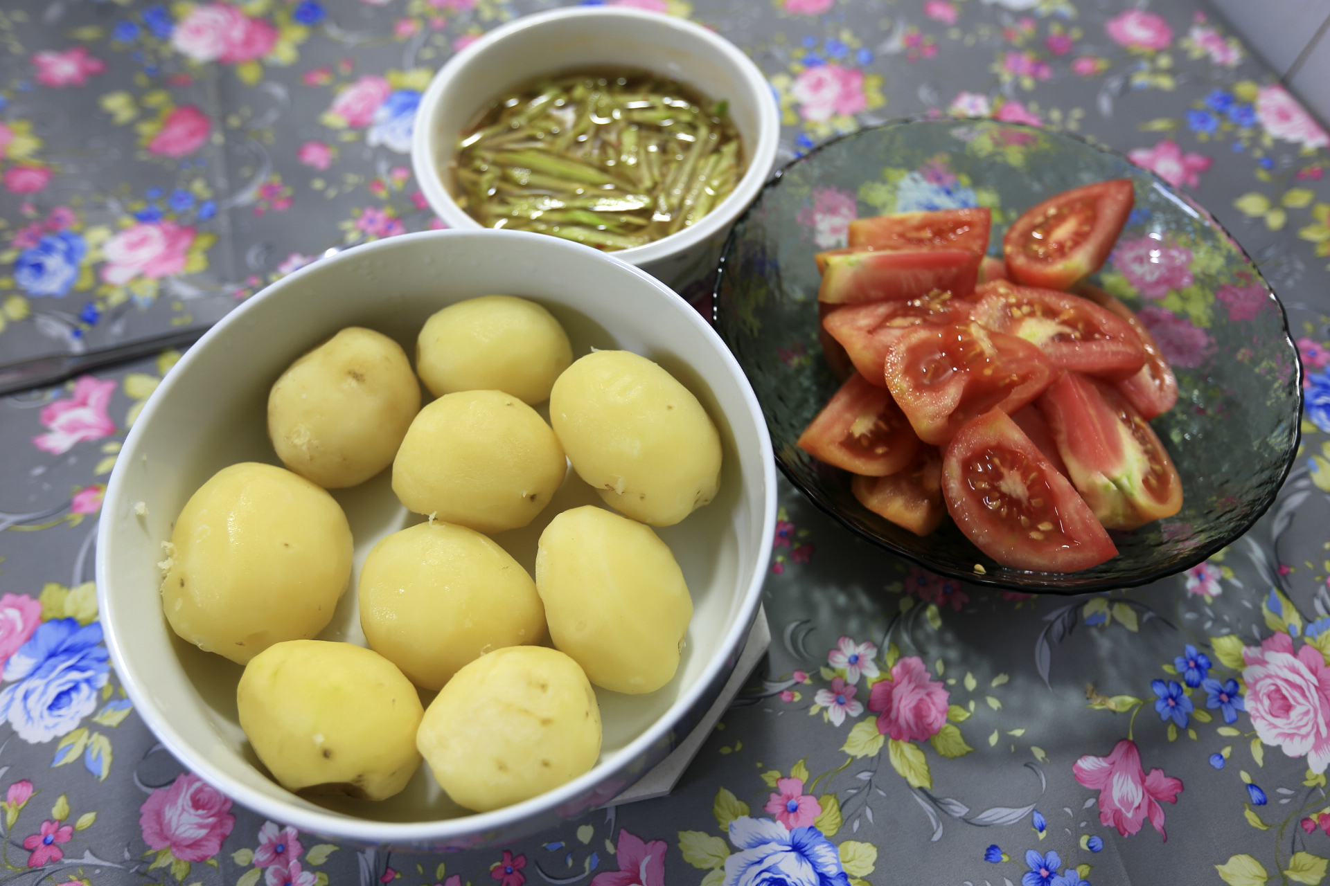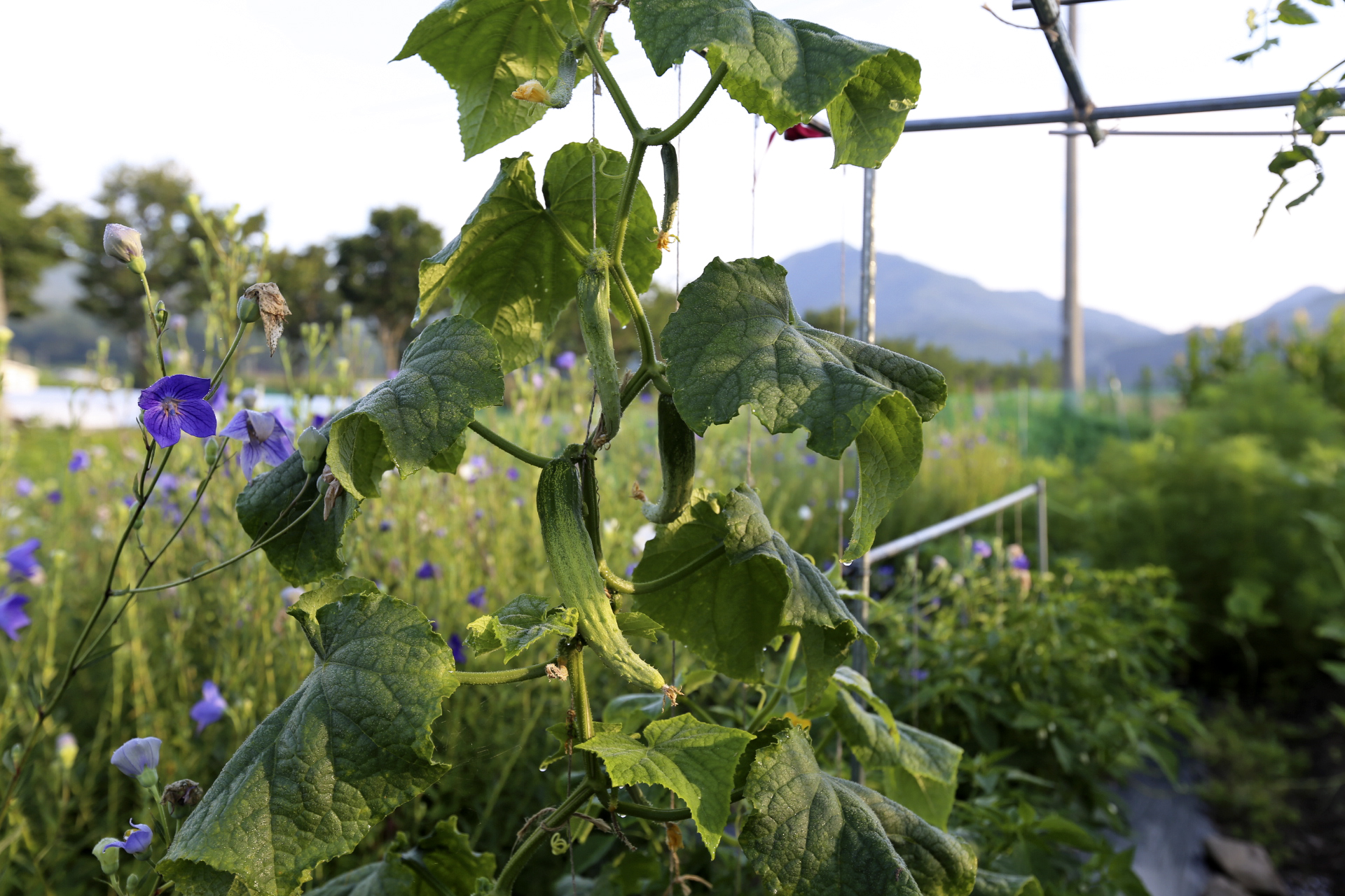 저녁에는 텃밭에서 키운 감자와 오이와 토마토를 먹었다.