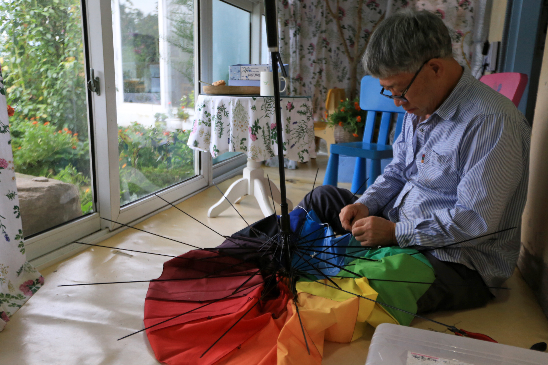 우산을 사용하려고 폈더니 우산살이 제멋대로여서 다시 접을 수도 없다. 우산살을 고정해주는 철사가 삭아서 끊어진 것이다. 간단히 수리가 될 것 같아서 시작하였는데 아무리 바빠도 바늘허리 매어서 쓰지 못한다는 속담이 있듯이 결국 천을 상당 부분 분리하고서야 제대로 고칠 수 있었다.
