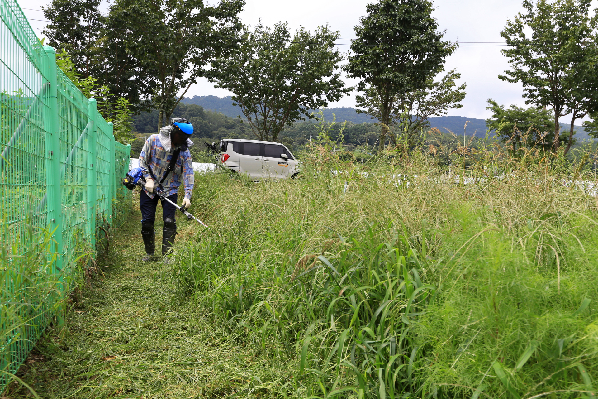 오후가 되면서 비가 그쳤다. 진입로가 지난번에 풀을 깎고(20210803) 3주일이 막 지났는데 출입이 불편할 정도로 풀이 자랐다. 낫으로 풀을 베려니 엄두가 나지 않기에 WS에게 부탁하여 예초기로 깎았다. 예초기 사용법을 배워서 직접 깎으면 쉽게 해결 할 수 있을 텐데....