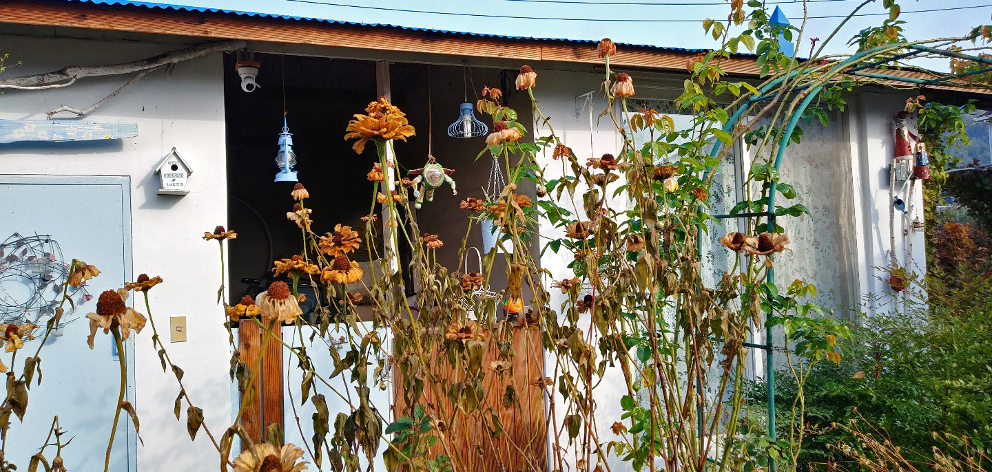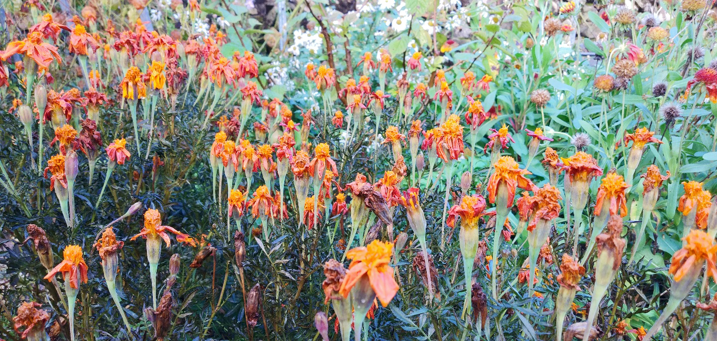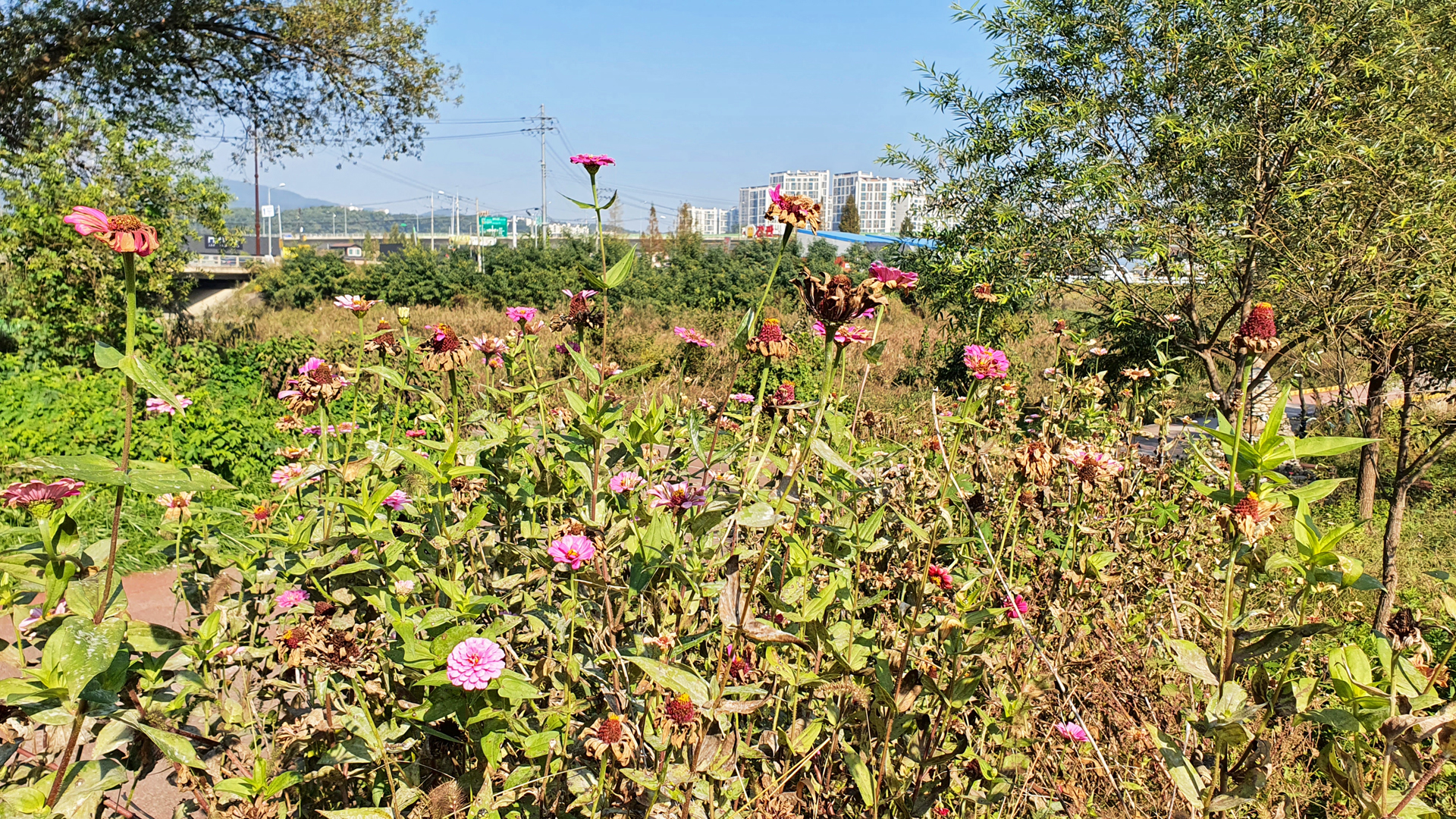 여기 있는 백일홍도 씨가 여물지 않았다.