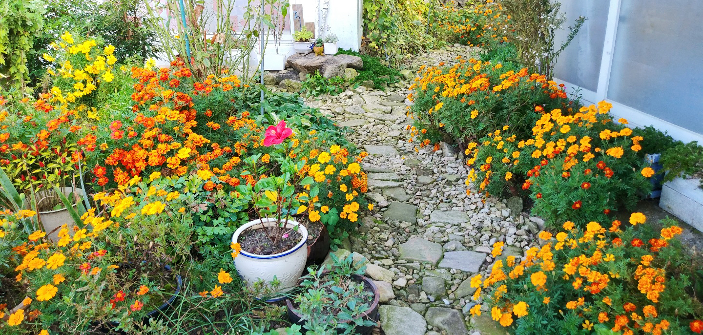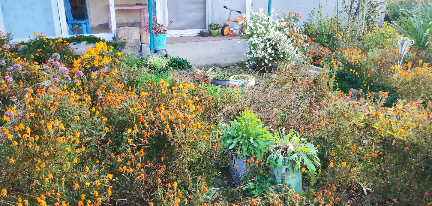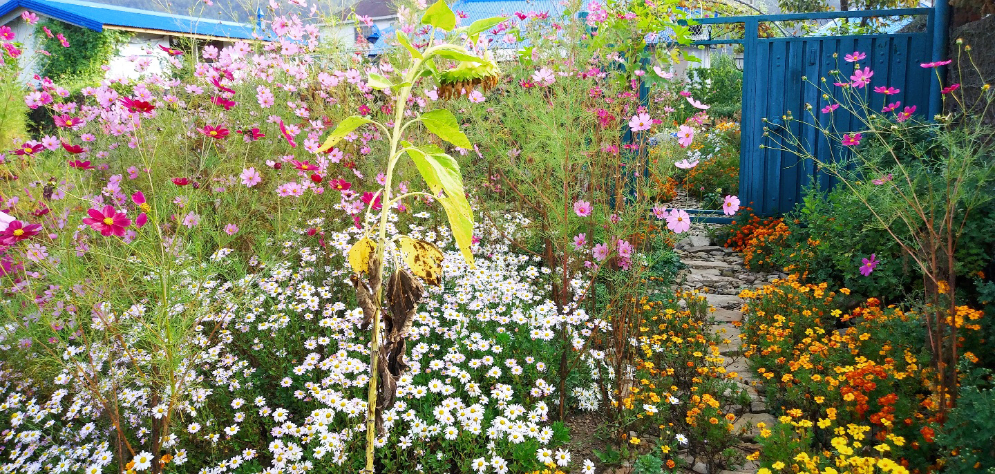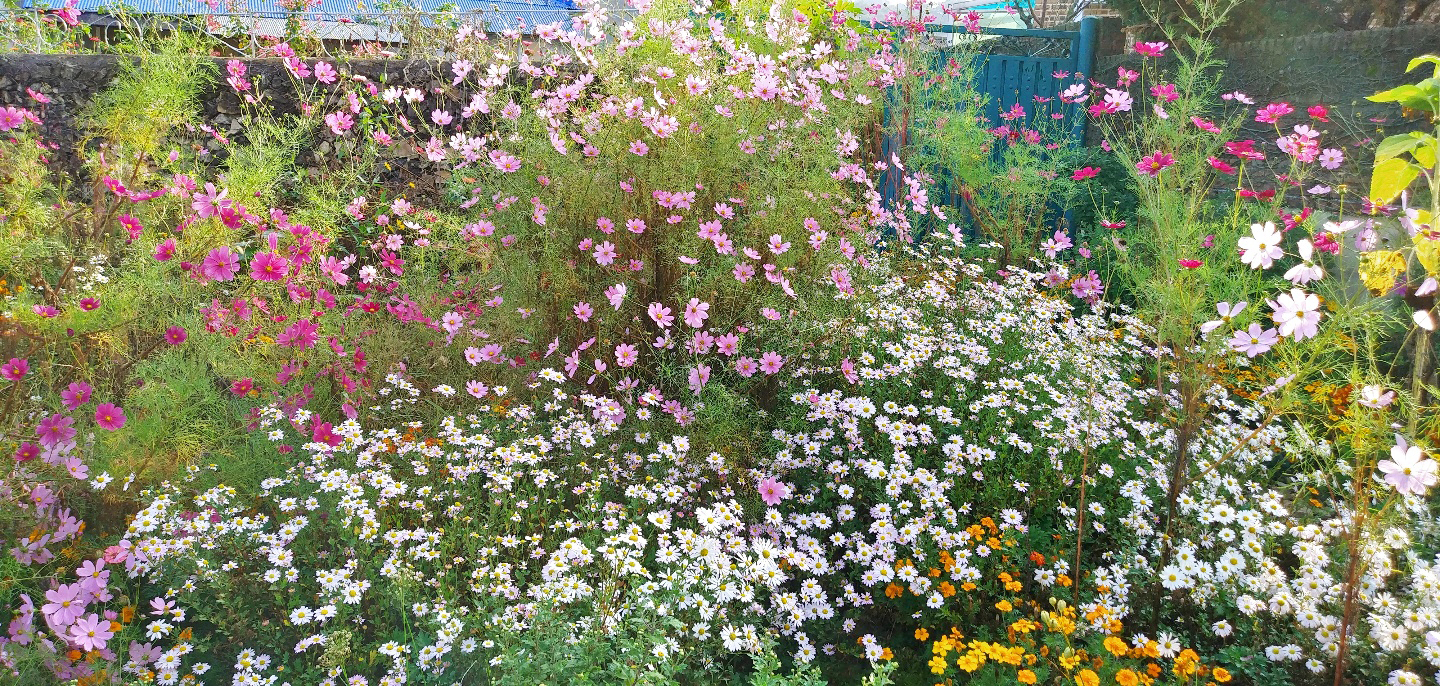 여기 있는 백일홍도 씨가 여물지 않았다.