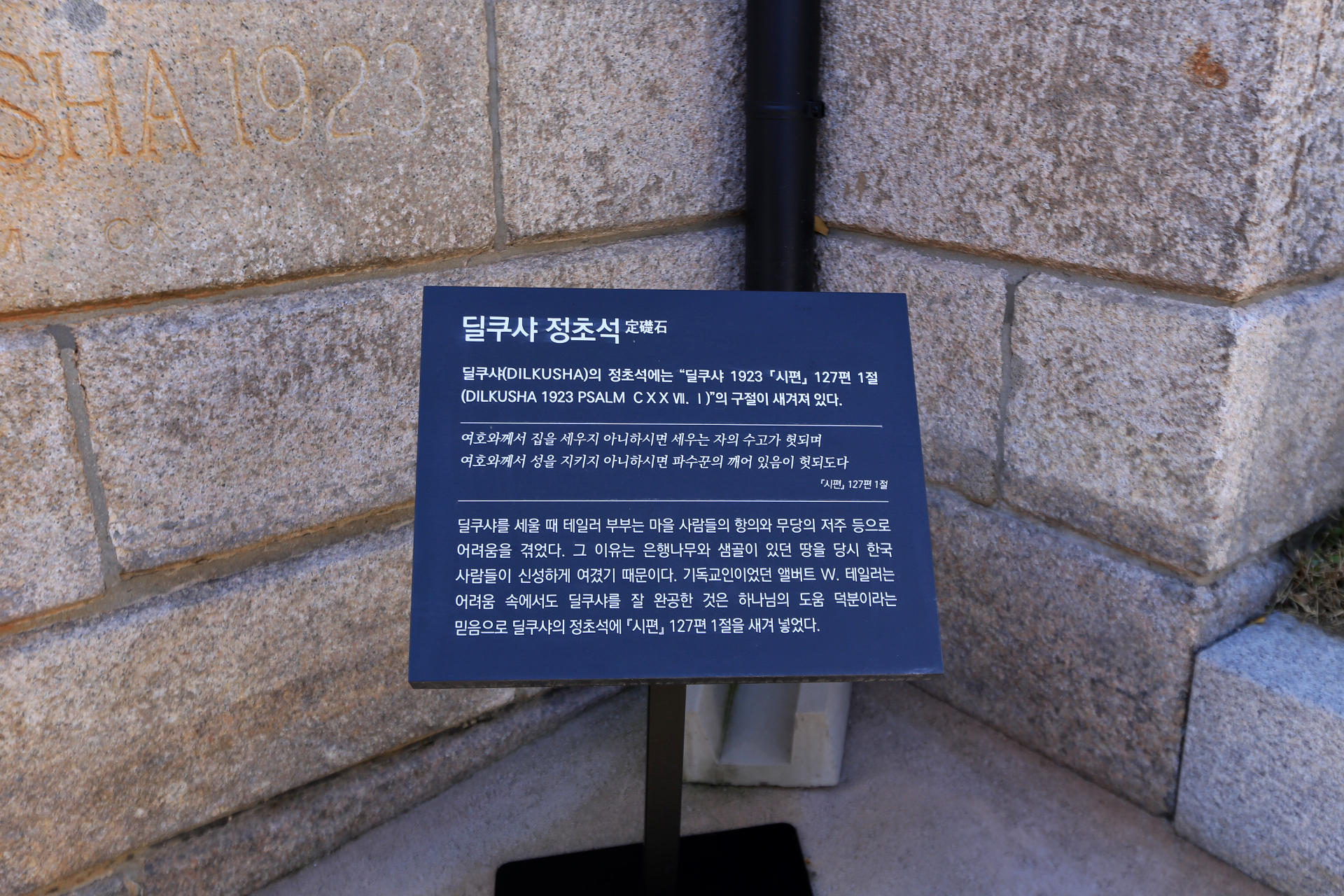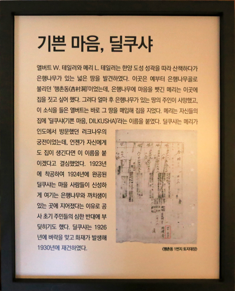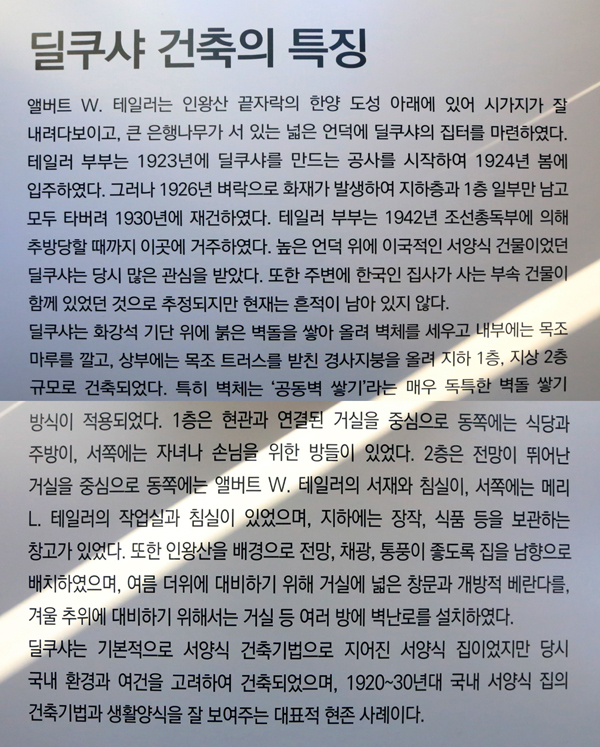 딜쿠샤 복원공사를 하며 집 앞에 휴식 공간 등을 마련하는 공사가 어려웠다고 한다.
