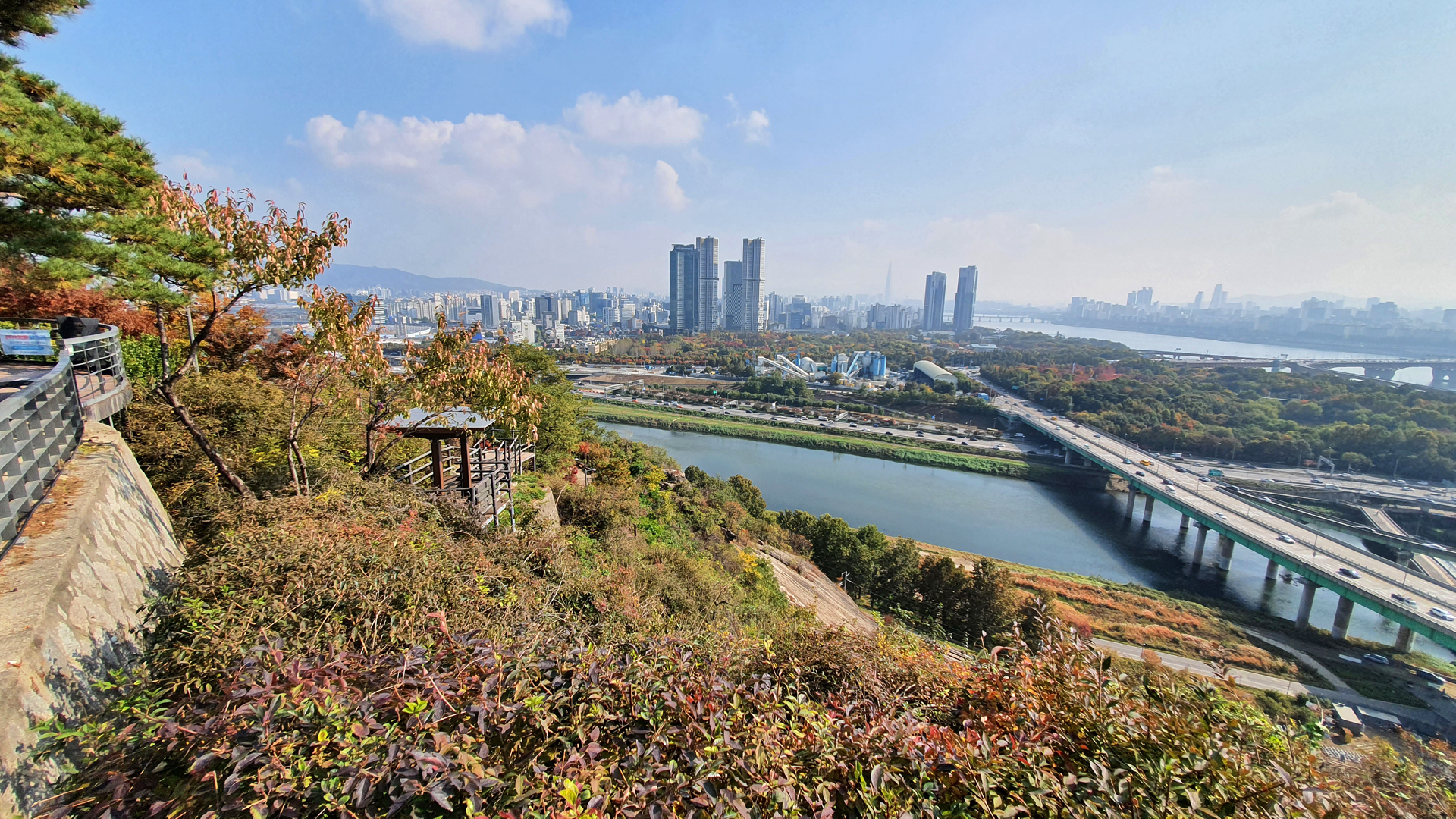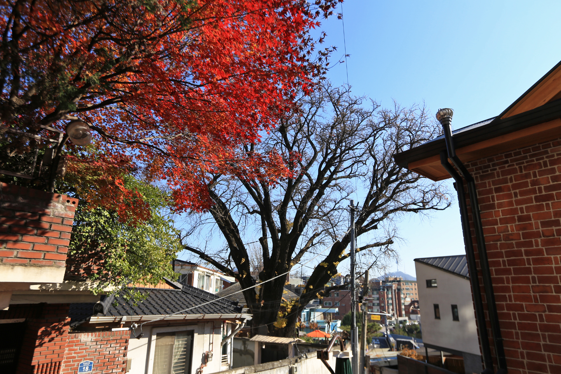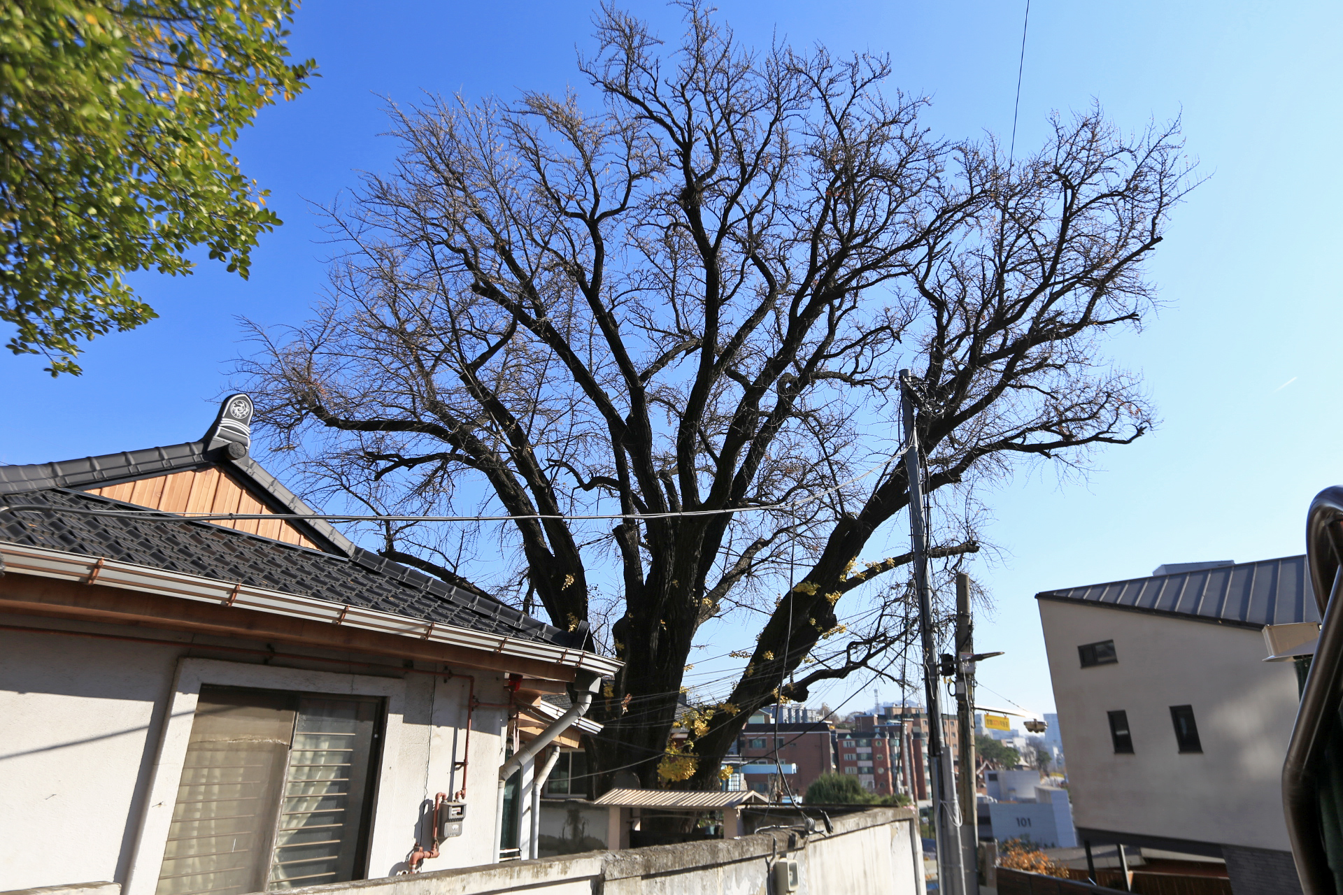 멀리 인왕산 아래 빌딩 사이로 권율도원수 집터에 있는 은행나무가 보인다.