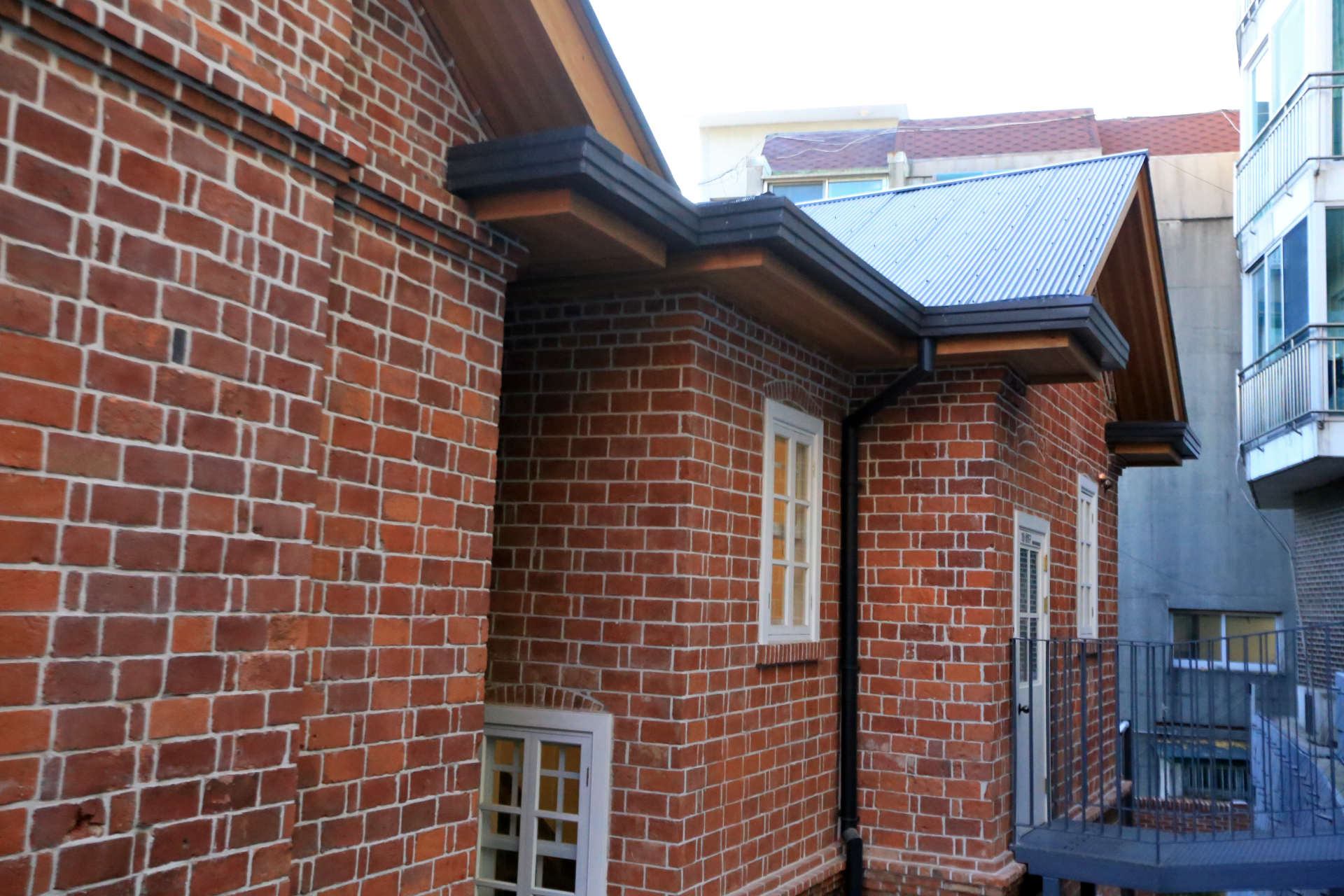 해설하시는 분이 내부 각 실을 돌면서 자세하게 설명해 주셨다. 해설이 끝난 후 지붕의 재료에 대해서 질문을 하였더니 연구원과 연결해 주신다. 그 분이 사무실로 들어가서 관련 자료를 찾아보고 나왔는데 찾지 못하였단다. 마침 이 모습을 옆에서 보고 있던 분이 지붕을 불소수지강판으로 시공하였다고 한다. 복원공사에 기술직으로 참여하셨던 분으로 준공 후 모습이 궁금해서 가족과 함께 방문하셨다고 한다. 기존 점토벽돌에 관한 것, 복원 전 골슬레이트 지붕에 천막지로 씌워져 있던 지붕 등에 대한 설명도 들었다. 최초 건축물이 1924년 준공되어 1926년 화재로 재건축 하였는데 복원은 1924년 준공된 초기 건물을 기준으로 하였다고 한다. 건물 후면의 원통처럼 생긴 부분이 사라진 것은 기초가 둥그렇지 않고 직선으로 되어 있어서 화재 후 변경 시공한 부분이라고 한다. 생각치도 않게 세세한 설명을 들을 수 있는 행운을 누렸다. 자료를 고증하고 많은 고심을 했을 테지만 지붕에 대한 궁금증이 가시지 않는다.