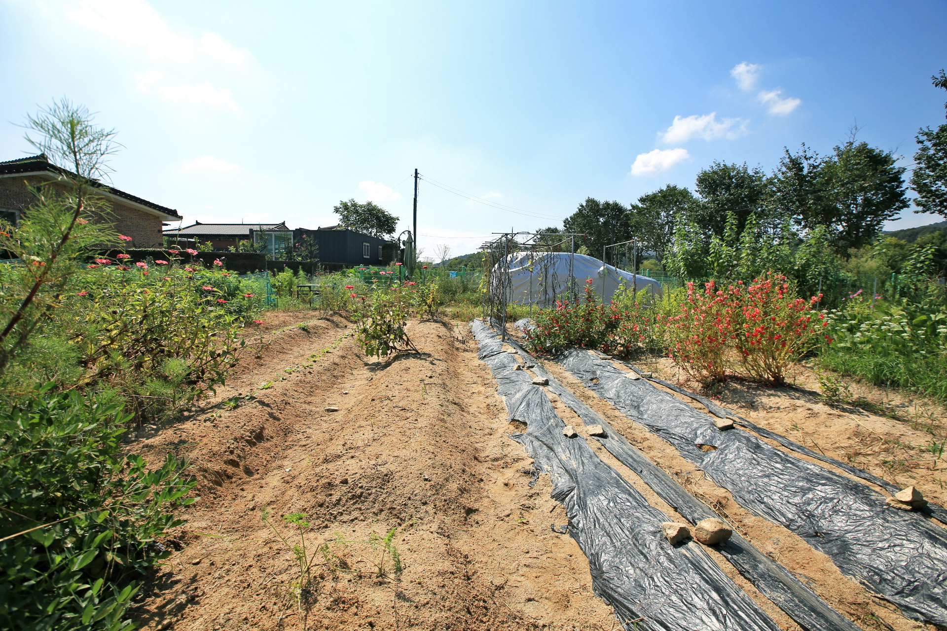 ● 화려한 봄 꽃(장미 꽃양귀비 샤스타데이지 끈끈이대나물....) 진 후, 잠깐 동안 썰렁했다가 여름 꽃(메리골드 설악초 백일홍 천일홍 배롱나무 꽃)이 뒤를 잇는다. 그러나 올해는 아내가 병원 치료를 받느라 여름 꽃을 제대로 가꾸지 못하였다. 늦게나마 좀 빈약하지만 여름 꽃밭을 볼 수 있어서 다행이었다. 어디 가서 이 정도로 꽃이 피어있는 모습을 보기도 어렵다며 자위하곤 한다. 이른 봄부터 6월 중순까지는 아내와 함께 성북동집에서 생활하며 전실공사도 하고 꽃밭과 앞밭을 가꾸며 지냈었다. 6월 중순부터는 업무상 서울집에 머물며 한 번을 빼고 주말마다 성북동집에 가서 아내의 일을 거들거나 앞밭을 가꾸었다. 6월 말에 아내가 다쳐서 서울집으로 철수하여 성북동집을 두어 달 비우게 되었다. 집이 비어있는 동안에는 주말에 나 혼자서 성북동집에 다녀왔으나 꽃밭과 앞밭의 현상유지가 되지 않았다. 앞밭은 포기하고 꽃밭이라도 현상유지를 하자며 풀 뽑기를 하였으나 이마저도 지켜내지 못하였다. 아내가 다시 성북동집으로 복귀하고서야 어느 정도 회복이 되어가는 중이지만 언뜻 보기에는 달라진 모습을 눈치 채기도 쉽지 않다. 사진 상으로는 지난주와 무엇이 달라졌는지 구분이 되지 않을 수 있겠지만 매 주 무더위에 땀으로 옷이 흠뻑 젖고 모기와 그 보다 더한 놈(벌레 이름은 모름)에게 물려가면서 복구하고 있는 중이다.