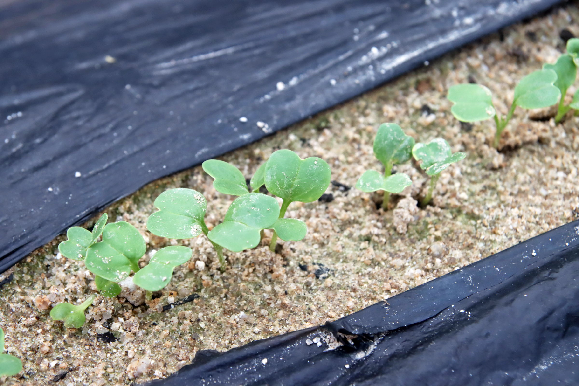 오래 전에 씨앗을 파종하였으나 새싹이 돋아난 것이 얼마 되지 않아서 다시 파종하였다. 요즈음 비가 자주 내려서 흙투성이가 되었다. 잎에 묻은 흙을 씻어내야 할 텐데 아내도 농사가 서툴러서 그런 생각까지는 하지 못하는 모양이다.