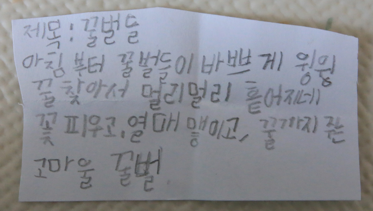 ■ 20240823-20240914 (성북동 : 22박23일 : 혼자 와서 둘이 지내다 Ju 와서 셋이 감 : 478km) -면허시험장-남부순환-오류ic-서해안로-오류동역교차로-오류로-천왕사거리-광명교삼거리-광람로-광남사거리-광명로-논곡삼거리-42-양촌ic-39-안중-313현덕로-강변로-길음ic-43-운당교차로-1-유천교차로-23-일월휴게소-23-월송교차로-32-반포교차로-1-중세교차로-세동로-진티고개-성북동집(0823) -더덕 넝쿨 정리+장미 전지+보리똥나무 전지+담쟁이넝쿨 정리(0824) -산책+앞밭 김장채소용 이랑 만들기+나도샤프란 개화(0825) -산책+앞밭 물주기(스프링클러)+화분 물주기+고추 따기+옥수수대 제거 및 멀칭비닐 파내기+방동저수지-계룡(H마트/생필품)-중세교차로-진티고개(0826) -옥수수대 제거 및 머칭비닐 파내기+앞밭 코스모스 지지대 설치 및 감나무 전지+꽃밭 두더쥐굴 제거+정전/140분(0827) -쉼+관저동(G병원/윤J철 문상)(0828) -산책+꽃밭+앞밭 물주기(스프링클러+물뿌리개)+대문밖 통로 풀 제거(0829) -산책+찔레 가지치기+앞밭 정리(돼지감자 줄기 손보기+토마토 줄기 제거+통로 뿔 깎기)+꽃밭 두더지굴 제거+전실 발 설치(0830) -산책+꽃밭 통로 지지대 설치+유성(H마트/생필품)-진잠(종묘사/배추모종24+D마트+생필품+T마트/생필품)+황화코스모스 개화(0831) -산책+배추 모종(24포기) 이식+무 및 레디쉬 파종+앞밭 및 꽃밭 물주기+꽃밭 백일홍 및 국화 지지대 설치(0901) -배추 모종 받침 설치+이발(0902) -산책+통로 고라니망 문 손보기+별채방 창문 물턱 만들기+앞밭 물주기(0903) -산책+앞밭 물주기(4회)(0904) -산책+접이식탁자 도장 준비+화덕 철거+앞밭 물주기(2회)(0605) -산책+접이식탁자 도장(2회)+별채 창문틀 도장(0906) -산책+국립대전숲체원 옆 임도-씨아골네거리-유성대로-유성고네거리(아침)-유성대로-복용삼거리-학하로-학하네거리-학하중앙로-수통골삼거리-동서대로-수통골로-계룡산국립공원 수통골-수통폭포-화산계곡(되돌아서)--수통골삼거리-학하중앙로-학하삼거리-진잠옛로-사기막골삼거리-유성대로-진잠(D+T+L마트/생필품)-방동저수지-성북동(0907) -산책+앞밭 및 꽃밭 물주기+화덕 철거 부위 그을음 제거+샤워실 창문틀 양면테이프 제거(0908) -산책+강S덕 및 여I환 및 김D기 만남+꽃밭 두더지 퇴치용 크레졸 넣기+꽃밭 농약 살포(0909) -산책+앞밭 물주기 및 풀뽑기+전실 걸래받이 손보기 및 벽체 도장 보수 및 방문 보양재 제거(0910) -산책+앞밭 풀 뽑기+무 및 배추에 농약 살포(충) +뒤꼍 목초액 통 철거+오후에 비(0911) -꽃밭 지지대 설치+무 및 배추에 농약 살포+진잠(T마트/생필품+Ju 만남)+유성(점심)+오후에 비(누적강우량 7.5mm)(0912) -산책(셋이서)+벌레 먹은 뽕나무 가지 제거+꽃밭 묵은 꽃대 제거 및 풀 뽑기+화분 재배치+119 구급차 타고+정림동 대청병원 응급실 다녀서 관저동 건양대종합병원 응급실 치료 받음+41번 시내버스로 성북동 집(0913) -무 및 배추(물 주기+농약 살포(충))+화분 물 주기+매화나무 및 보리똥나무 및 복숭아나무 및 뽕나무 농약 살포+앞밮 물통 옮기기-성북동집-진티고개-세종로-중세교차로-1-반포교차로-32-월송교차로-23-차령휴게소-23-유천교차로-1-운당교차로-43-길음ic-강변로-313현덕로-안중-39-발안휴게소-양촌ic-42-목감ic-서해안고속-서부간선-구로ic-남부순환-면허시험장(0914)