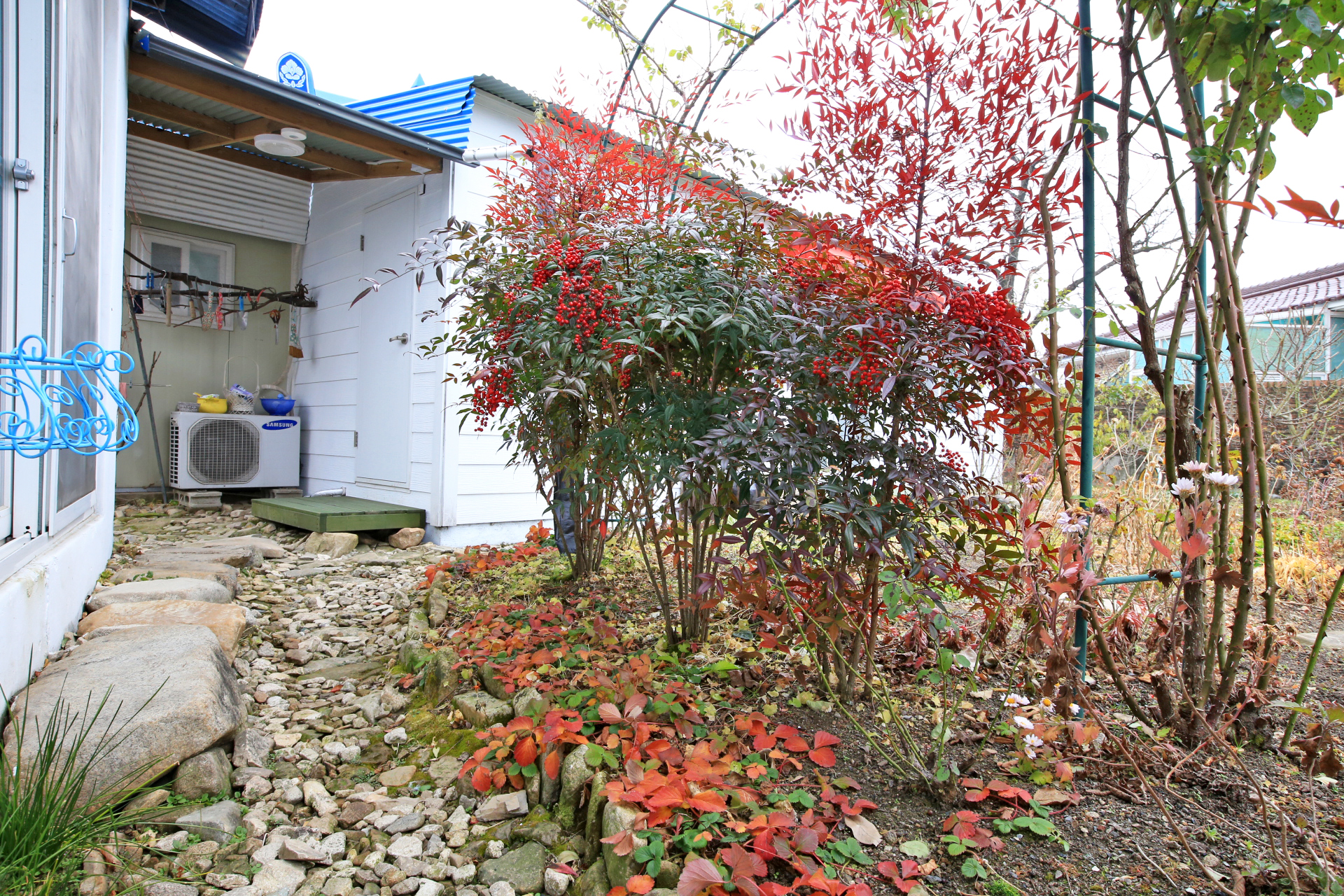 ■ 20241104-20241120 (성북동 : 16박16일 : Ju와 셋이 와서 둘이 지내다 Ju와 셋이 돌아옴 : 426km) -면허시험장-남부순환-오류ic-서해안로-오류동역교차로-오류로-천왕사거리-광명교삼거리-광람로-광남사거리-광명로-논곡삼거리-42-양촌ic-39-안중-313현덕로-강변로-길음ic-43-운당교차로-1-유천교차로-23-일월휴게소-23-월송교차로-32-반포교차로-1-중세교차로-세동로-진티고개-성북동집+화초 월동준비(란타나+부겐베리아+미니백일홍 화분 및 덴마크무궁화 화분에 이식 후 별채방에 들여 놓음)+별채방 침대를 전실로 옮김+별채 PC에서 전실 노트북으로 옮김(1104) -방동저수지 및 탑정호 및 돈암서원 다녀옴(Sim+Ju와 함께)+메리골드 비닐 덮기+화초 월동준비(사피니아 별채방에 들여 놓기)+전실 노트북 듀얼모니터 설치(1105) -메리골드 비닐 철거+동파방지용 온도조절기를 이동식으로 개조+창고 화분 정리+찐 고구마 및 감 말리기+고춧대 자르기+진잠(Ju 출발+예방접종(독감+코로나)+T마트/생필품)+메리골드 비닐 덮기+수국 비닐 덮기(임시)+최저기온 -1.6℃(1106) -메리골드 비닐 철거+현관문 손보기+별채방 온실 대용 준비(장판 깔기+발열전구 단지 설치+화분 배열)+별채방 발열전구 가동 시작+발열전구 및 나무 보온재 주문+최저기온 -2.9℃+메리골드 비닐 덮기+전기스토브 꺼냄(1107) -메리골드 비닐 철거+김치 담그기(3포기)+다락방 천장 보수(1)+진잠(G목재/(4.5mm 합판+50mm 아이소핑크+폼본드)+D마트/모헤어)+본채 내벽 모서리 단열재 틈 메우기(우레탄폼본드)(1108) -다락방 천장 보수(2)+다락방 정리(1109) -별채방 선반 햇빛가리개 설치+선풍기 들여놓기+산책(1110) -산책 및 대파+작은방 폐문 부위 단열 및 정리(1)+대파 심기 및 손질(1111) -앞밭 고라니망 일부 철거+감나무 이식(꽃밭으로)+작은방 정리(2)(1112) -창문 보온재 설치(별채+큰방+다락방)+본채로 동파방지용 온도조절기 전선 연장(1)+물 호스 철거(1)+예초기 및 농약분무기 들여놓기(1113) -숲체원 옆 임도-유성(아침+시장/샐필품)-도안대로-진잠(철물점/건자재+D마트/생필품)+본채로 동파방지용 온도조절기 전선 연장(2)+로즈마리 다듬기(1114) -본채 천장몰딩 틈 코킹+전실 현관문틀 모헤어 설치+노란꽃창포 제거(2무더기)+국화 지지대 설치+앞밭 멀칭비닐 제거+인디언감자 비닐 덮기+상사화 및 꽃무릇 위치 표시(1115) -코스모스 제거+카네이션 이식 및 꽃밭 정리+별채방에 로즈마리 들여놓기+WS 다녀감(1116) -꽃밭 정리(국화 뿌리 제거+화분 정리)+창고에 화분 들여놓기+물호스 철거(2)+샤워실 수도배관 보온작업+창문 보온재 설치(샤워실+화장실+주방)+별채방에 화분 들여놓기(상추+카네이션+국화+다육이+일일초+한련화)/총 32개+mo+D경네 다녀감(1117) -인터넷 모뎀 보온+창고 비닐 설치+진잠(L마트/생필품+Ju맞이)+창문 보온재 설치(작은방)+별채방에 화분 들이기/총35개(1118) -방동저수지 및 메타세쿼이아길 및 내장사 다녀옴(Sim+Ju와 함께)+최저기온 -5.6℃(1119) -세라믹발열전구로 교체+mo+>성북동집-진티고개-세종로-중세교차로-1-반포교차로-32-월송교차로-23-차령휴게소-23-유천교차로-1-운당교차로-43-길음ic-강변로-313현덕로-안중-39-발안휴게소-양촌ic-42-목감ic-서해안고속-서부간선-고척교-46-구로소방서교차로-중앙로-강서로-화곡터널-우장산역(1120)