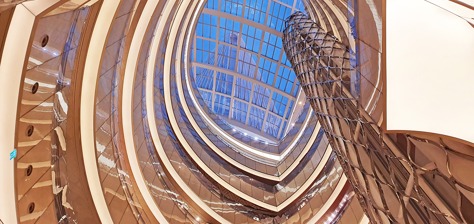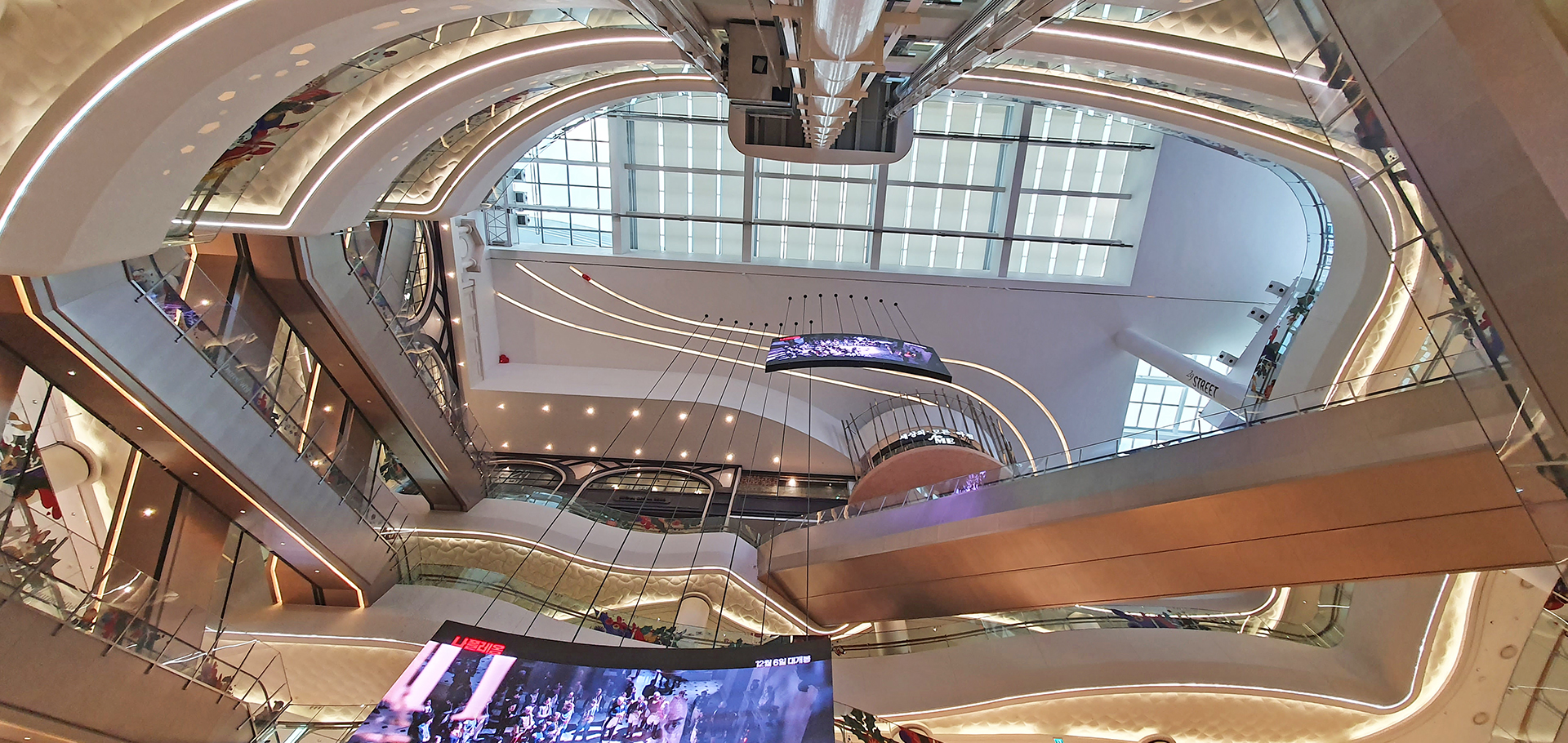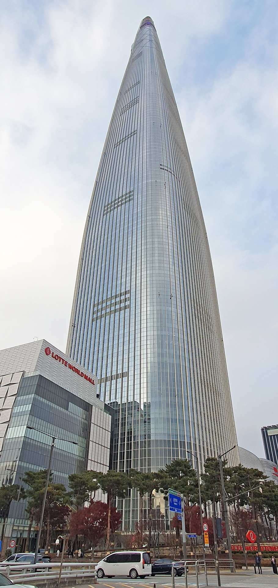 천창을 통하여 롯데월드타워 상부가 보인다.