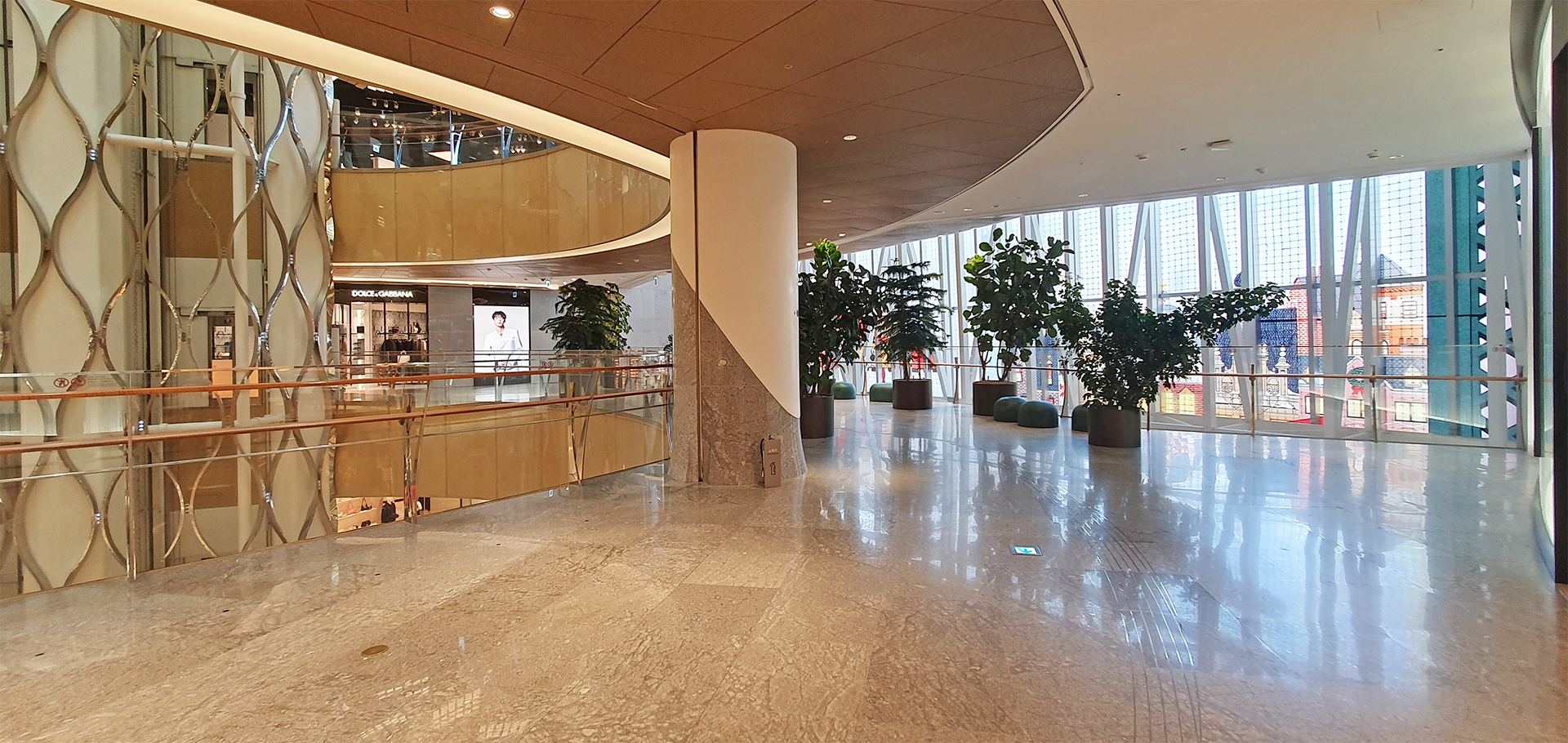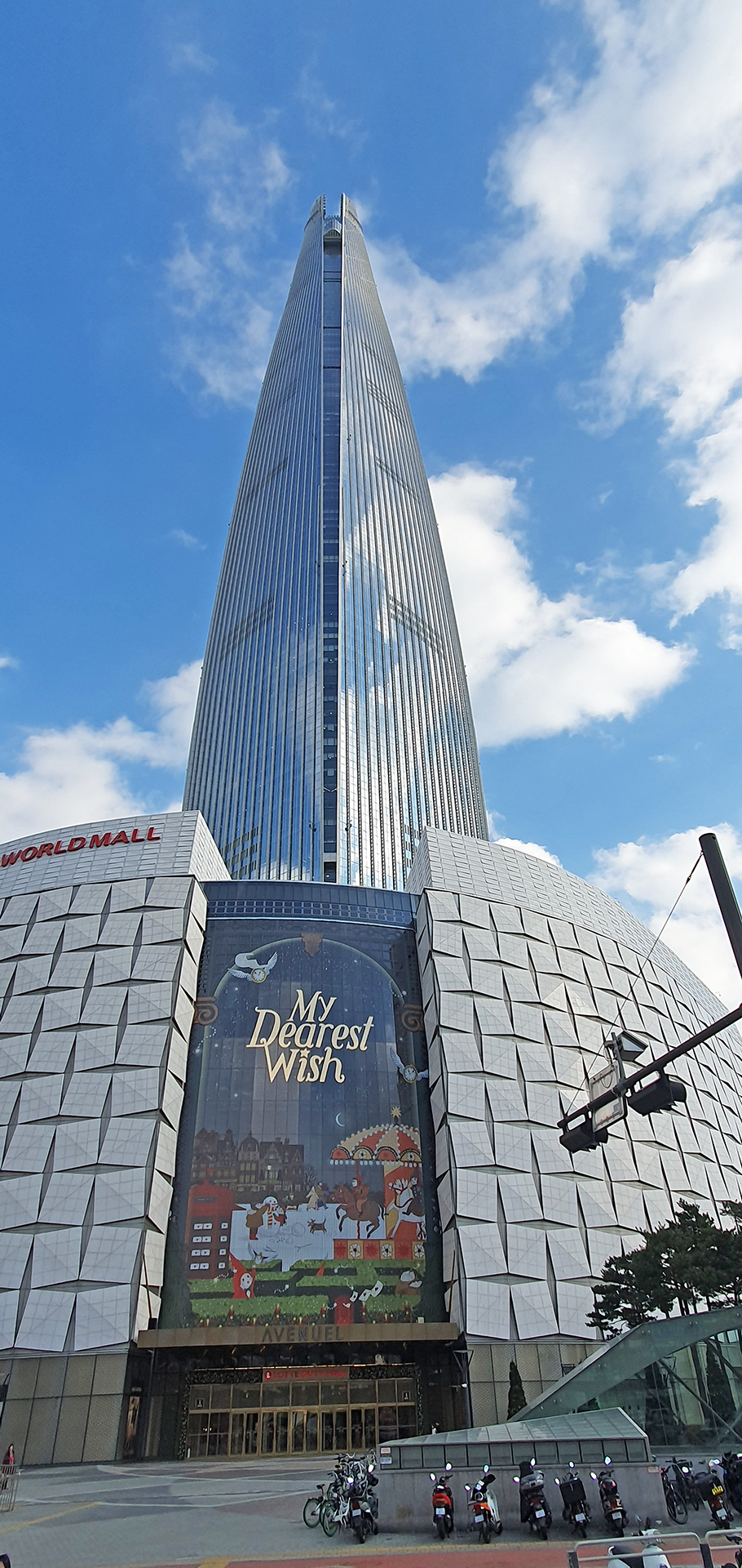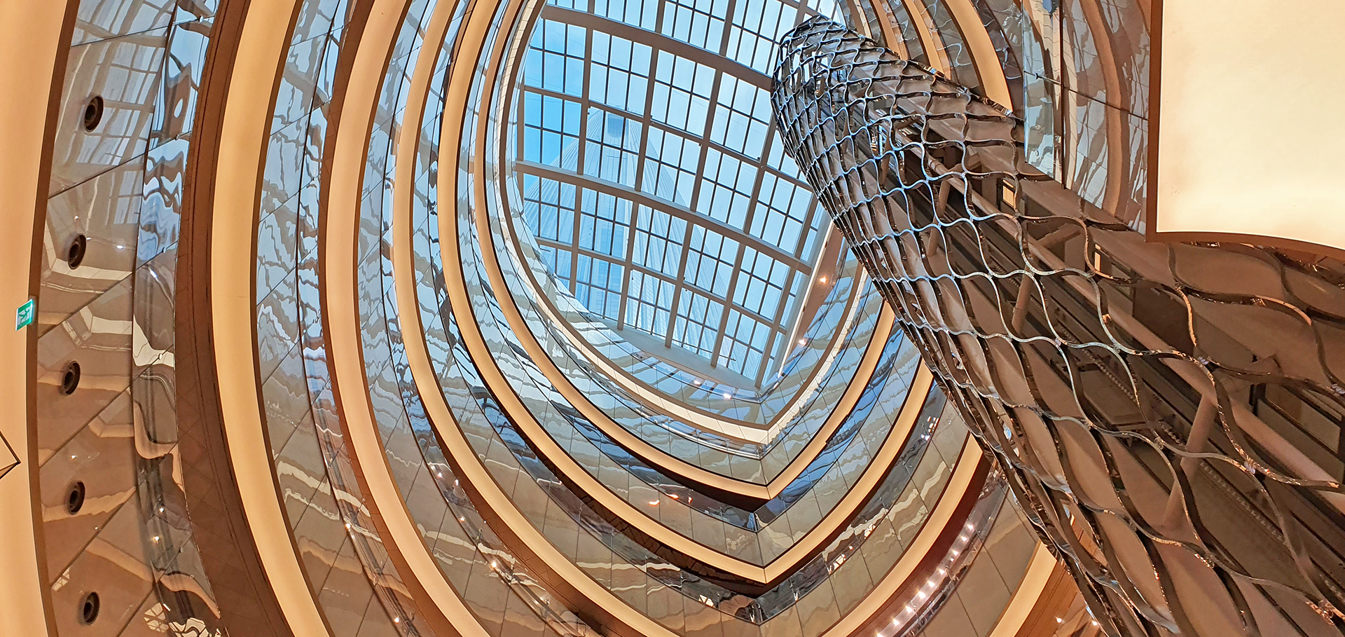 천창을 통하여 롯데월드타워 상부가 보인다.