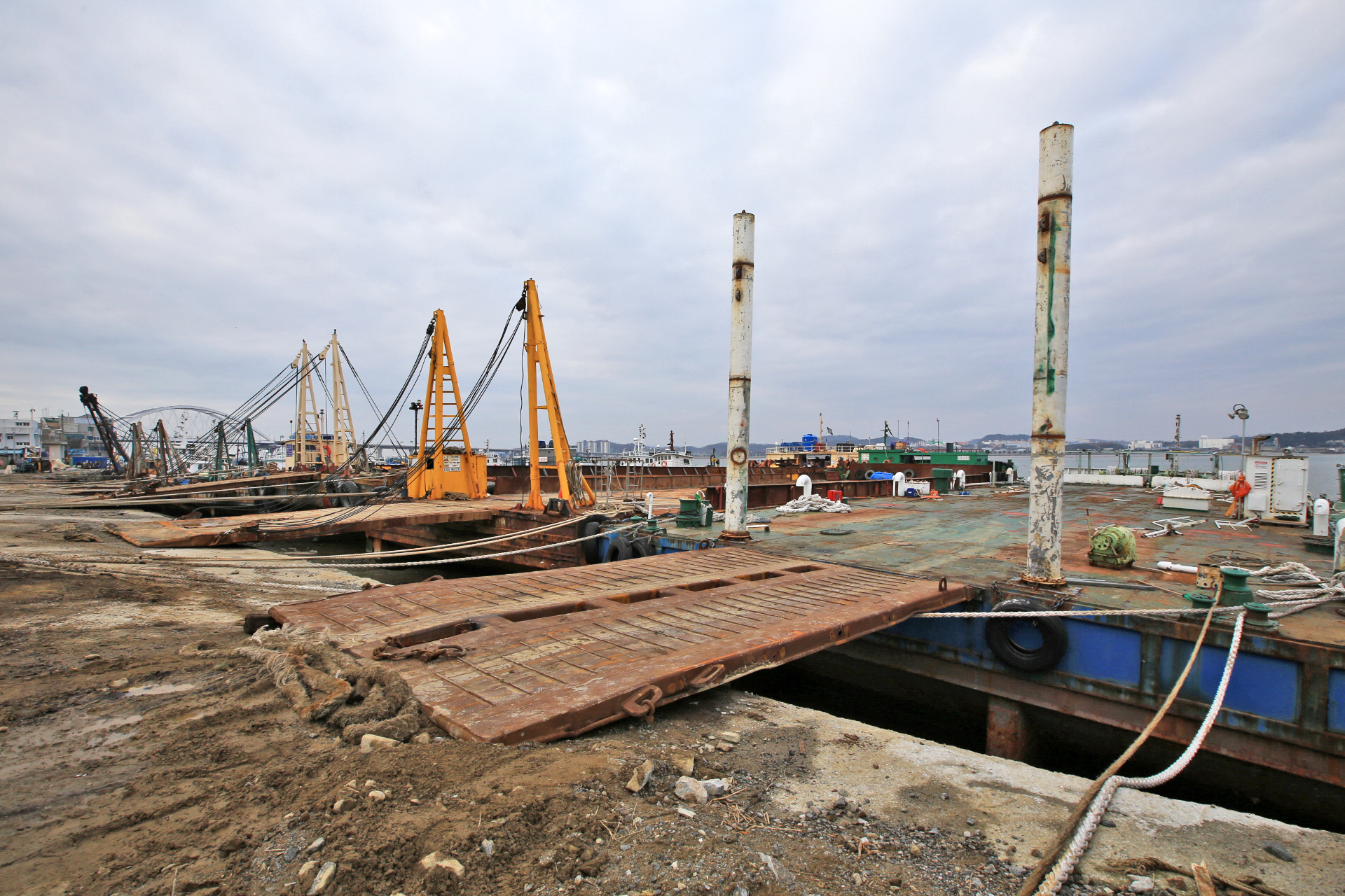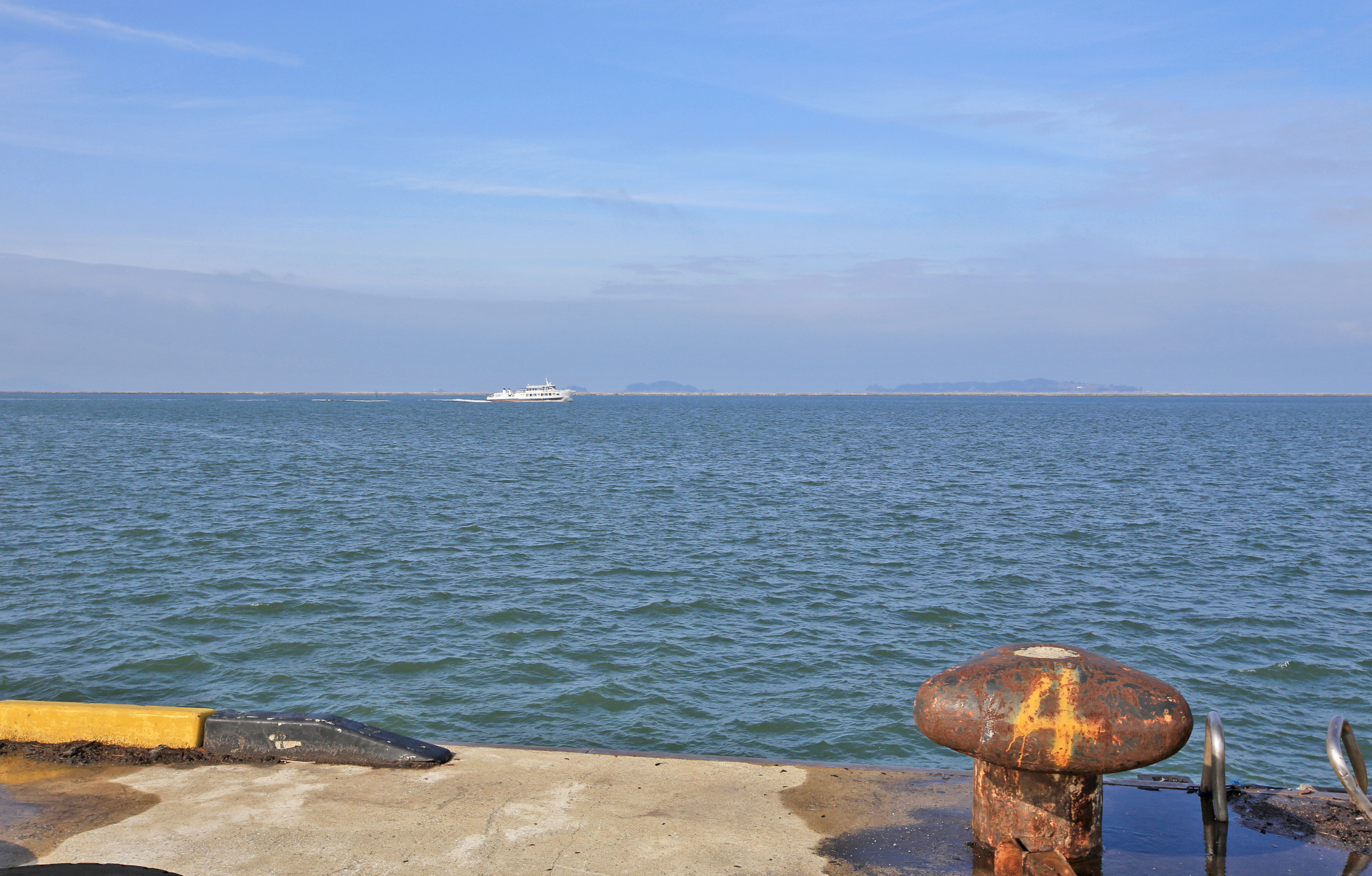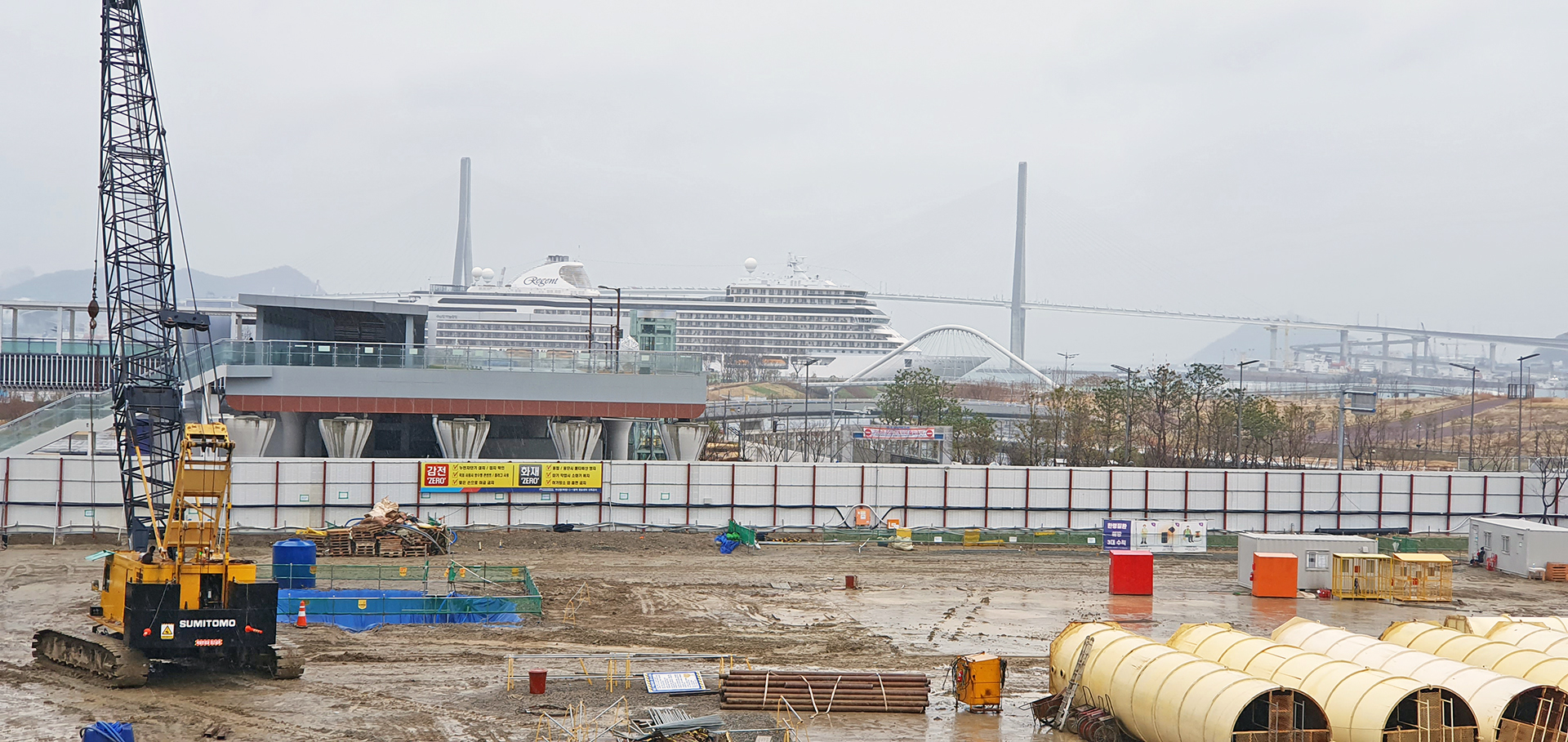 크루즈선 부두 너머로 부산항대교가 보인다.