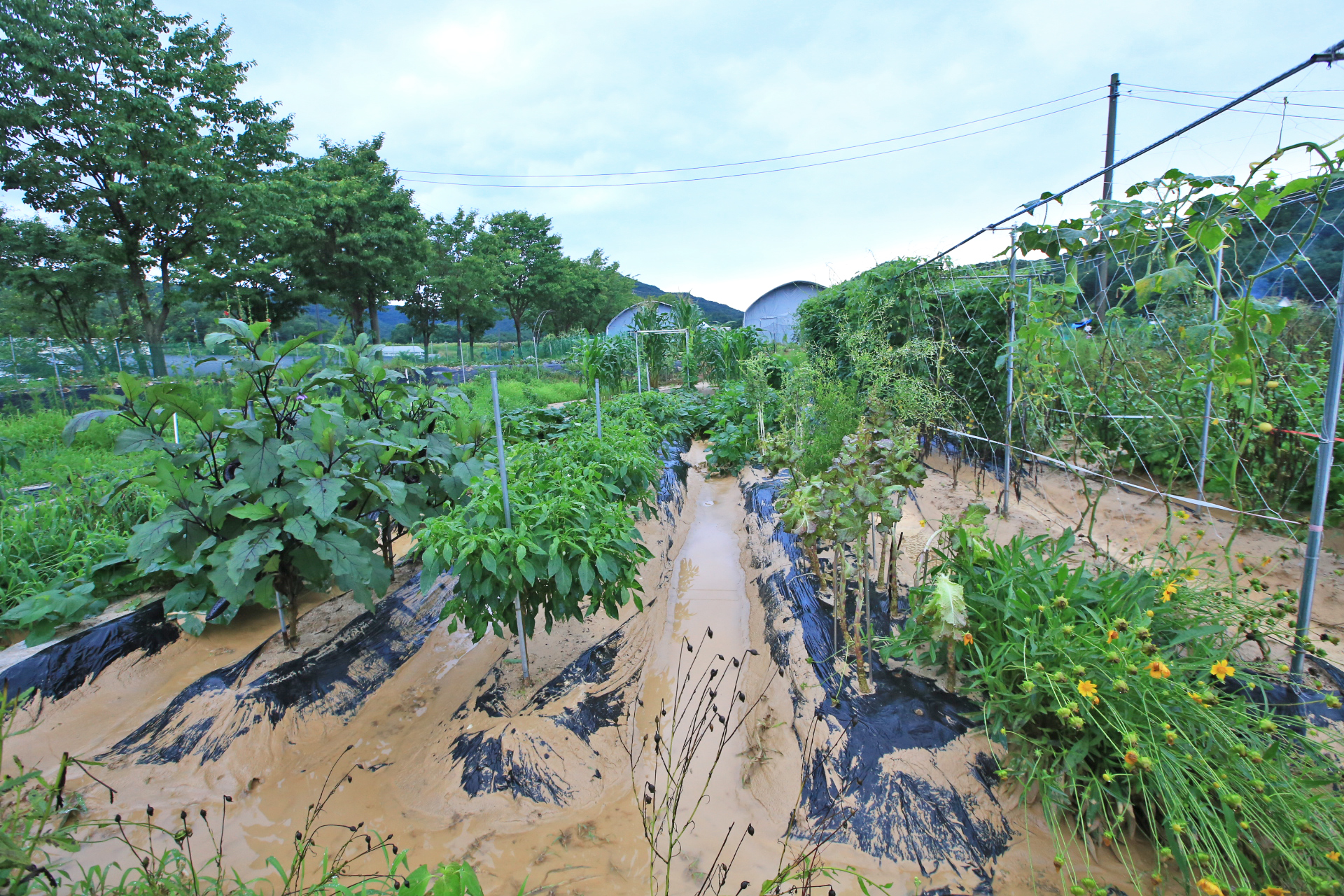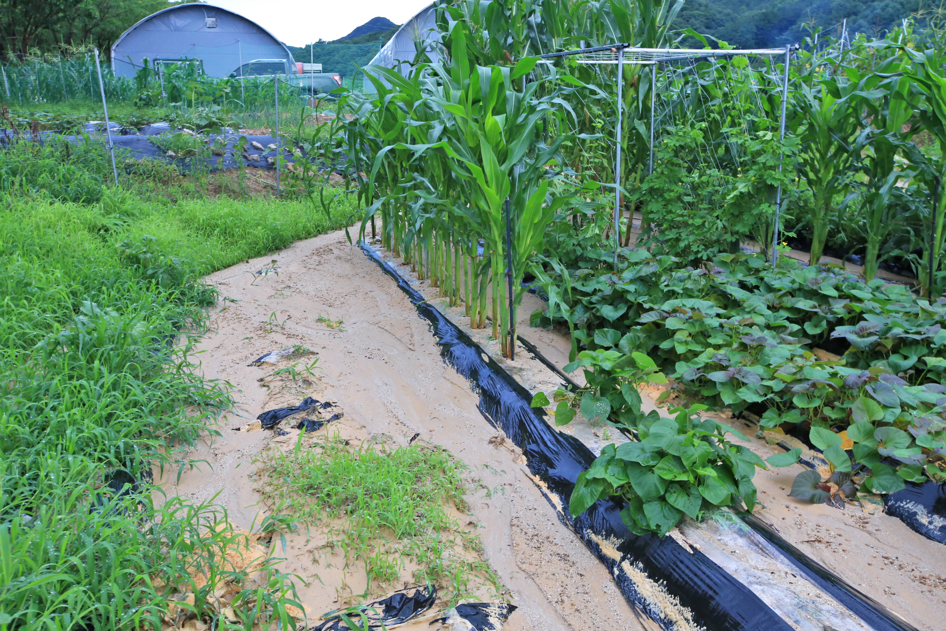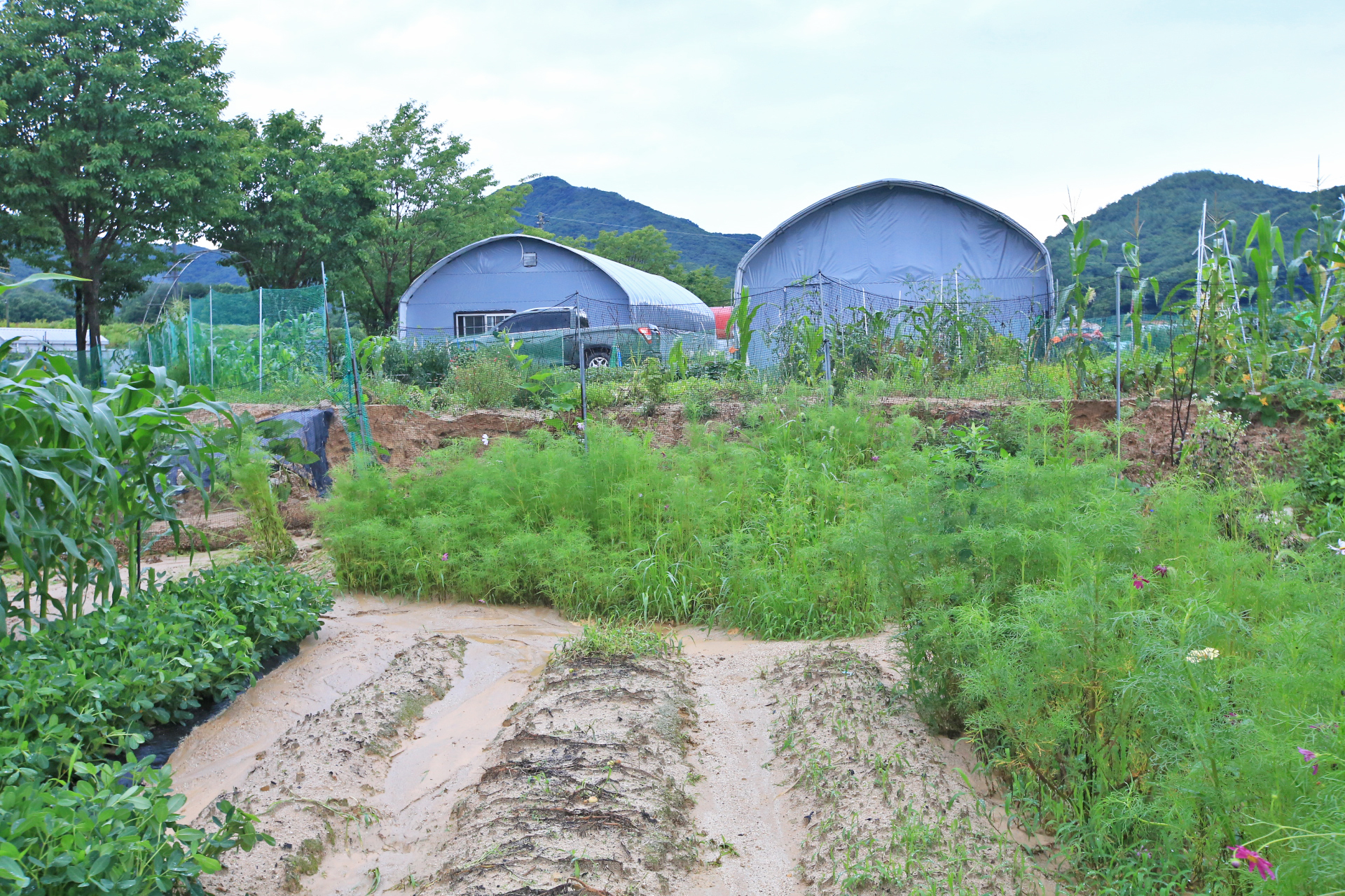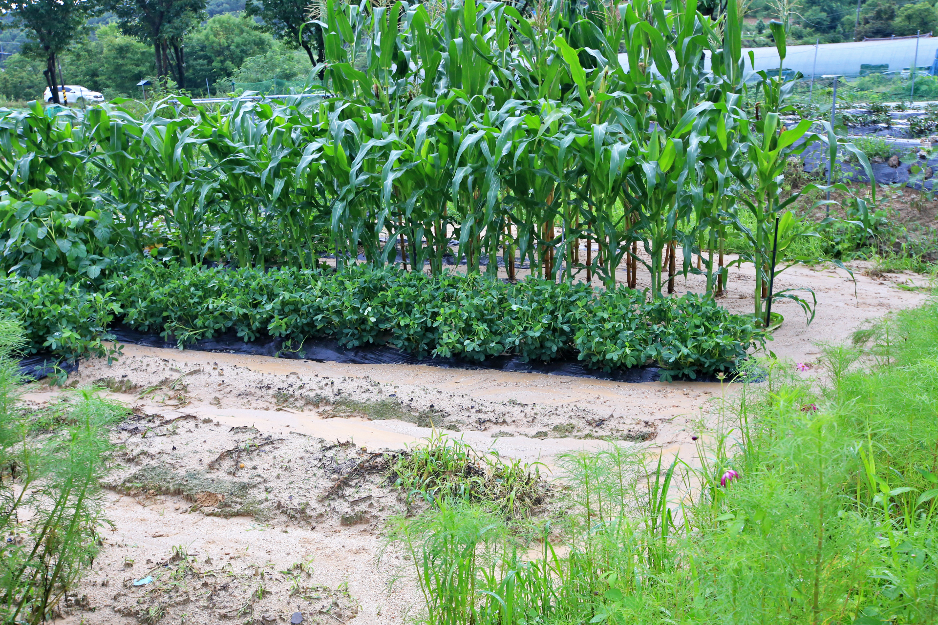 상류 쪽의 밭둑과 배수로가 터지며 앞밭 통로가 침수되어 진흙이 쌓였다.