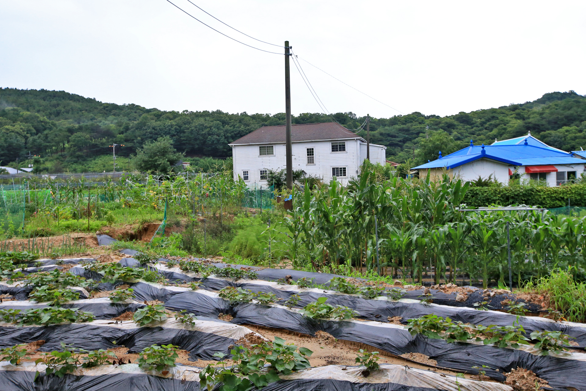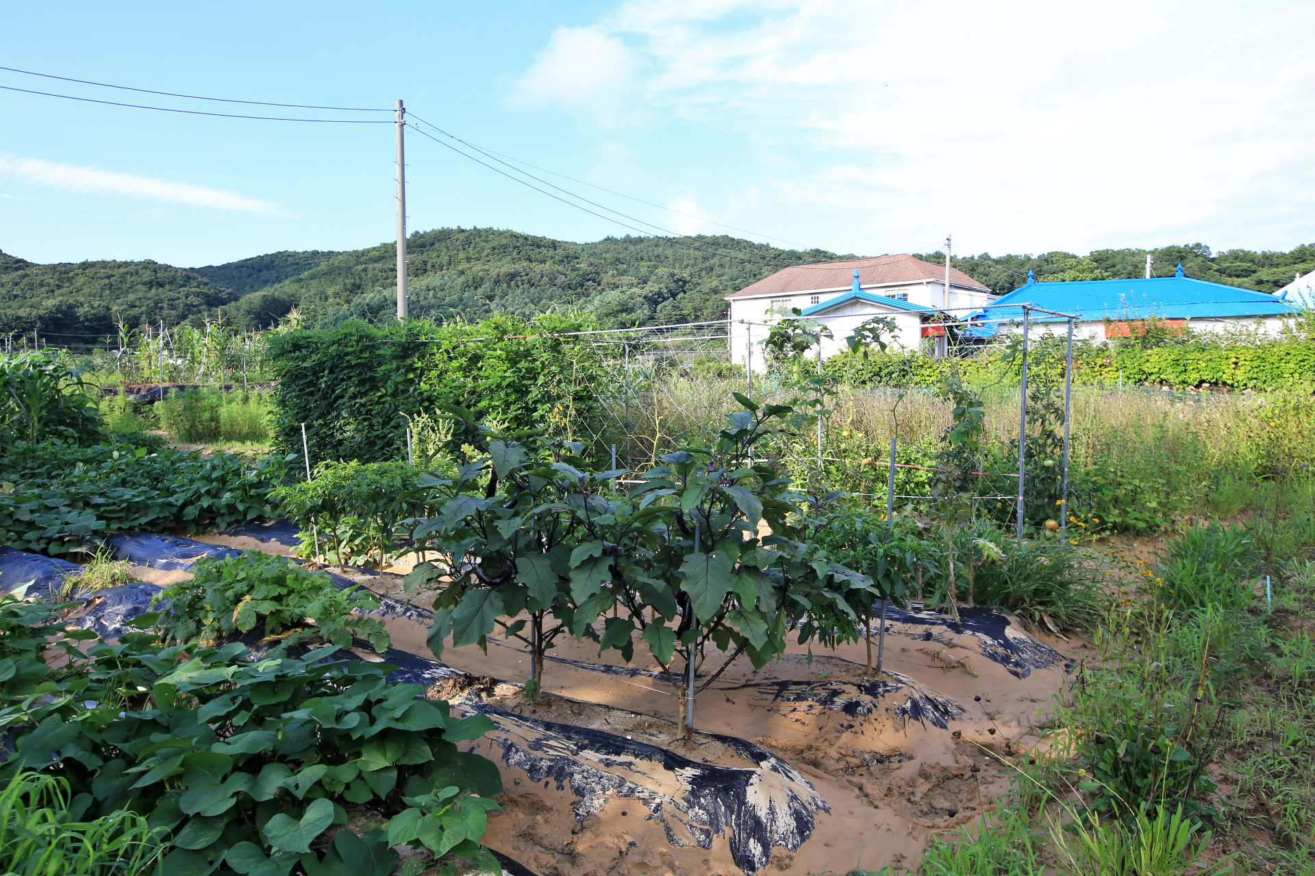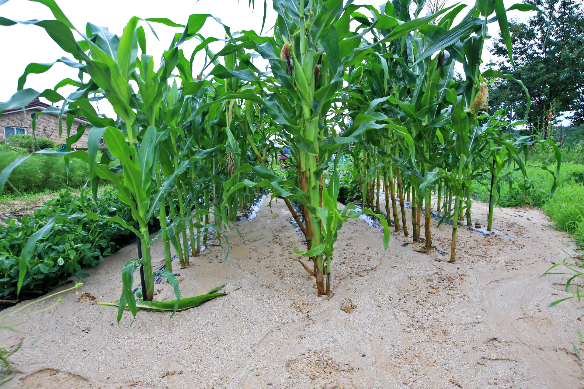 앞밭의 수해복구 작업을 시작하였다. 유실된 상류 쪽 김S구네와 이웃 밭둑은 농사가 끝나는 늦가을 이후에나 가능할 듯하다. 피해자 입장인 내가 먼저 나서서 복구를 이야기하면 까다로운 사람으로 비치거나 그렇지 않아도 복구하려고 했다는 식으로 나올 것이 뻔하니 조심스럽다. 그런데 아직 아무도 나서지 않는다. 피해를 당했지만 내가 나서서 복구 작업을 하면 다른 소리를 할 우려까지 생각하지 않을 수 없으니 이런 점이 시골 생활의 어려움이다. 무너진 밭둑이나 제대로 보수해 주면 나머지는 내가 복구해야 하지 않을까? 앞밭은 최소한 진흙을 걷어내야 할 텐데 농작물이 있으니 진흙이 마를 때까지 가다리는 것이 좋을 것 같다. 이랑에 깐 멀칭비닐도 제거해야 할 텐데 그러려면 고량의 흙을 제거해야 하는데 현재로서는 농작물이 있으니 불가능하겠다. 그러니 앞밭의 수해복구 작업은 현재는 마땅히 할 일이 없다. 우선 통로에 쌓인 진흙이나 제거하고 하류 쪽으로 흙이 유실된 부분이나 복구하는 것이 가능하겠다.