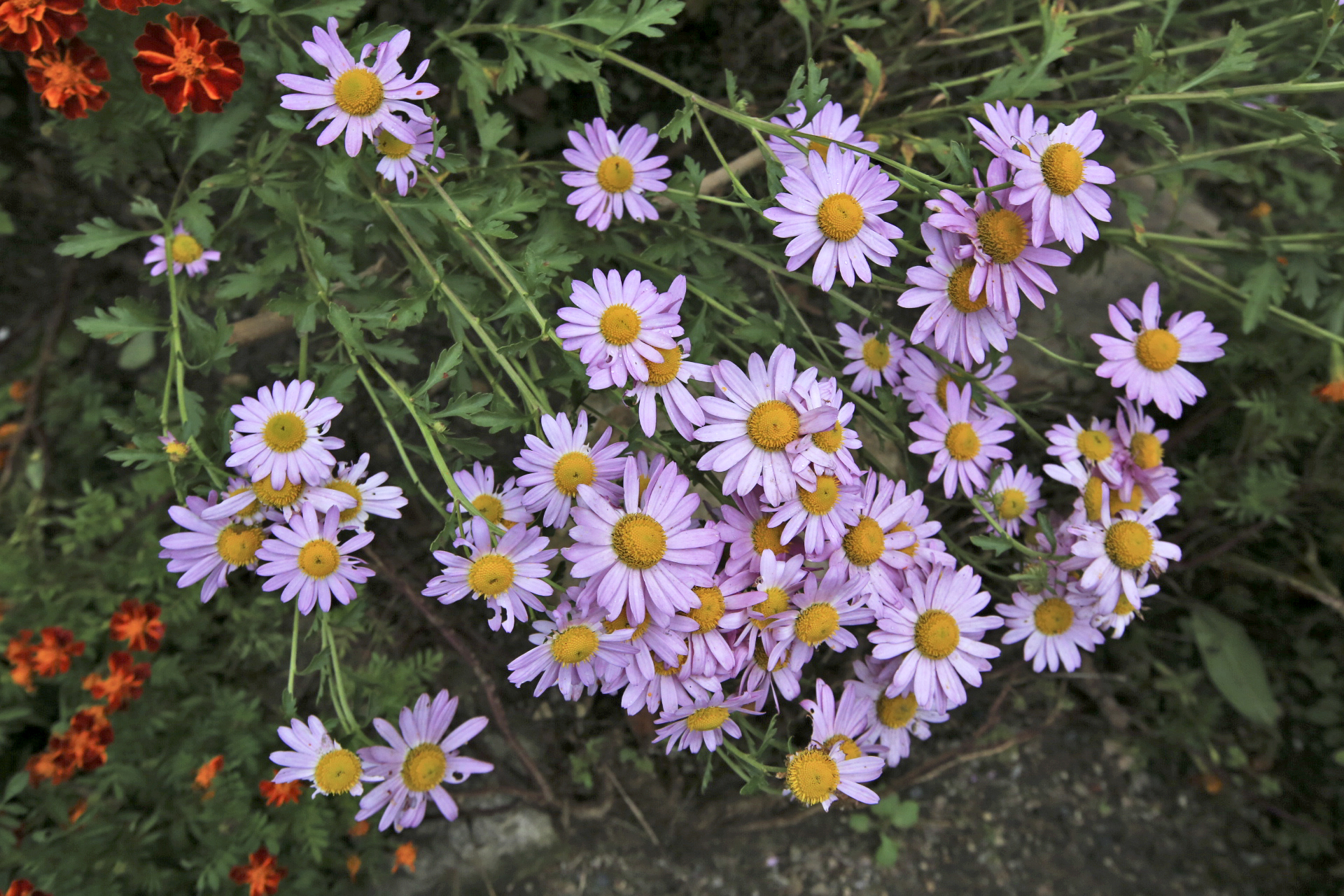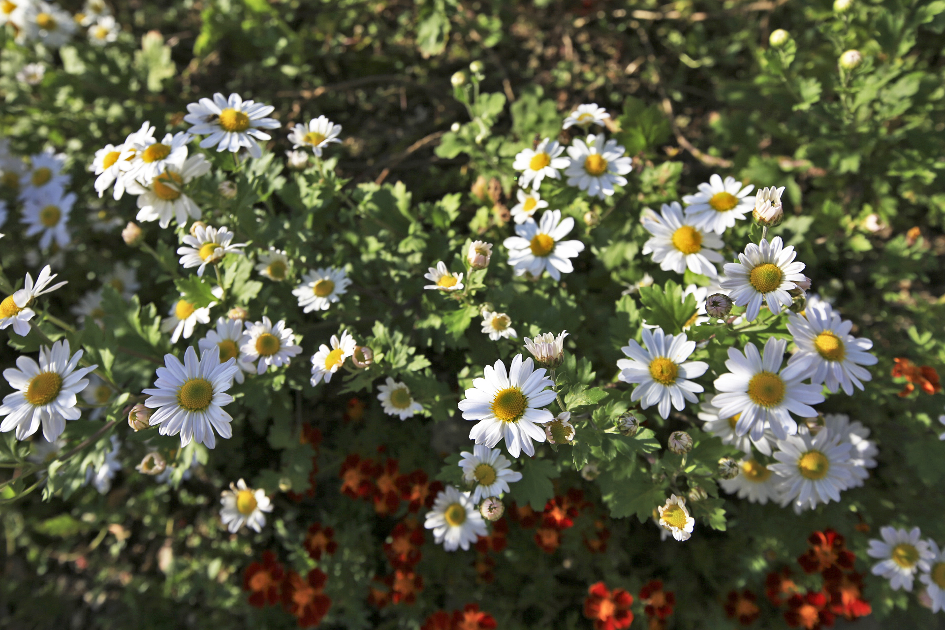 올해의 성북동집 꽃밭을 마지막으로 장식할 국화가 피어나고 있다. 메리골드는 평년보다 훨씬 늦게 피어서 꽃을 보기 어려울 줄 알았는데 이제야 제철을 만난 듯 만발하였다. 이에 못지않게 구절초도 꽃이 만발하였다. 아마도 요즈음이 성북동집 꽃밭의 가을철 절정기가 아닐까?