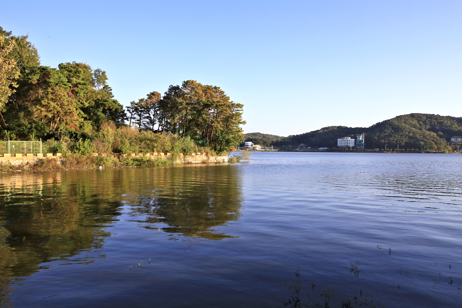 연산에 일보러 온 친구 박G춘과 저녁이나 같이 먹으려고 아내와 함께 연산에 갔다. 친구가안내하는 대로 따라 갔더니 탑정호까지 왔다. 탑정호는 성북동에서 멀지않은 곳이기에 이름은 알고 있었지만 직접 가보기는 처음이다. 아직 가 보지 못하였다는 말을 듣고 친구가 식당으로 가지 전에 데리고 온 것이었다. 자세히 둘러보는 것은 다음으로 미루고 솔섬에만 들렸다.