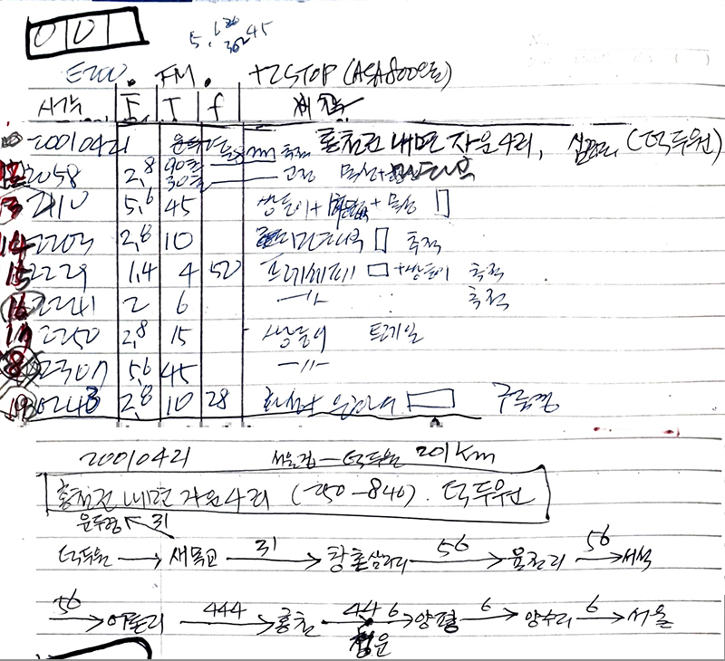 ■ 20250818-20250822 (경의선(3) : 5일 : 대중교통+자가용 144km) -우장산역-전철5-김포공항역-서해선 능곡역-경의중앙선-행신역-수도권철도차량정비단-행신역-경의중앙선-공덕역-전철5-우장산역(0818) -마곡동로-공항대로-김포공항입구교차로-개화동로-행주대교-호국로-행주고가교차로-행신로-소원로-행신역(되돌아서)-소원로-행신로-행주고가교차로-행주로-수도권철도차량정비단~행신역(되돌아서)~행주대교-개화동로-개화사거리-양천로-마곡중앙로-수명산파크3단지교차로-강서로47길(32.3km/0819) -마곡중앙로-마곡역-양천로-방화2단지교차로-올림픽대로-행주대교-호국로-행주고가교차로-행신로-소원로-행신역(되돌아서)-소원로-행신로-행주고가교차로-행주로-수도권철도차량정비단~행신역(되돌아서)~행주대교-개화동로-김포대로-신곡사거리 유턴-김포대로-개화동로-김포공항입구교차로-공항대로-마곡동로(34.8km/0820) -마곡중앙로-마곡역-양천로-방화2단지교차로-올림픽대로-행주대교-호국로-행주고가교차로-행신로-소원로-행신역(되돌아서)-소원로-행신로-행주고가교차로-행주로-수도권철도차량정비단~행신역(되돌아서)-소원로-서정마을사거리-중앙로-수색로-사천교교차로-성산로-세브란스-성산로-성산대교북단교차로-강북강변-가양대교-올림픽대로-강서로-발산역-이대서울변원 주변-마곡동로(45.7km/0821) -마곡중앙로-마곡역-양천로-방화2단지교차로-올림픽대로-행주대교-호국로-행주고가교차로-행신로-소원로-행신역(되돌아서)-소원로-행신로-행주고가교차로-행주로-수도권철도차량정비단~행신역(되돌아서)~행주대교-올림픽대로-강서로(주유)-강서로-발산역(31.4km/0822)
